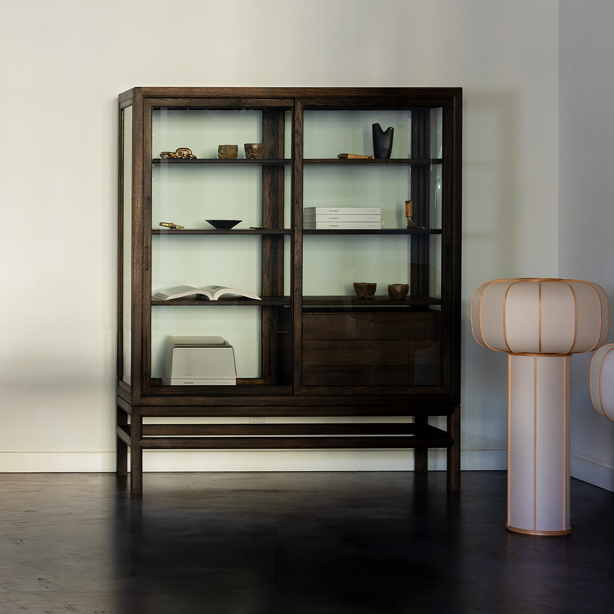 Museum Cabinet For Private Collection With Drawer – Black Oak Tannin