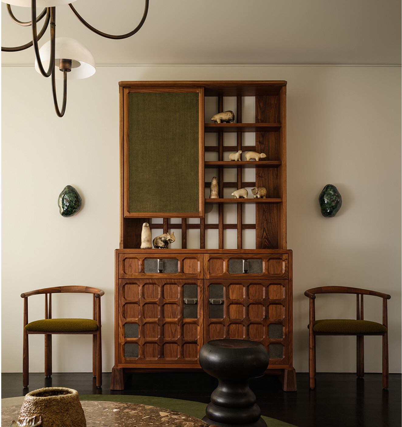 Arts & Crafts 2-Unit Tall Cabinet – Flores Linen + Danish Oiled Walnut