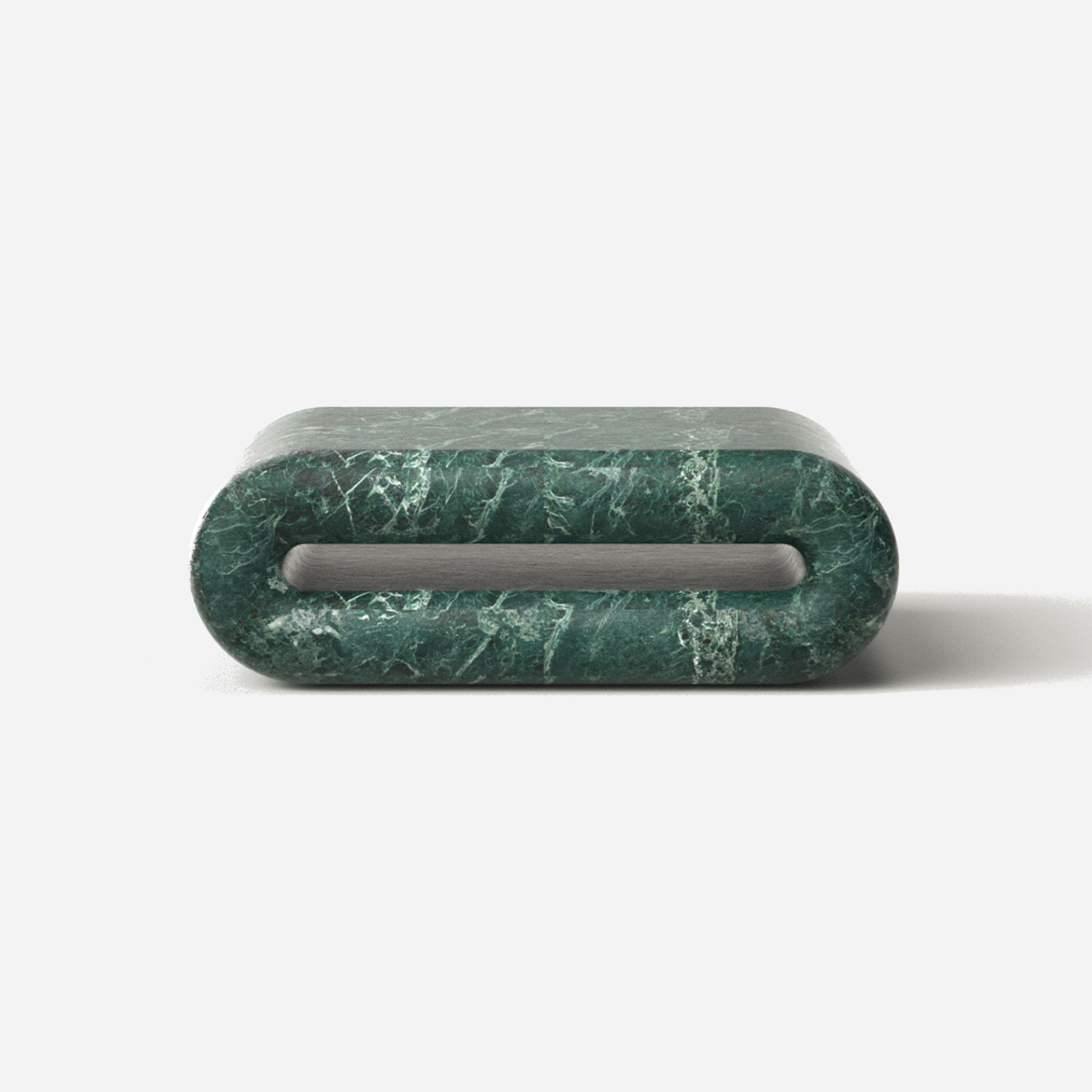 Marmar 40″ Table – Irish Green Marble + Aged Brass
