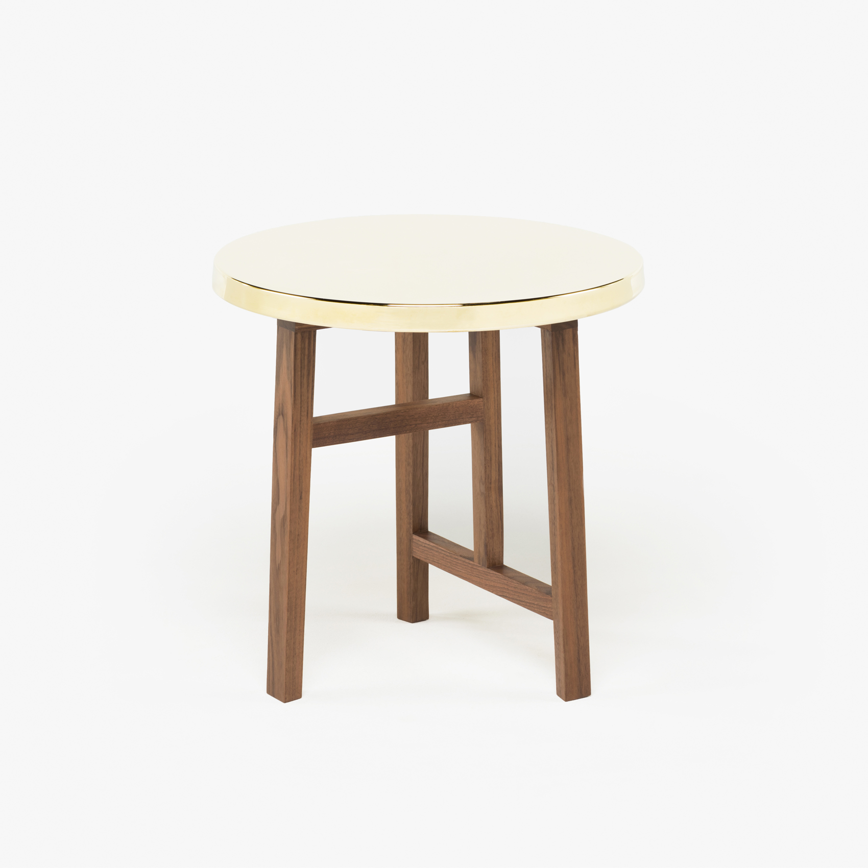 Trio Brass Side Table – Danish Oiled Walnut