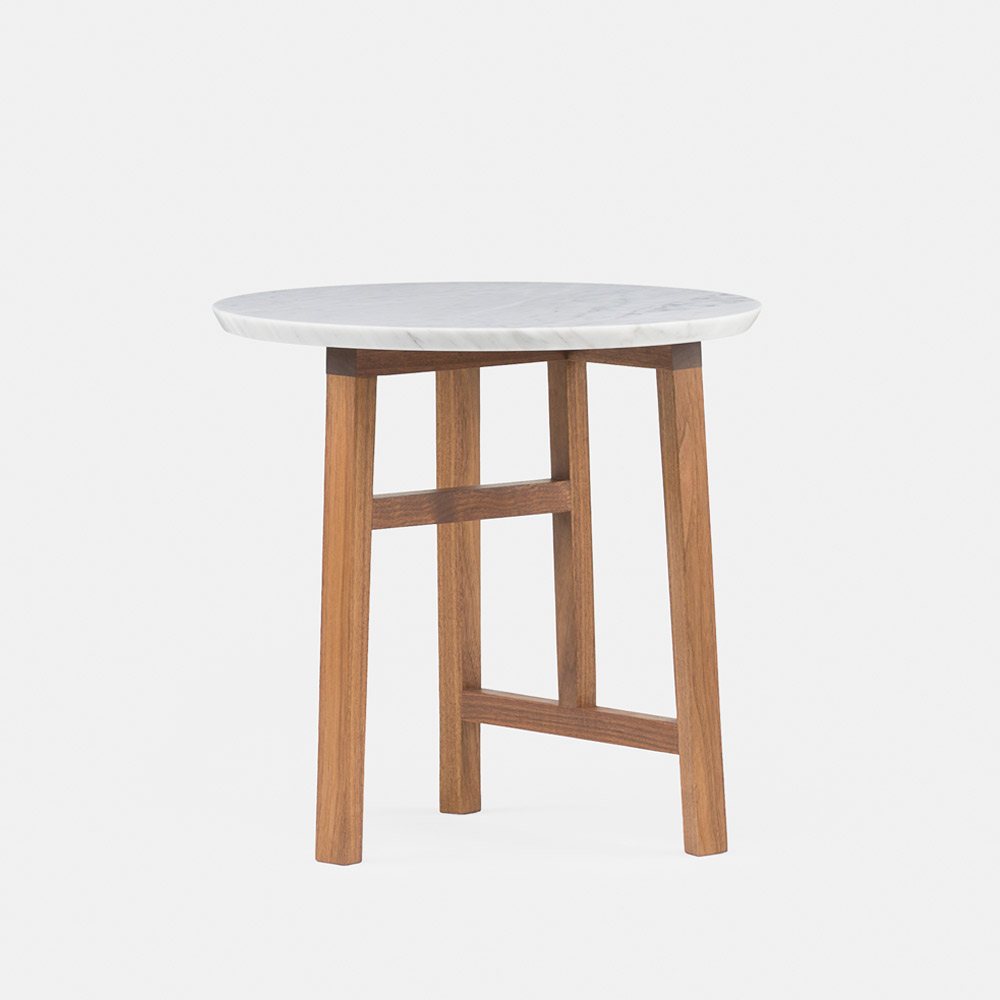 Trio Marble Side Table – Danish Oiled Walnut + Carrara Marble