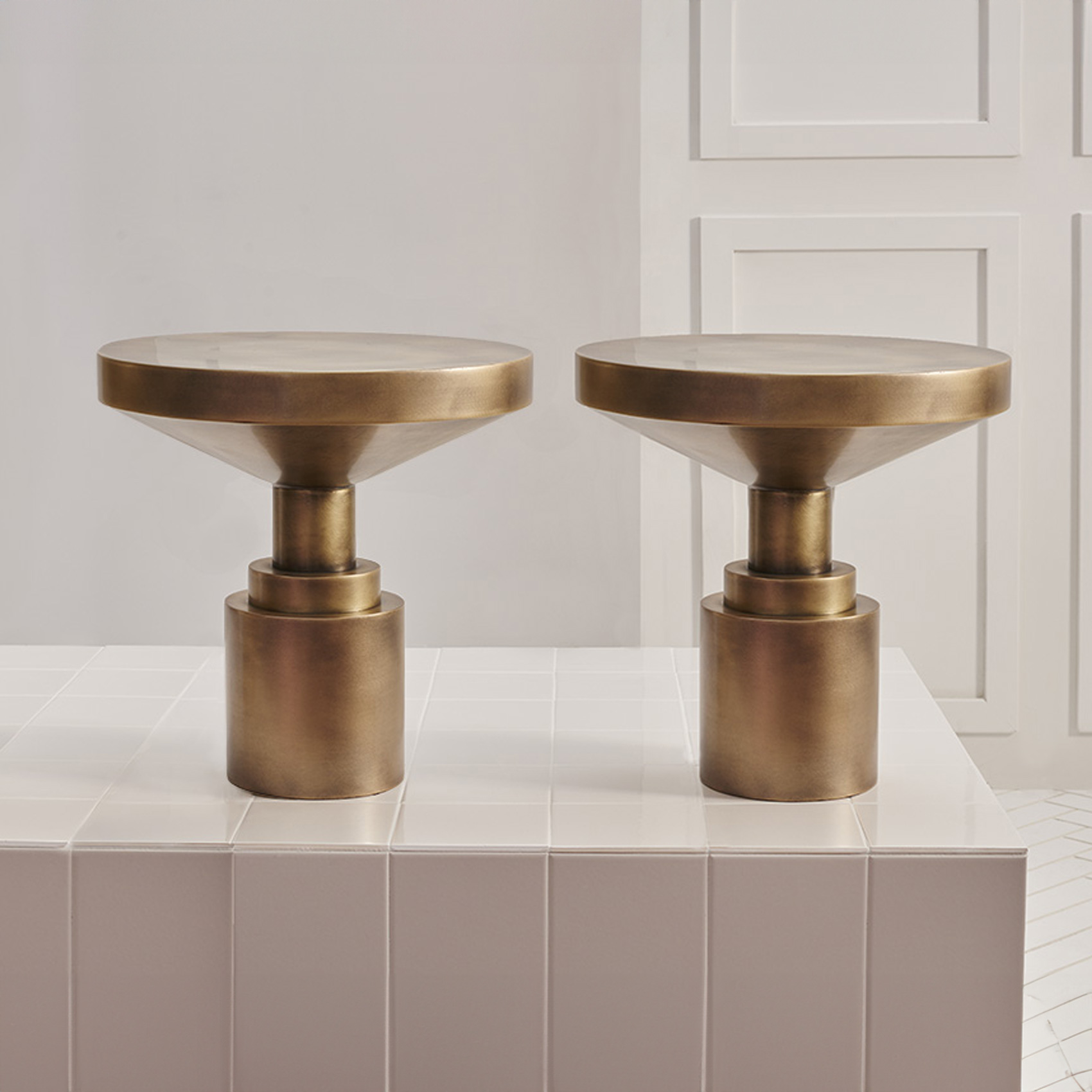 LOTUS Side Table Trio – Patinated Bronze
