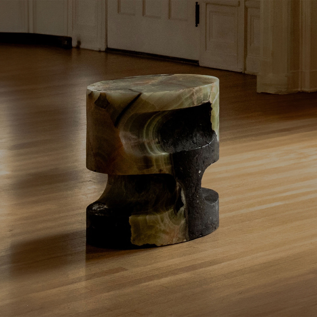 Stone Side Table 03 – White and Brown Onyx, 2024