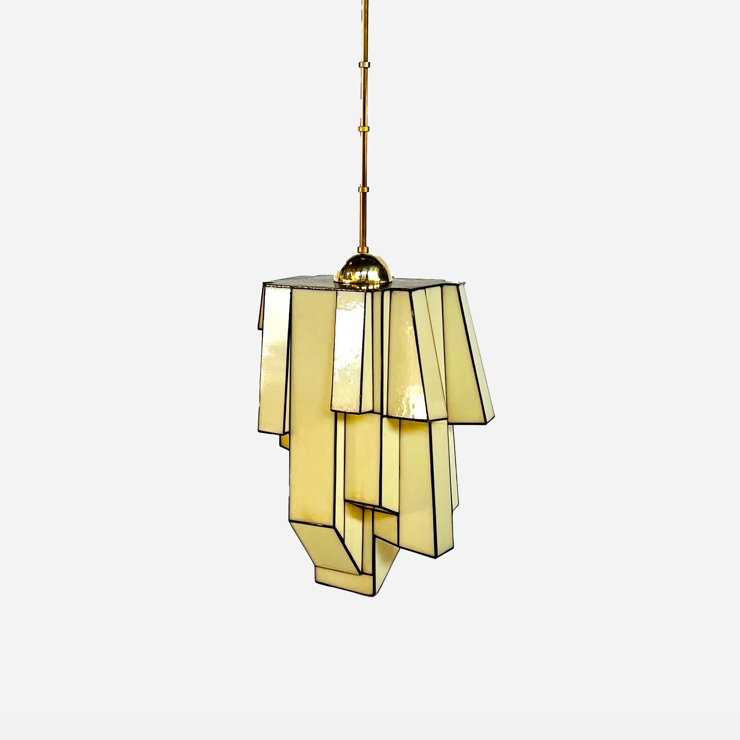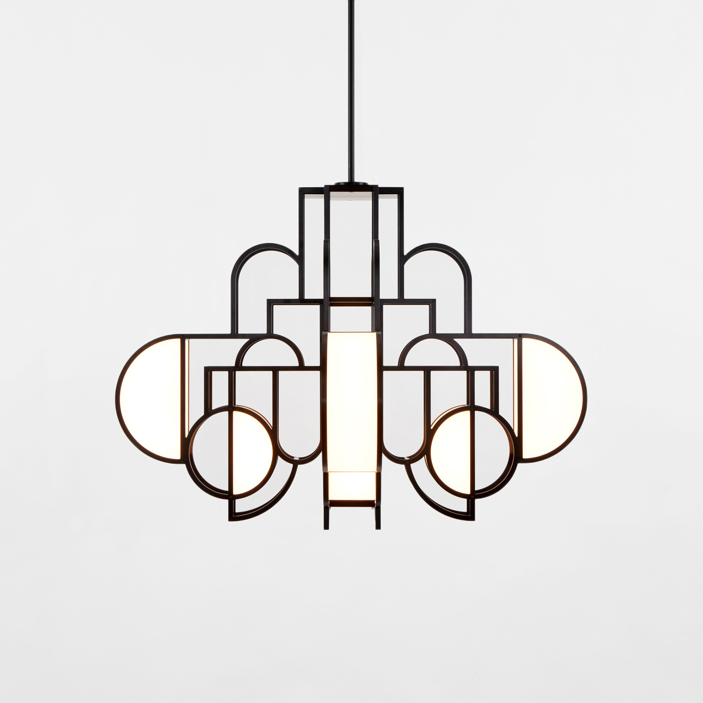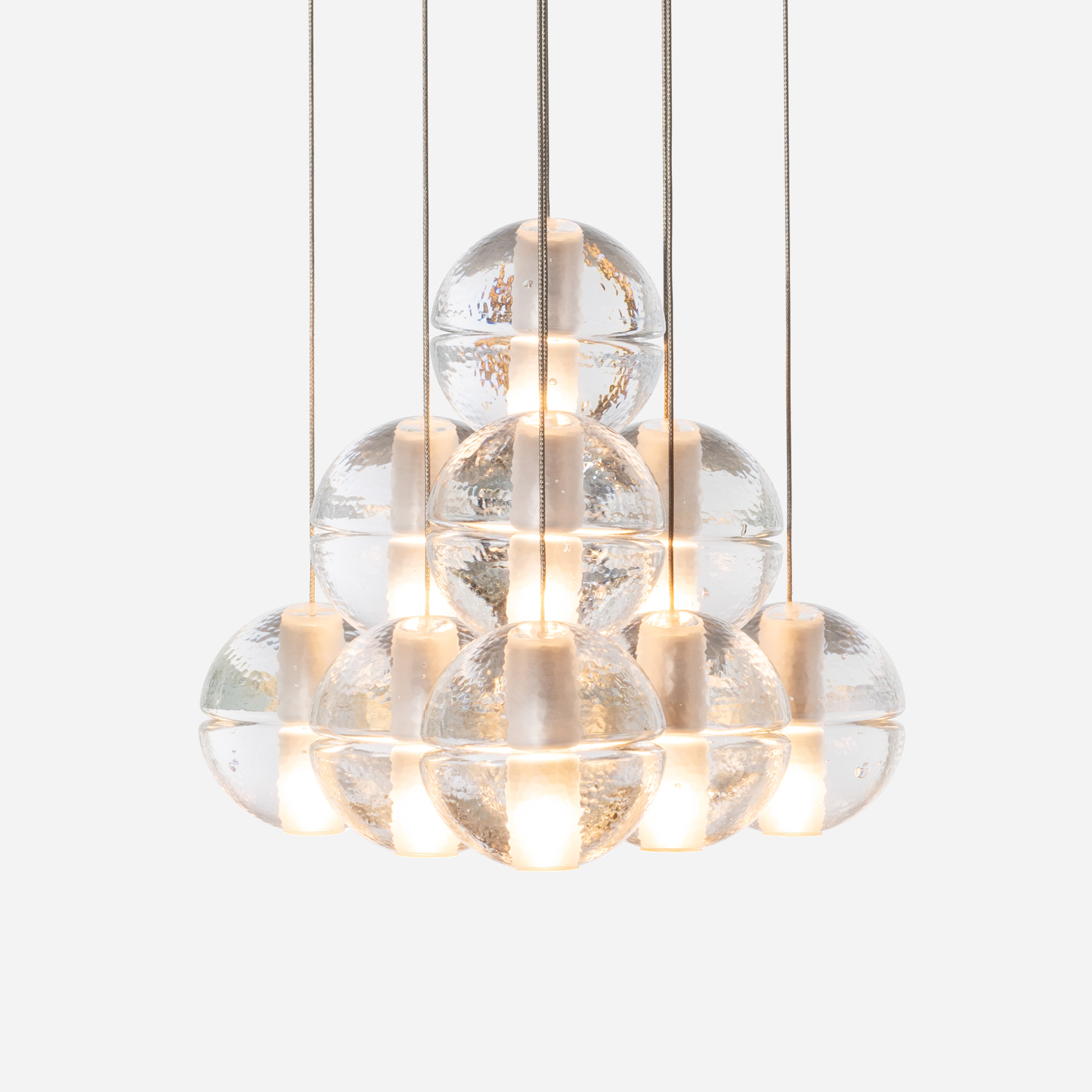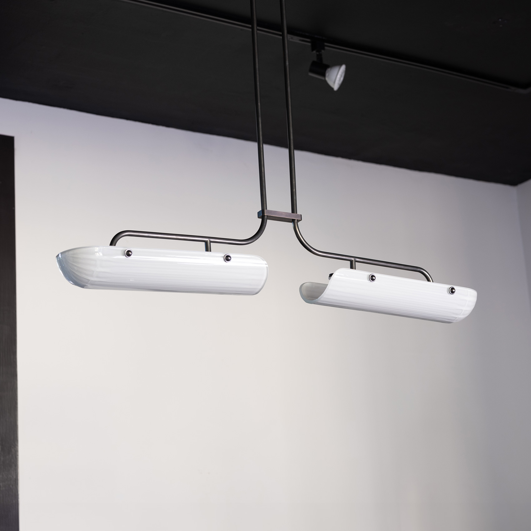 Bauer Chandelier 02 – Polished Nickel + White Glass