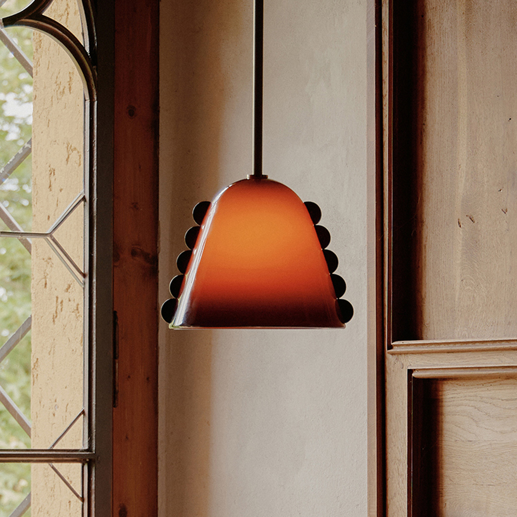 Calla Pendant Medium – Tobacco with Ink Embellishments + Blackened Brass