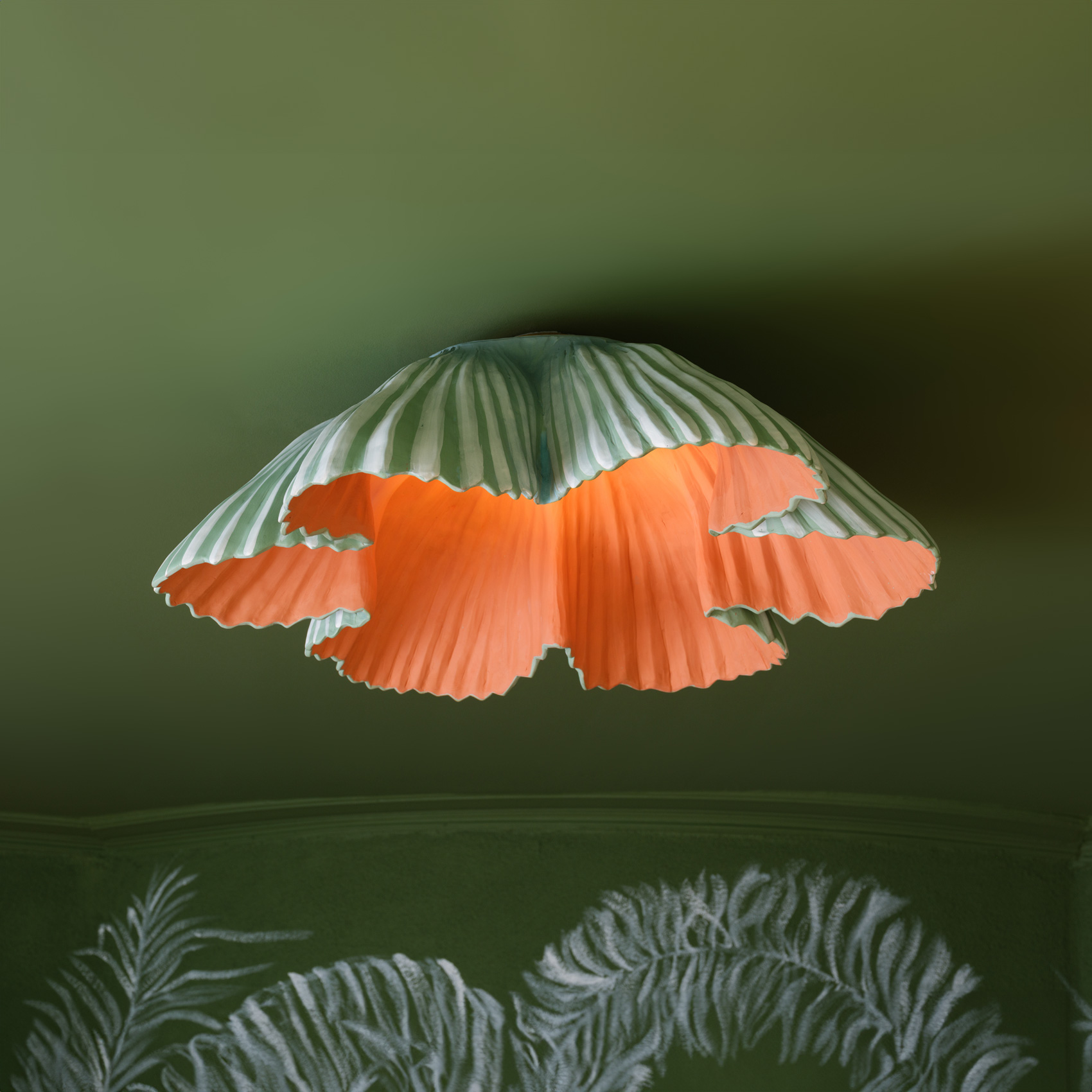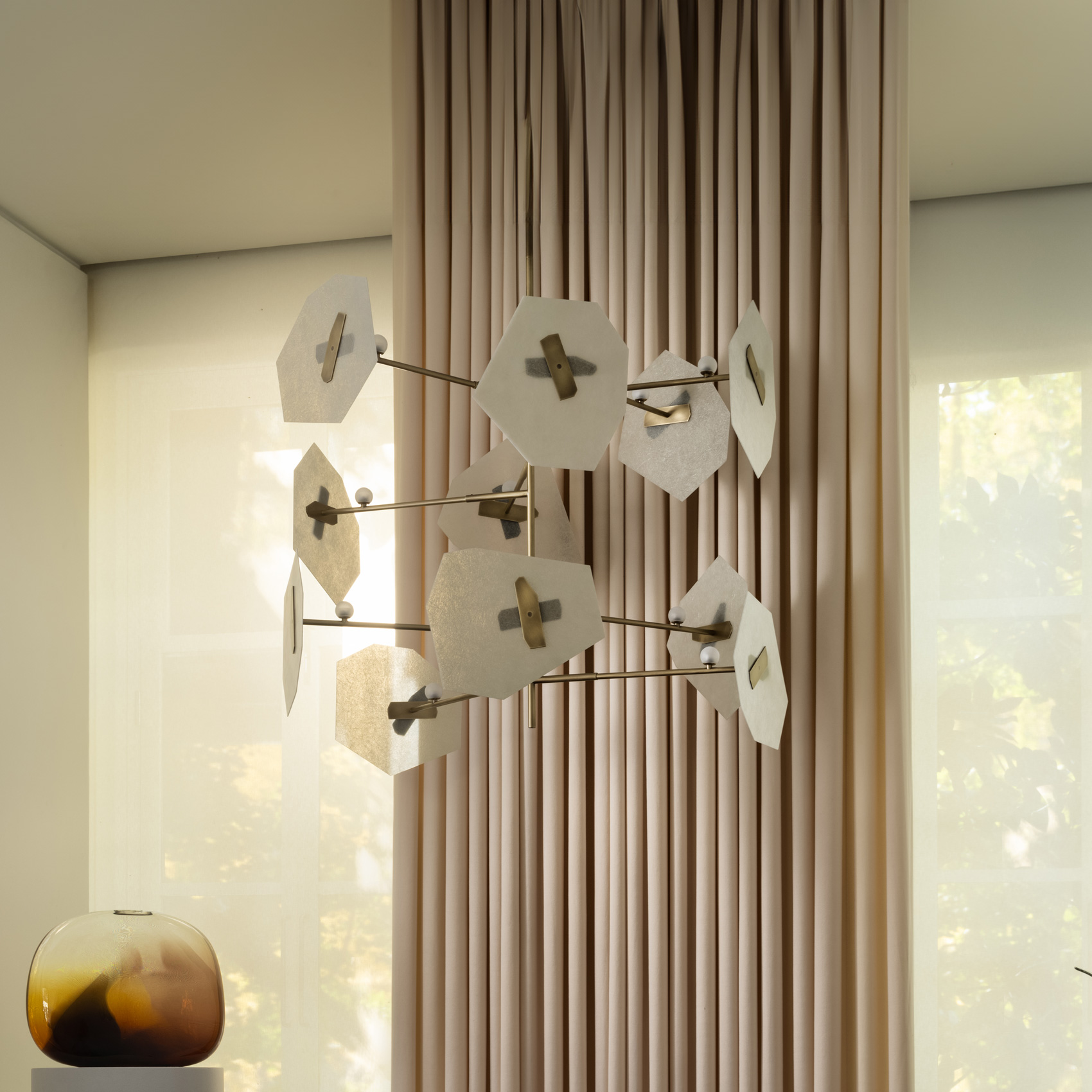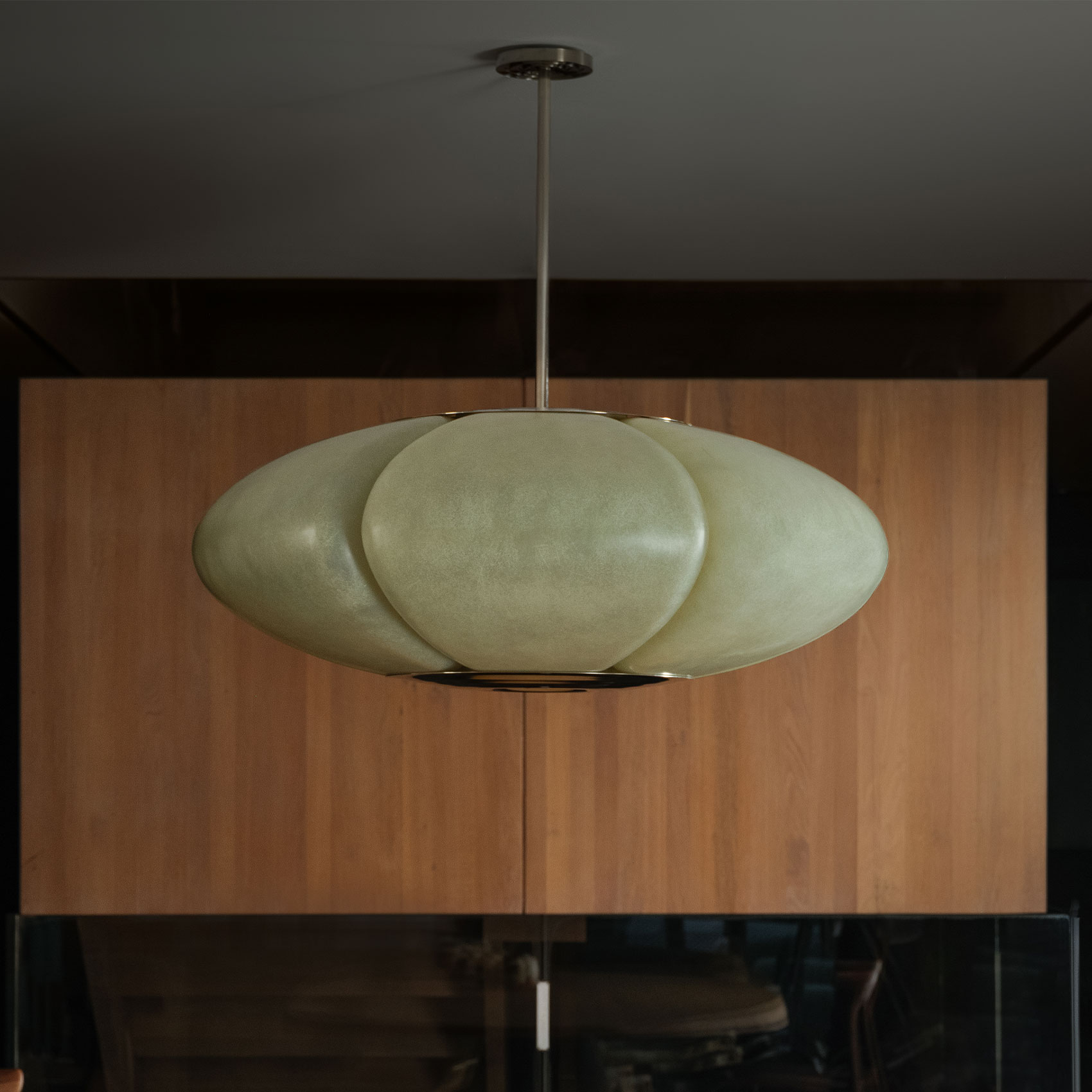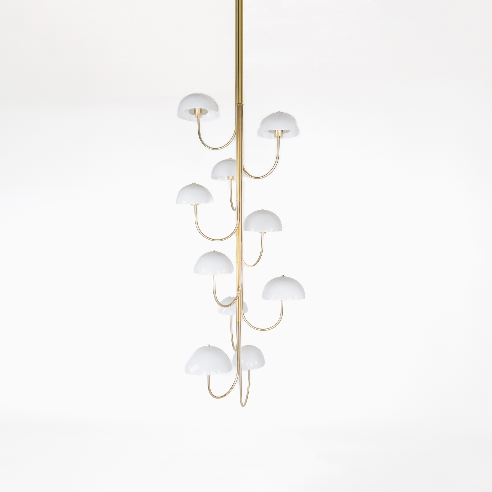 Willa 10 Light Vertical – Raw Brass + Jade Moss Ceramic Shades