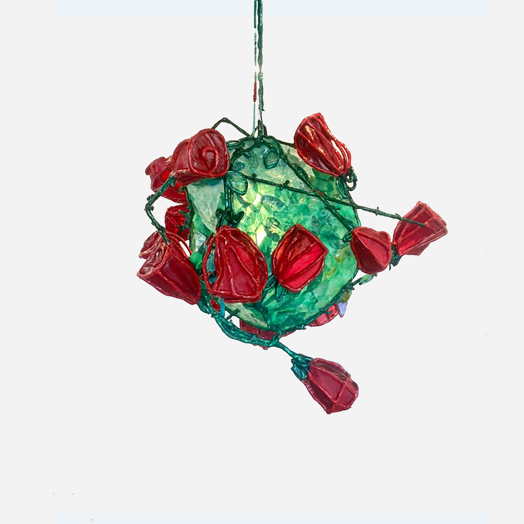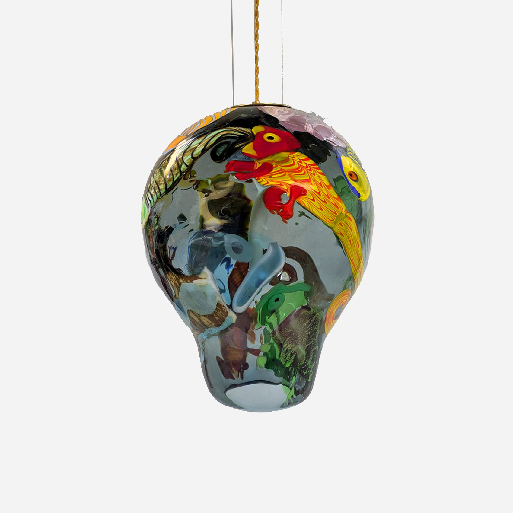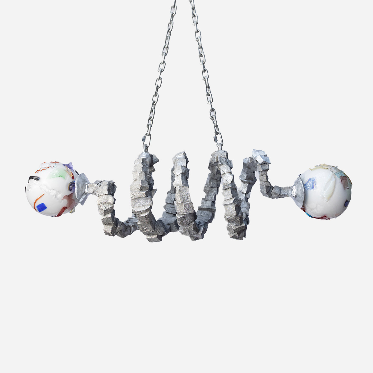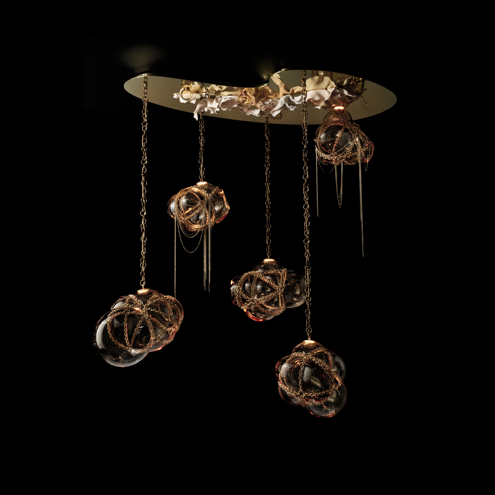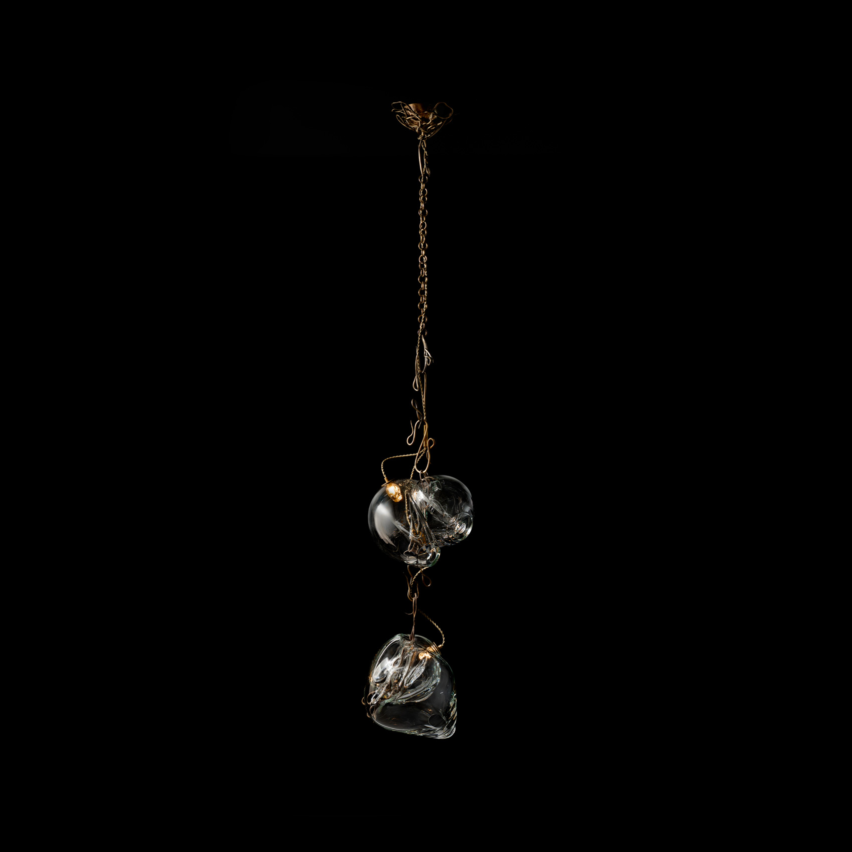Suspended Assemblage 01 with Bound Glass Pendants and Porcelain Roots