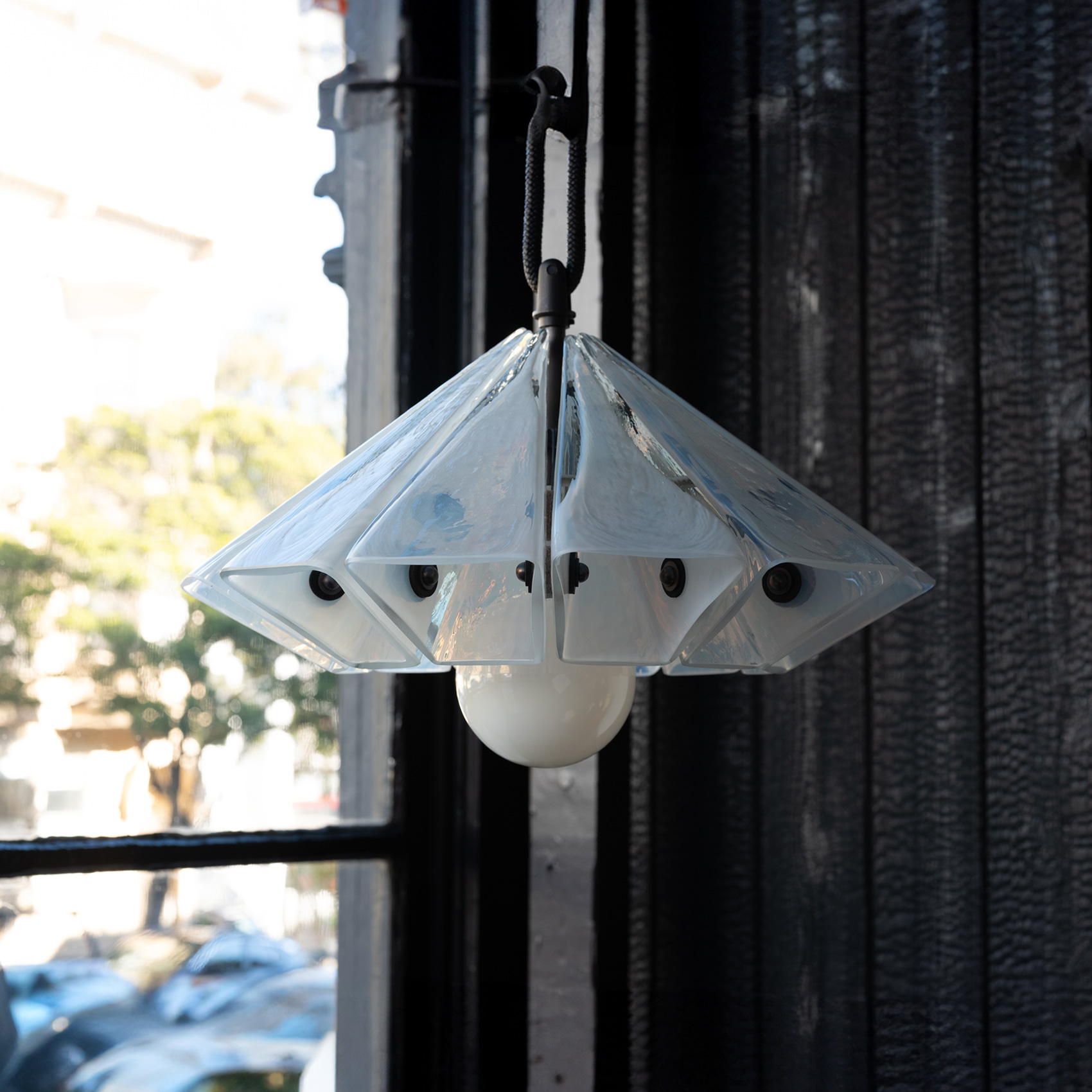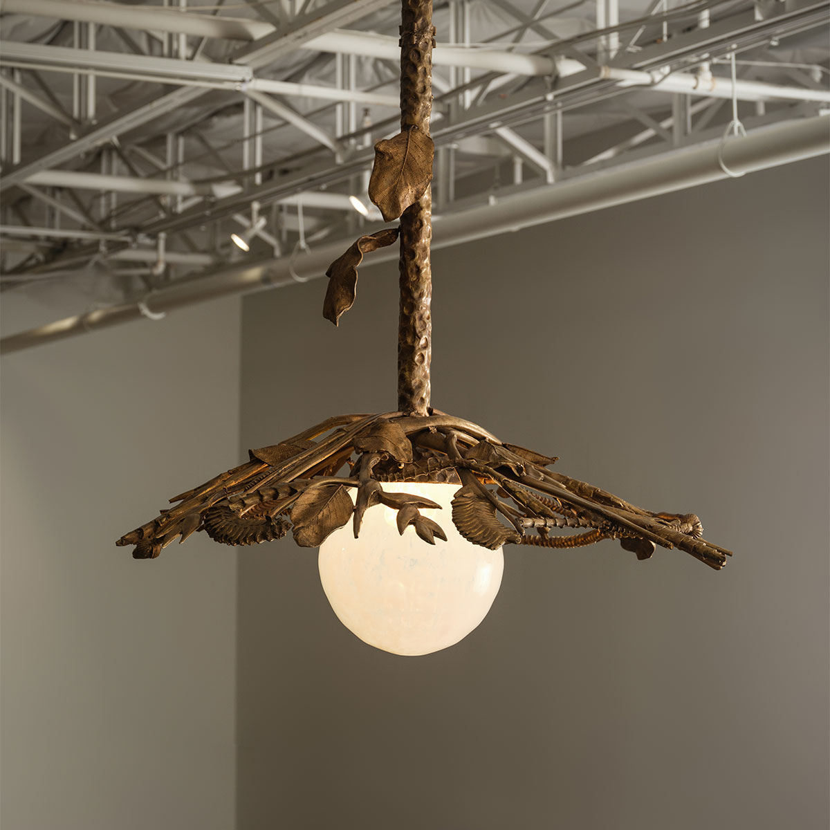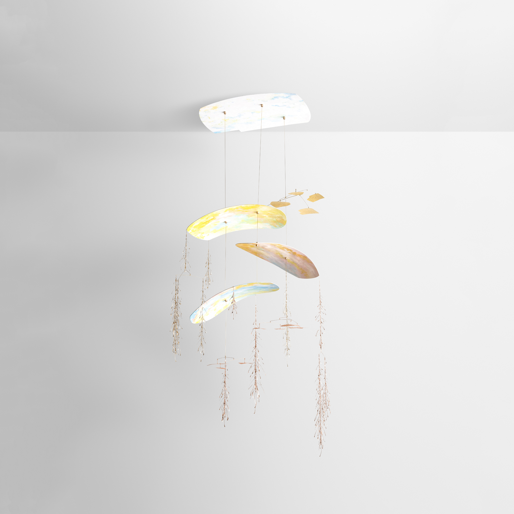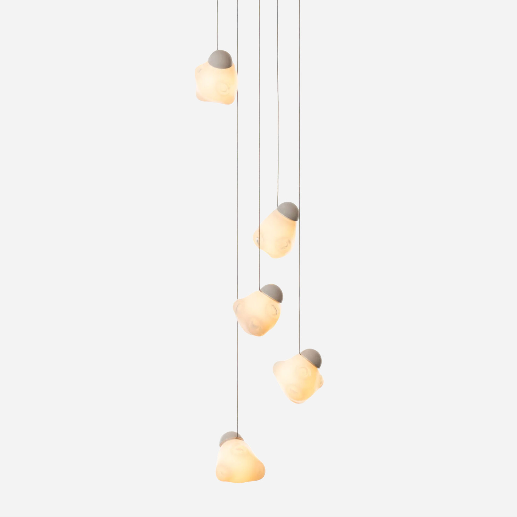 Suspended Assemblage 01 with Bound Glass Pendants and Porcelain Roots