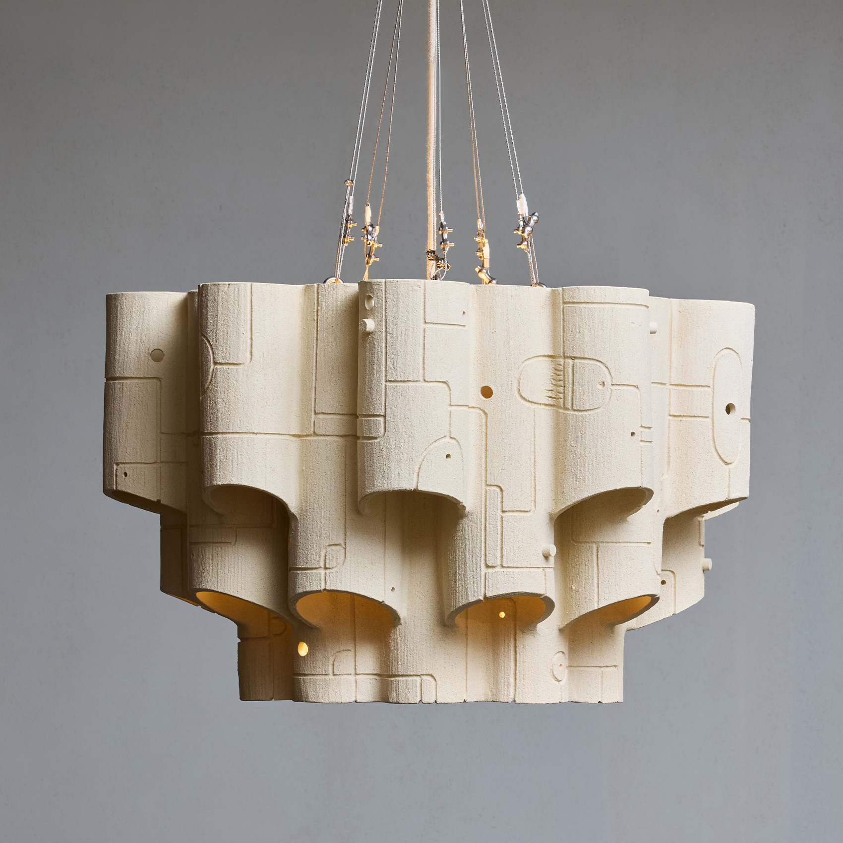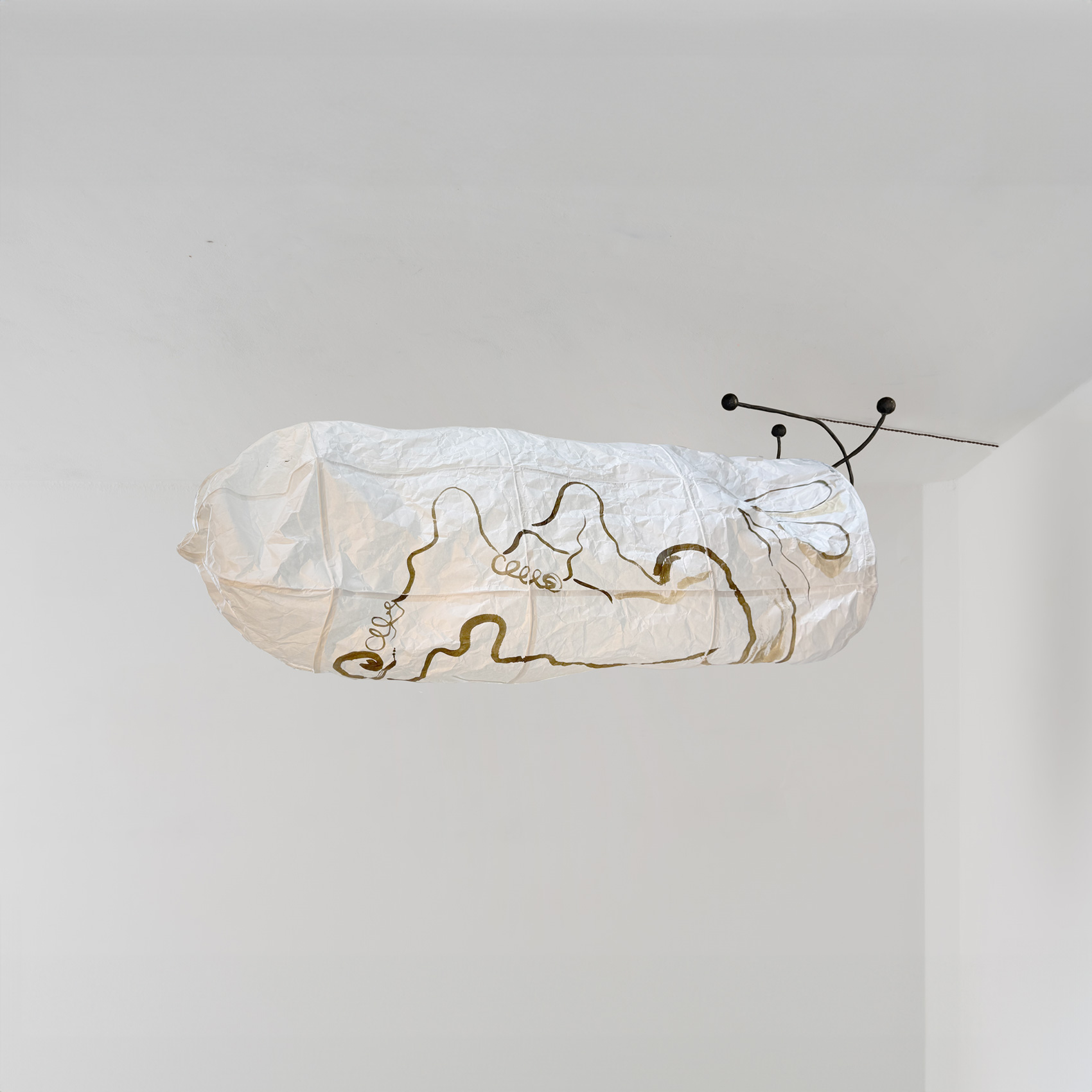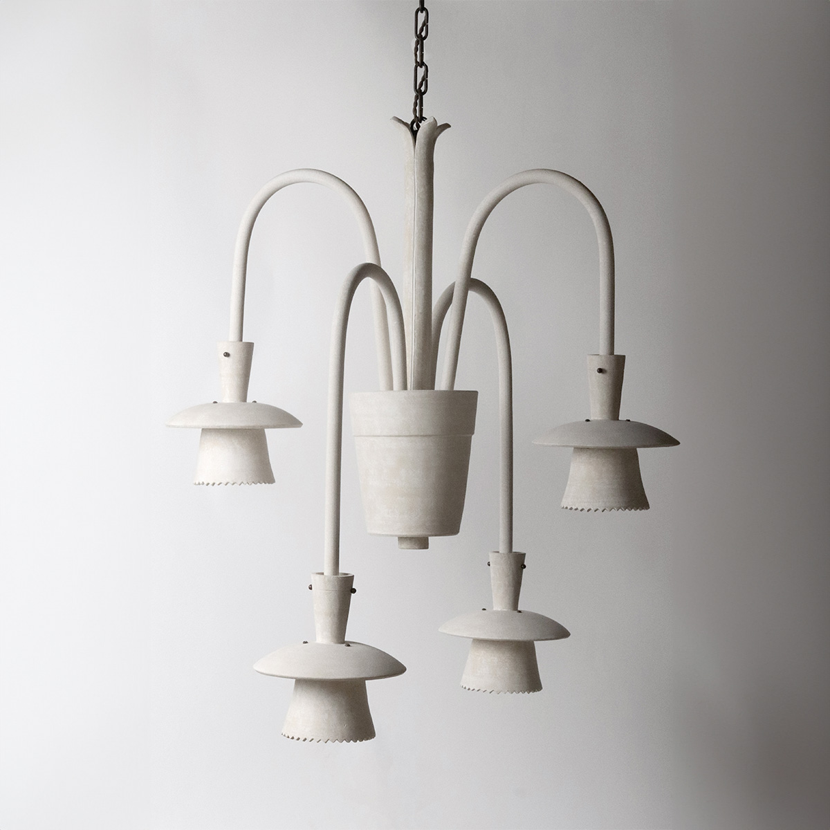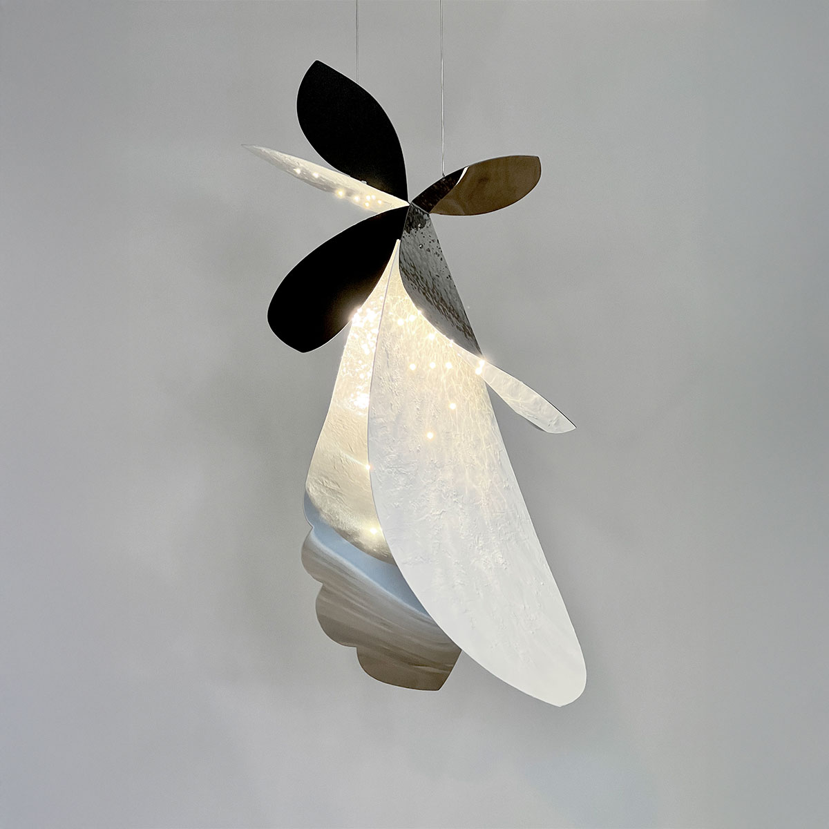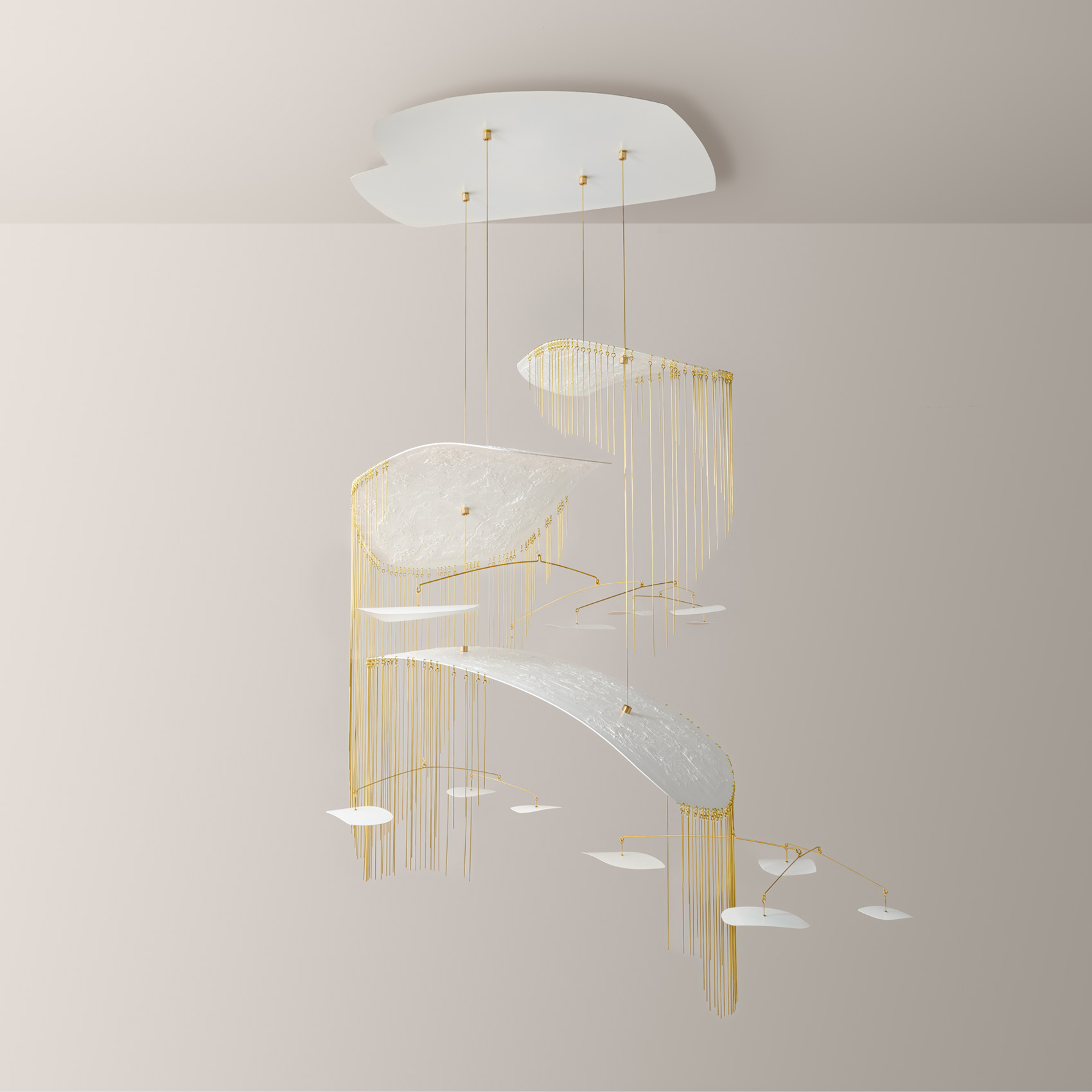 Suspended Assemblage 01 with Bound Glass Pendants and Porcelain Roots