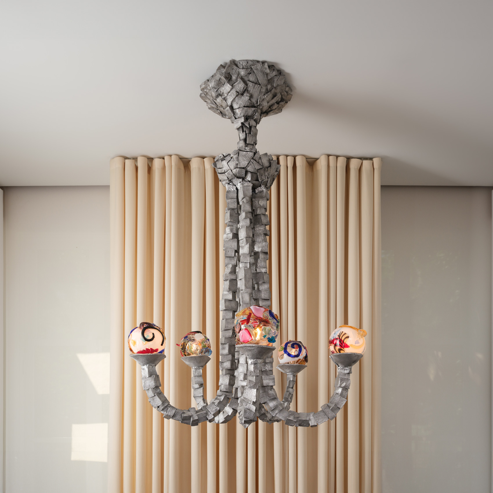 37-Bulb Kingdom Chandelier KDD.37.01 – German Silver + White Glass
