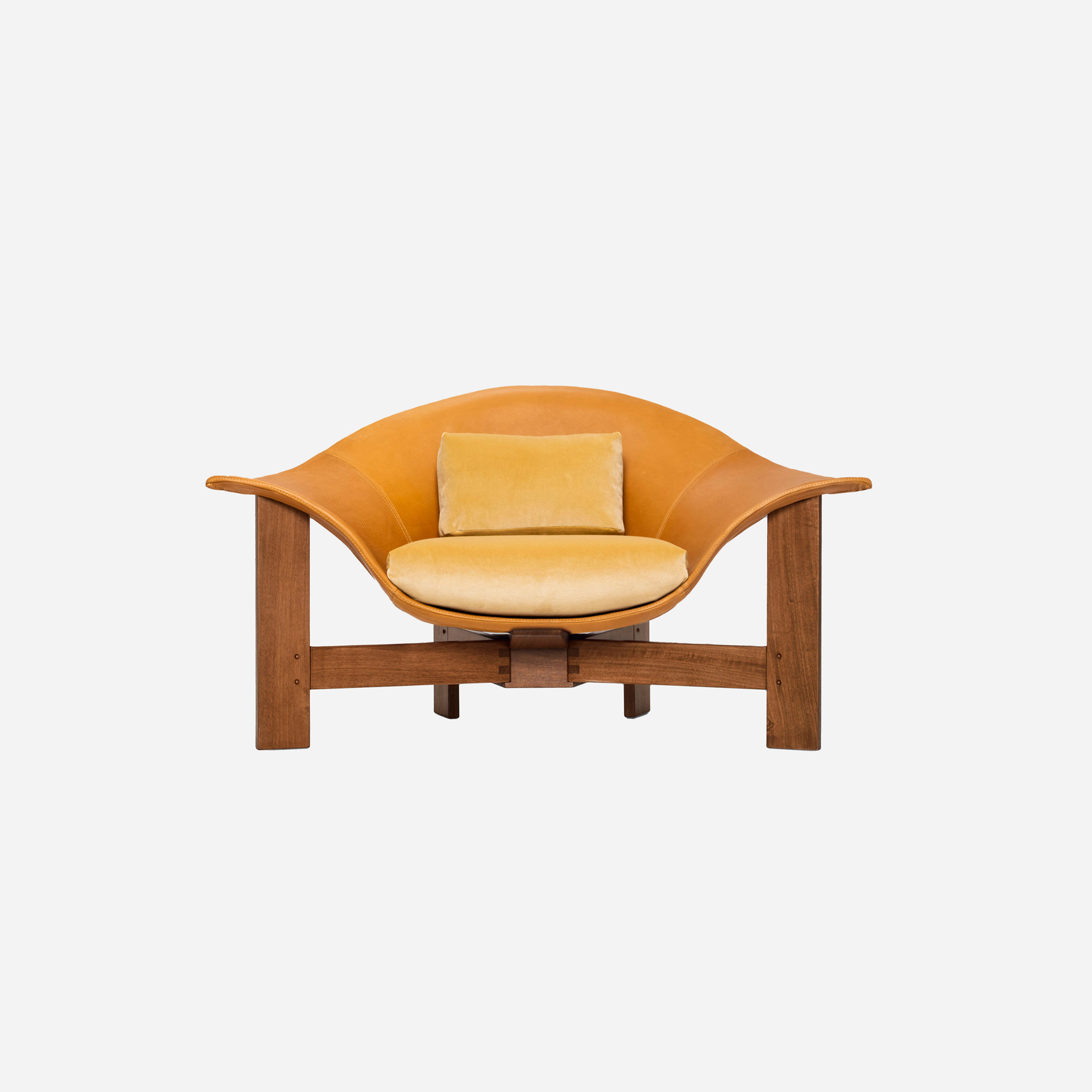 Bianca Chair – Walnut + Toffee Leather + Cream Velvet