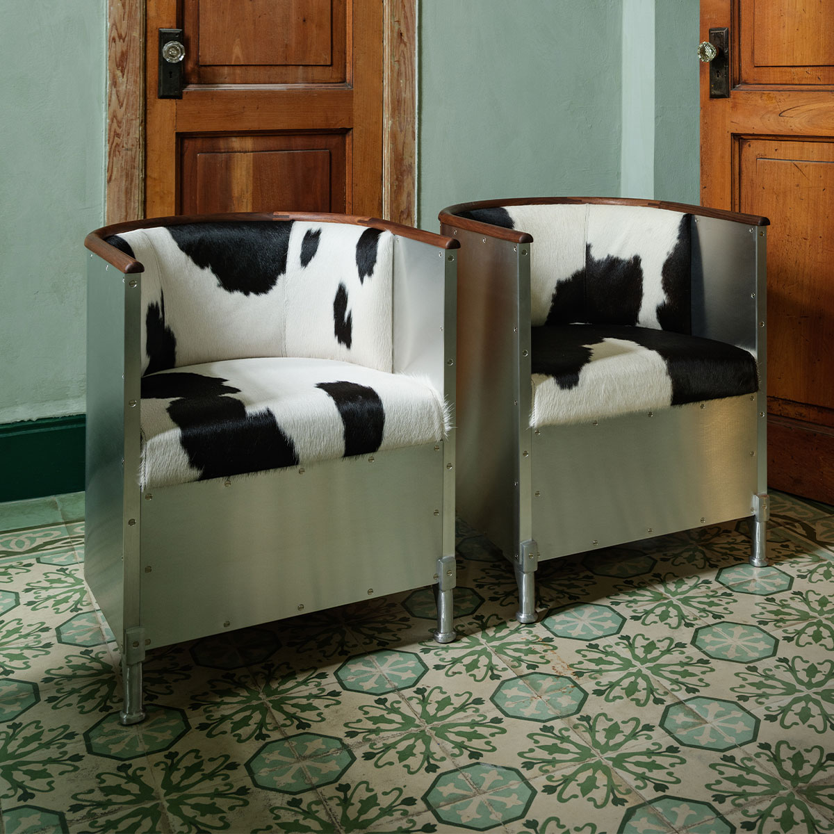 Aluminium Armchair – Black Cowhide + Walnut