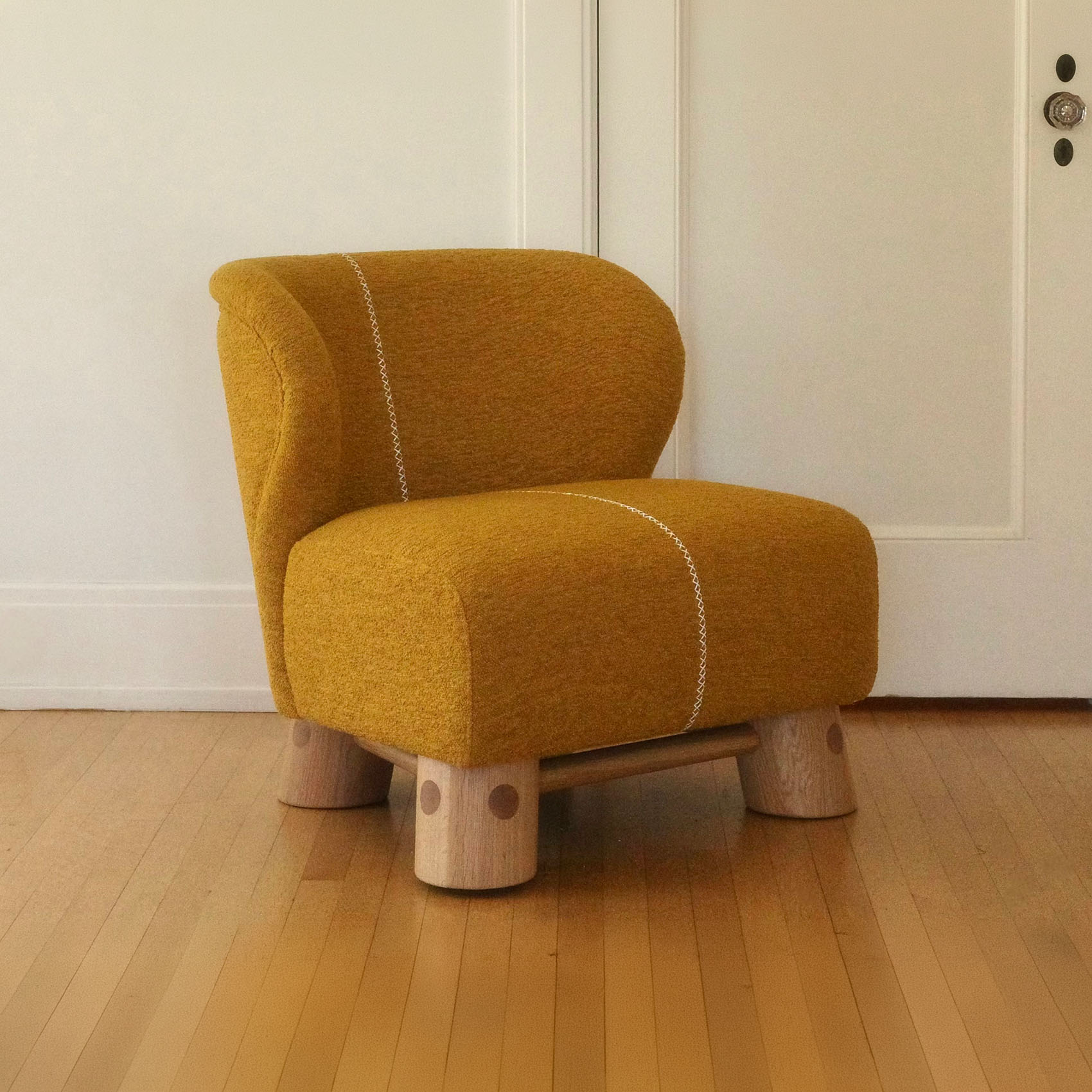 Mozart Chair – Natural Oak + Sunset Fabric + White Stitching