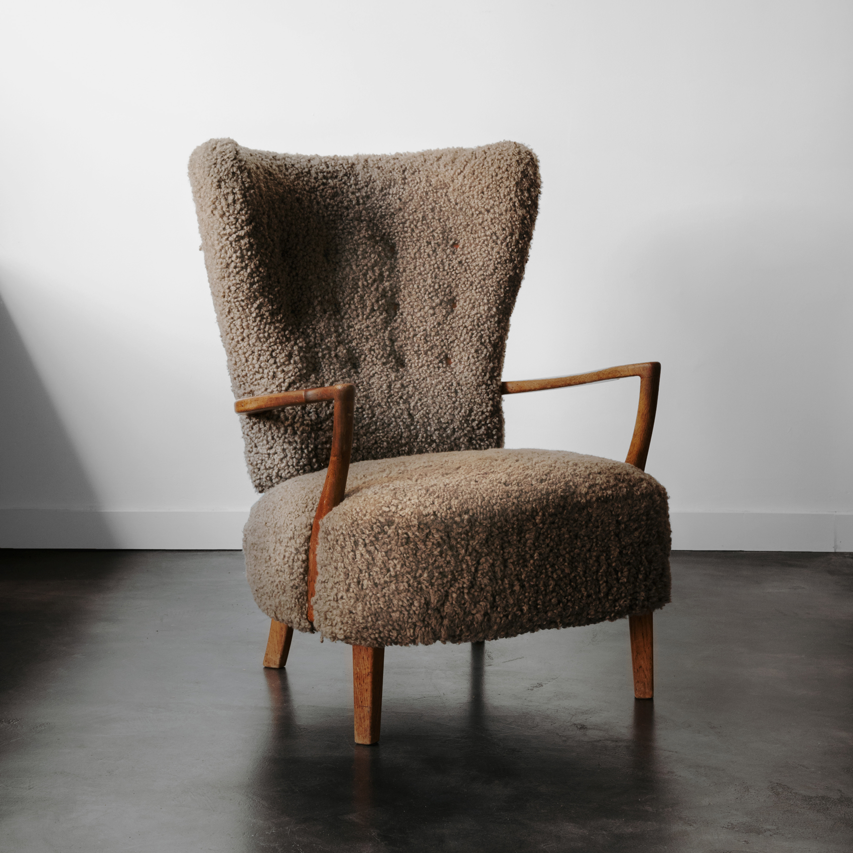 Vintage Gray Sheepskin Teddy Chair – High Back