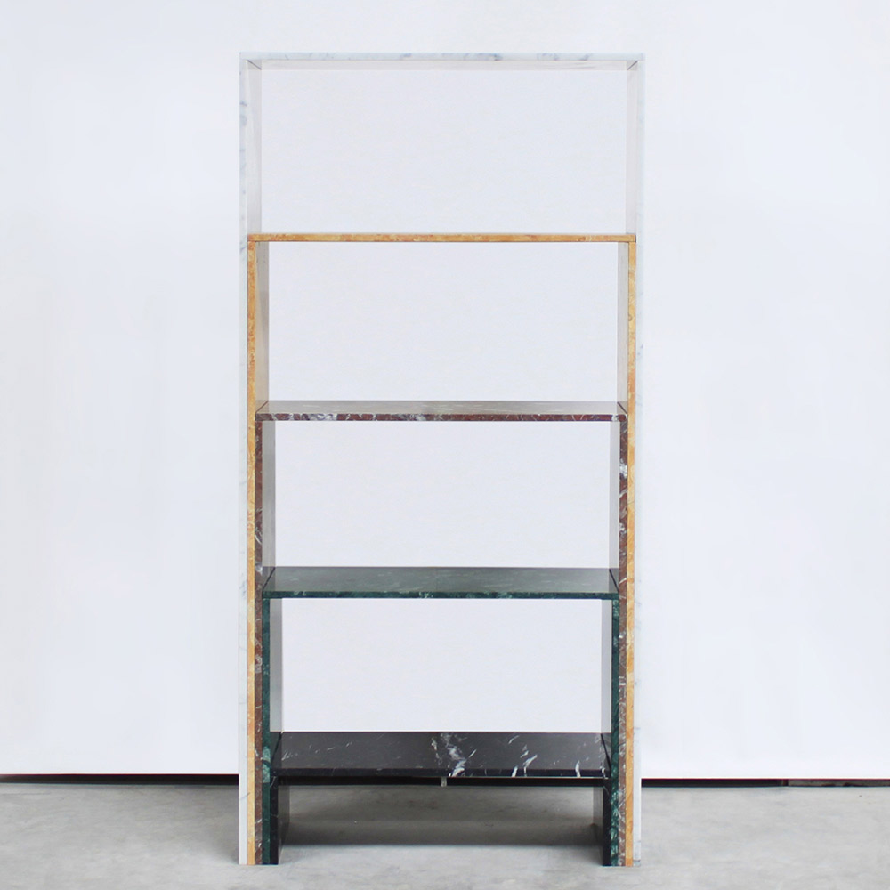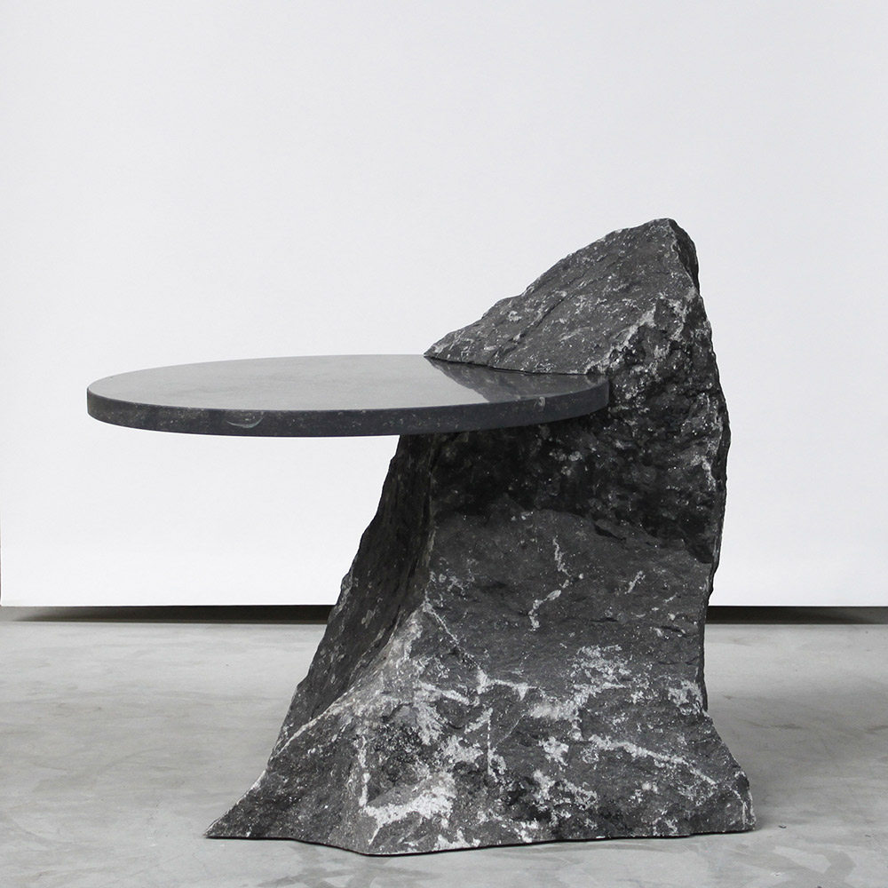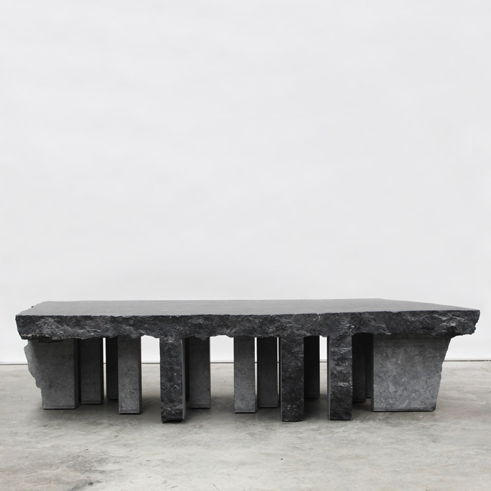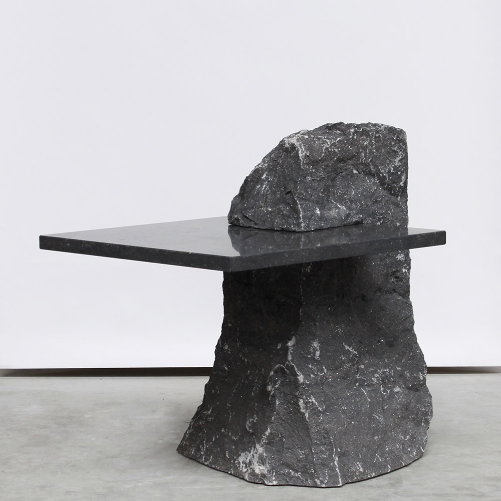 Fragments will feature four new Lex Pott works, three of which are made from Belgian Bluestone. The fourth piece, a shelf, is composed of multiple layers of marble including: Nero Marquina, Verde Rajasthan, Rouge, Giallo Reale, and Bianco Carrara marble, sourced from the same quarry as the rest of the collection. Commissioned by Alhadeff exclusively for The Future Perfect, the designs started with an idea about the way rock at a quarry breaks along the natural lines in the material. The works offer a dialogue between nature’s naturally broken forms and industry’s polished planes of traditionally manufactured stone.