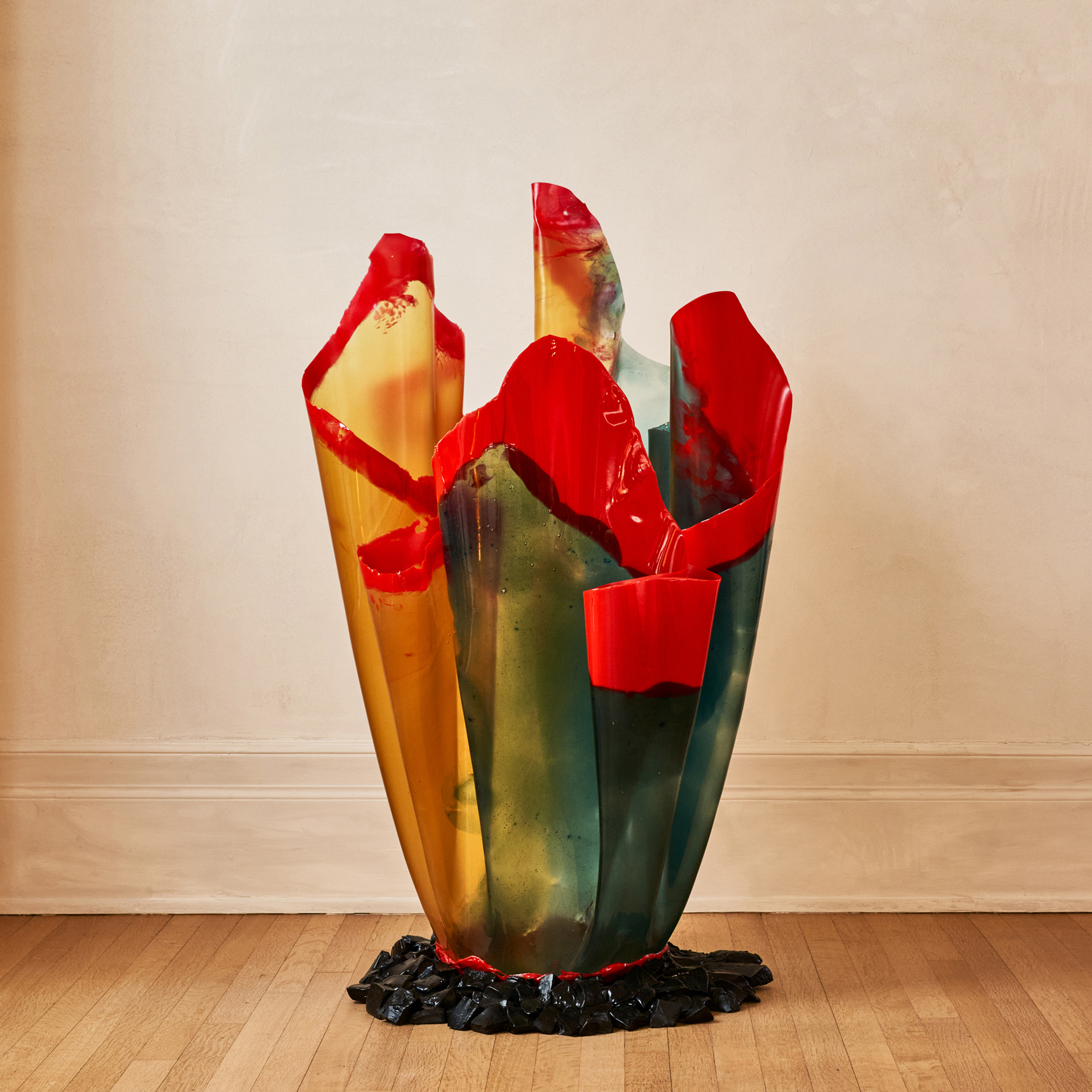 Pesce’s unique approach to social critique through expressive forms and atypical materials can be traced to his first major line of furniture: his Up series, released with B&B Italia in 1969. His most famous work from the series, UP5_6 — also known as La Mamma — is a curvaceous armchair with ample, feminine proportions reminiscent of the Venus of Willendorf. For Dear Future, Pesce will present a new edition of the chair made of recycled bottle corks sourced from Italy — one of only two ever made, produced in 2021 by B&B Italia.