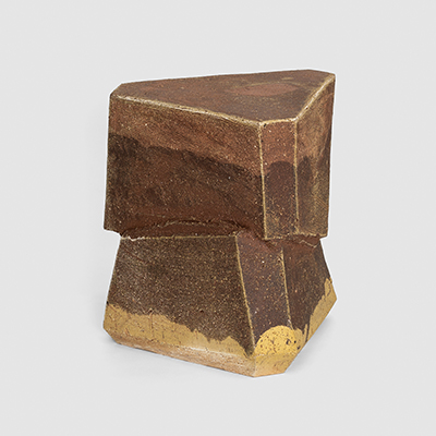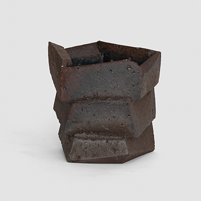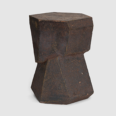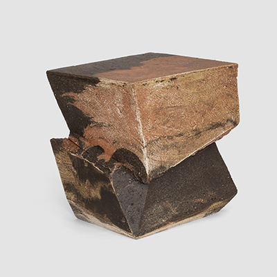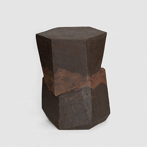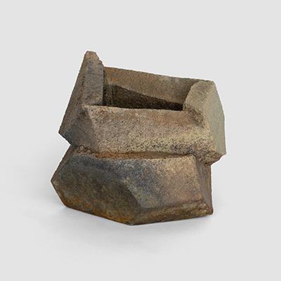 The allure of wood-firing captivated Cross from the outset, infusing each piece with a patina reminiscent of ancient artifacts, weathered stone structures, or relics from a discarded post-apocalyptic future. His vessels evoke minimalist simplicity, drawing inspiration from geology, science fiction, and modern art. The sculptural works, characterized by bold and primitive forms, embody a fusion of contemporary sensibility and tactile materiality. A trace of his printmaking background can still be discerned in his pieces, manifesting through strong silhouettes, defined lines, and recurring motifs.