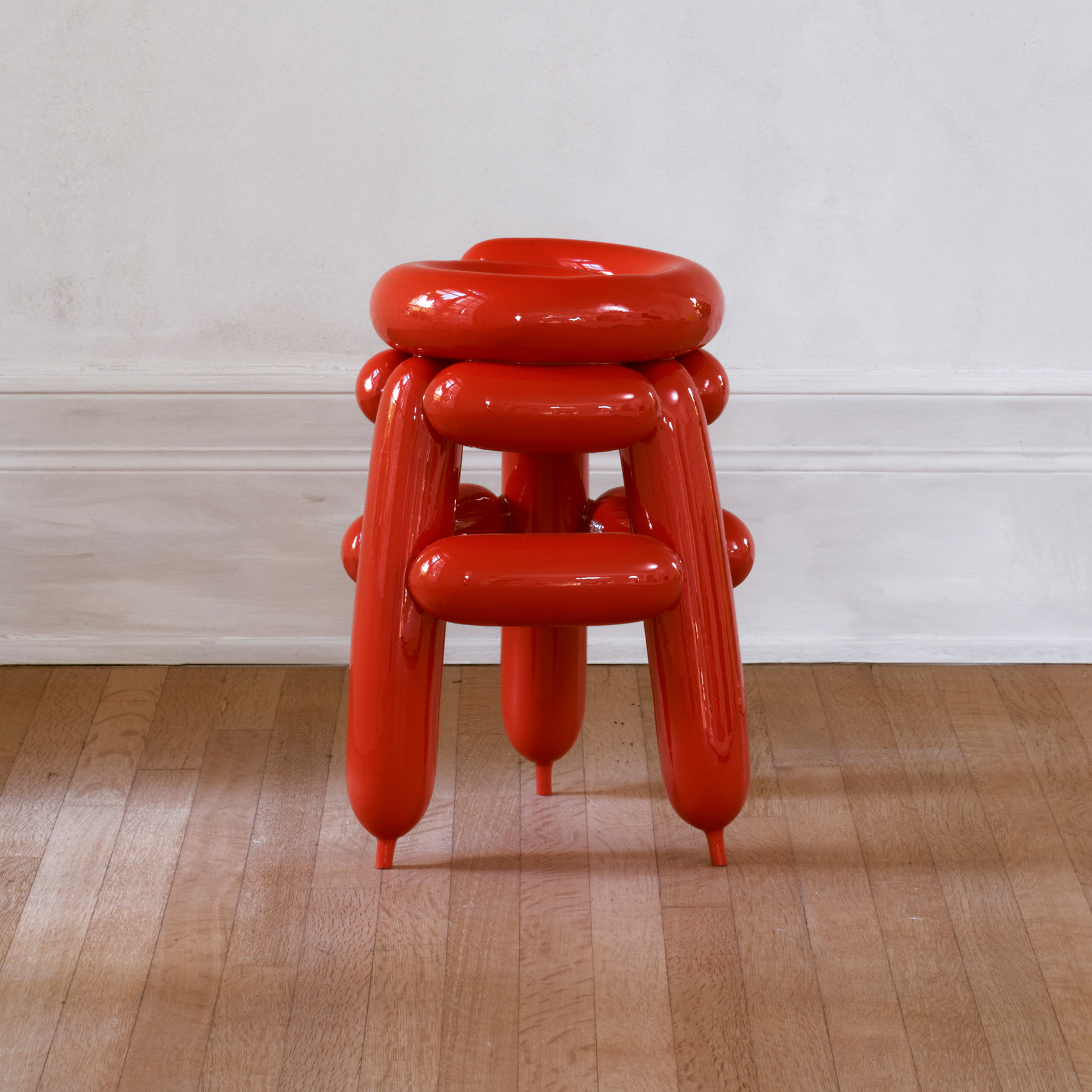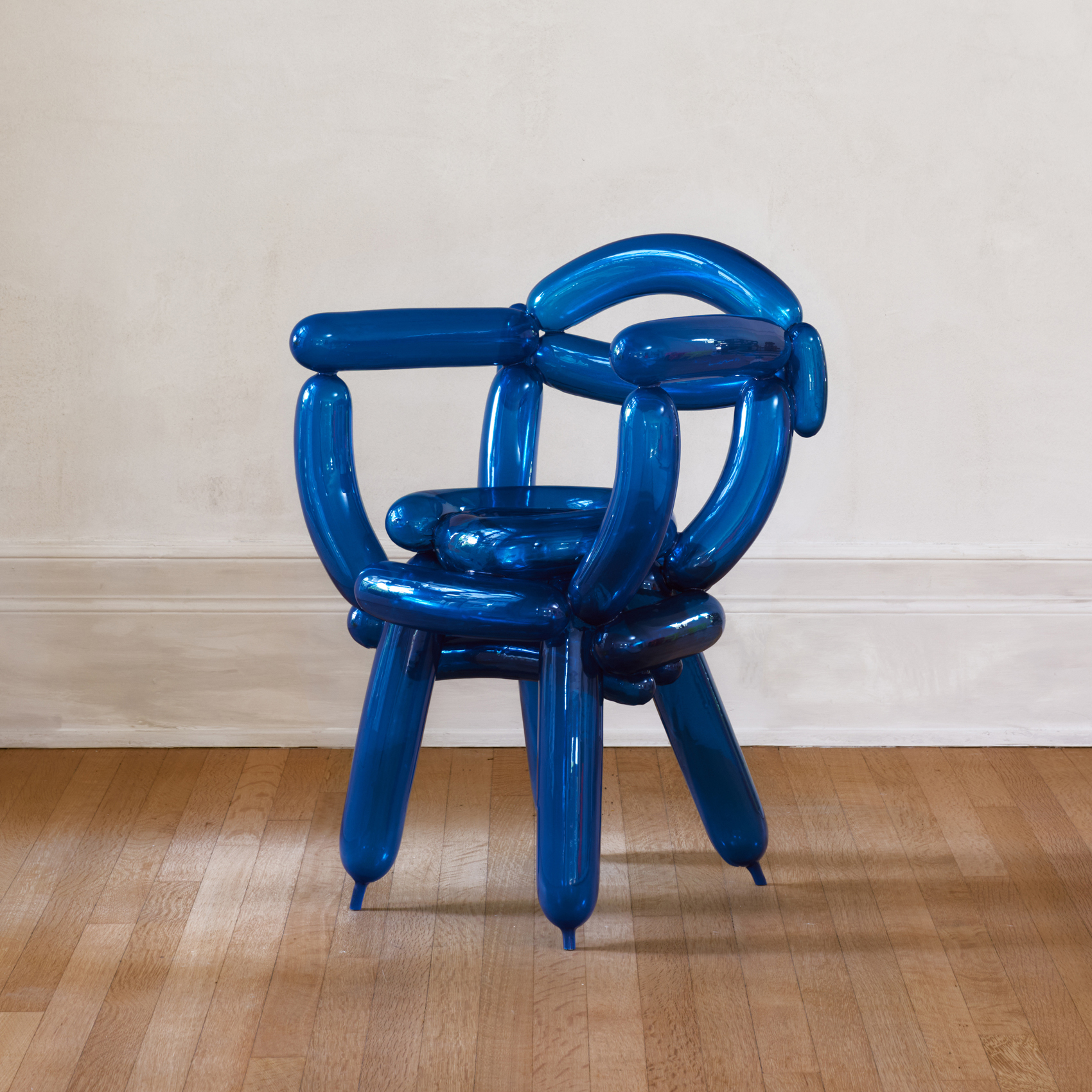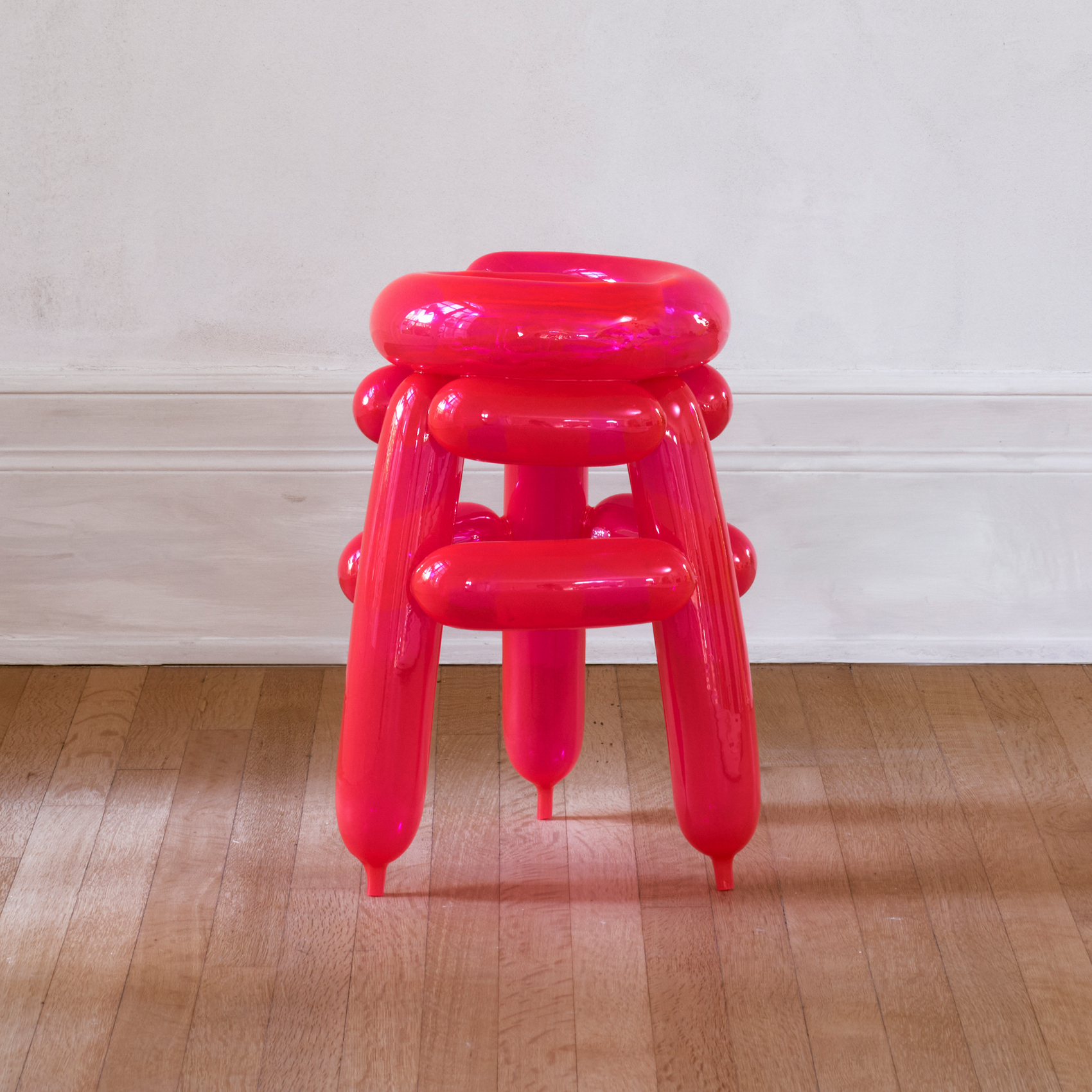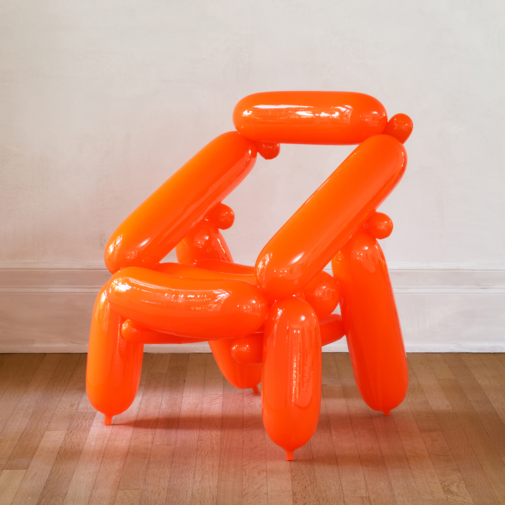 Seungjin Yang’s work lives inside of an aesthetic continuity that is as immediately identifiable as it is ceaselessly compelling. Using the universally recognizable signifier of the balloon, and deriving forms from childhood memories, Seungjin’s acclaimed Blowing series invites the viewer to physically engage with the purely hypothetical. These new works continue the artist’s ongoing exploration of a unique reality that is typified by bold colors and the pleasantly surprising stability of seemingly pliable materials.
