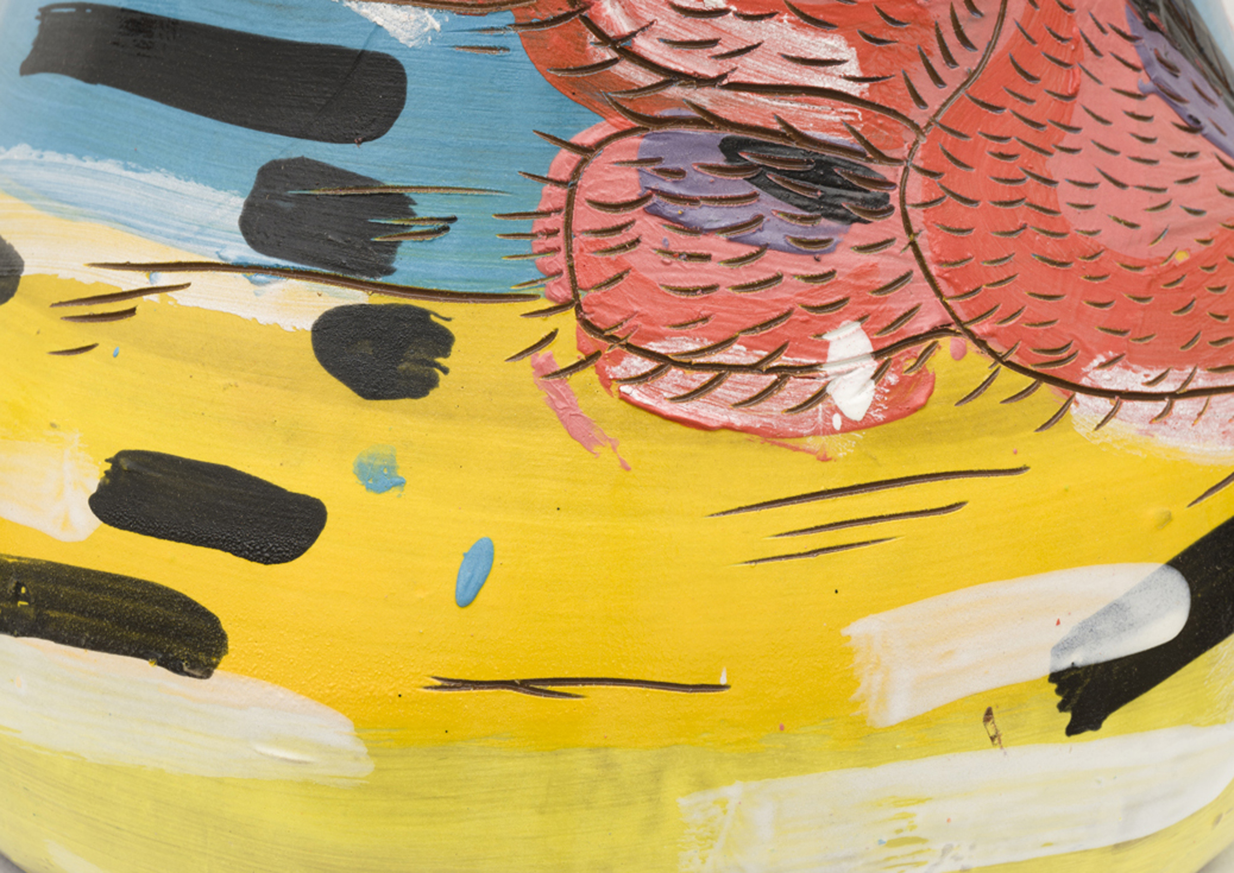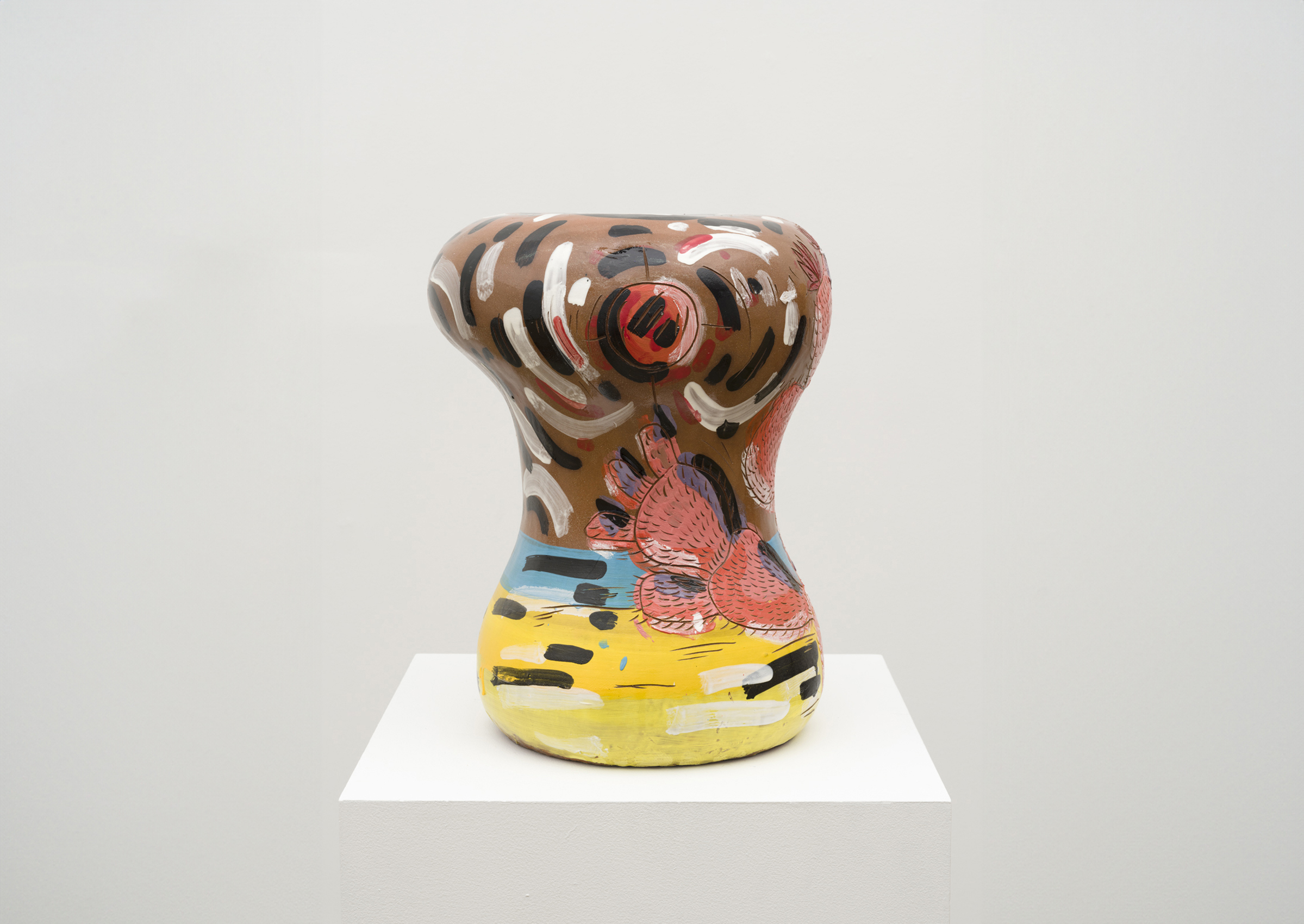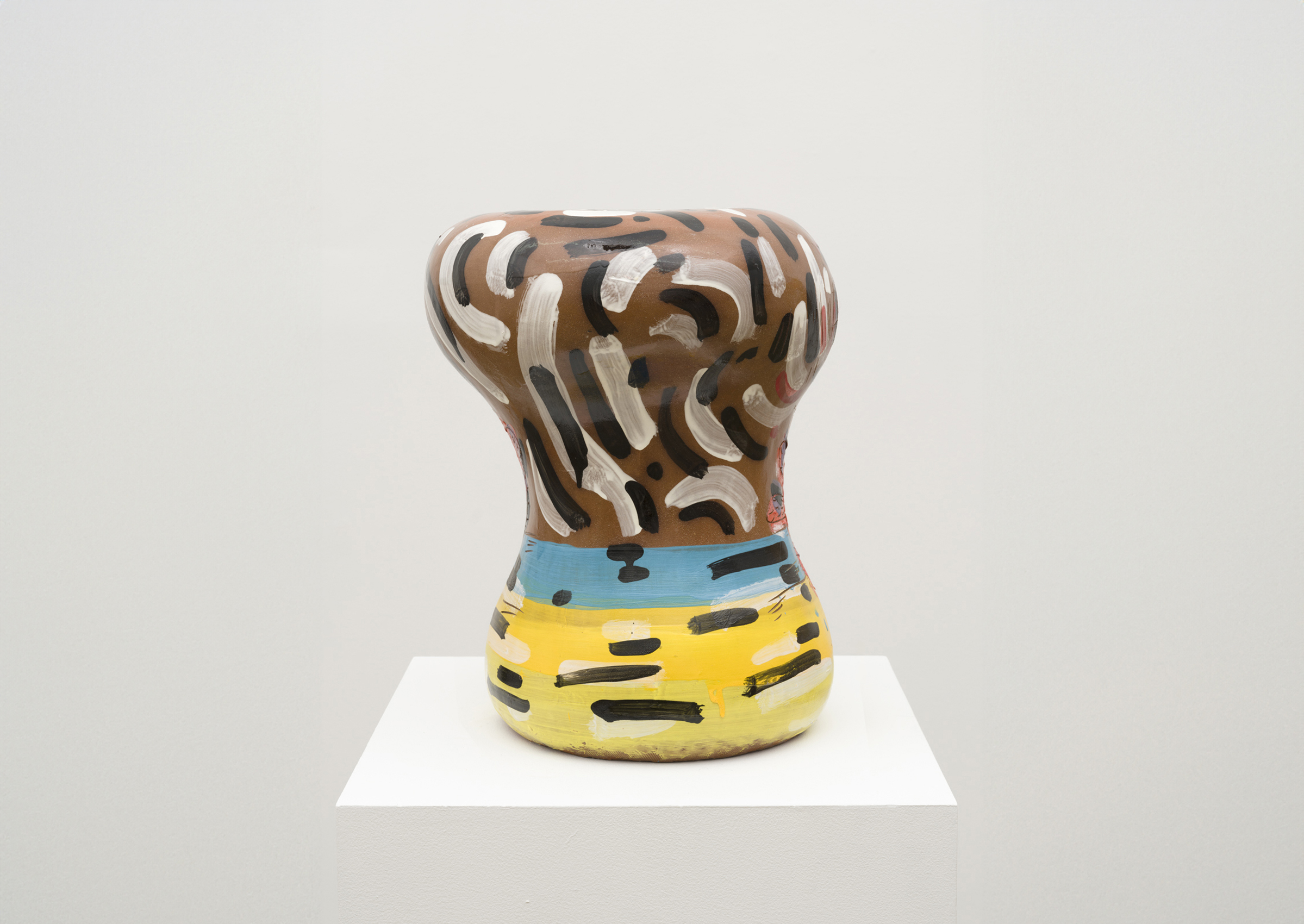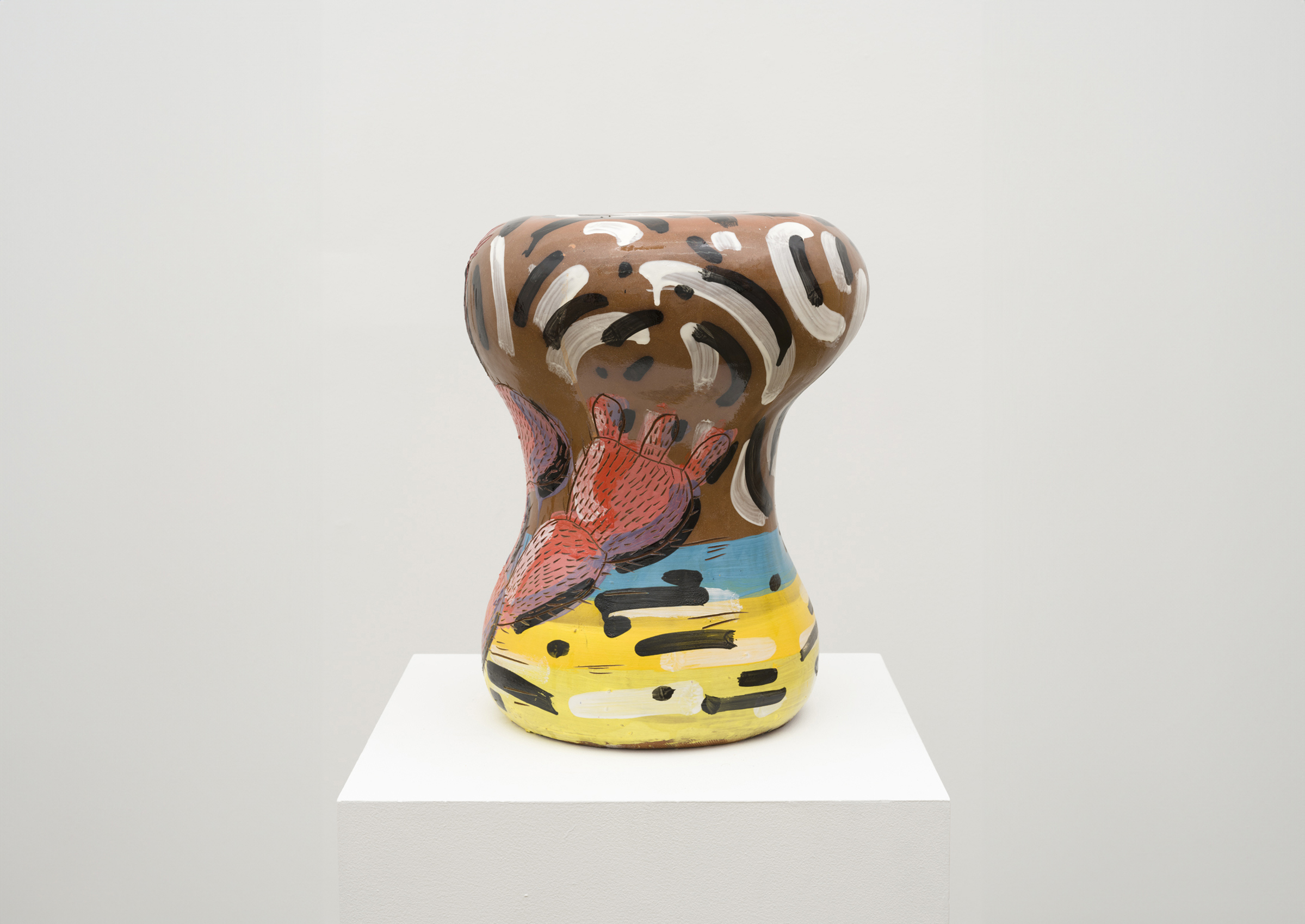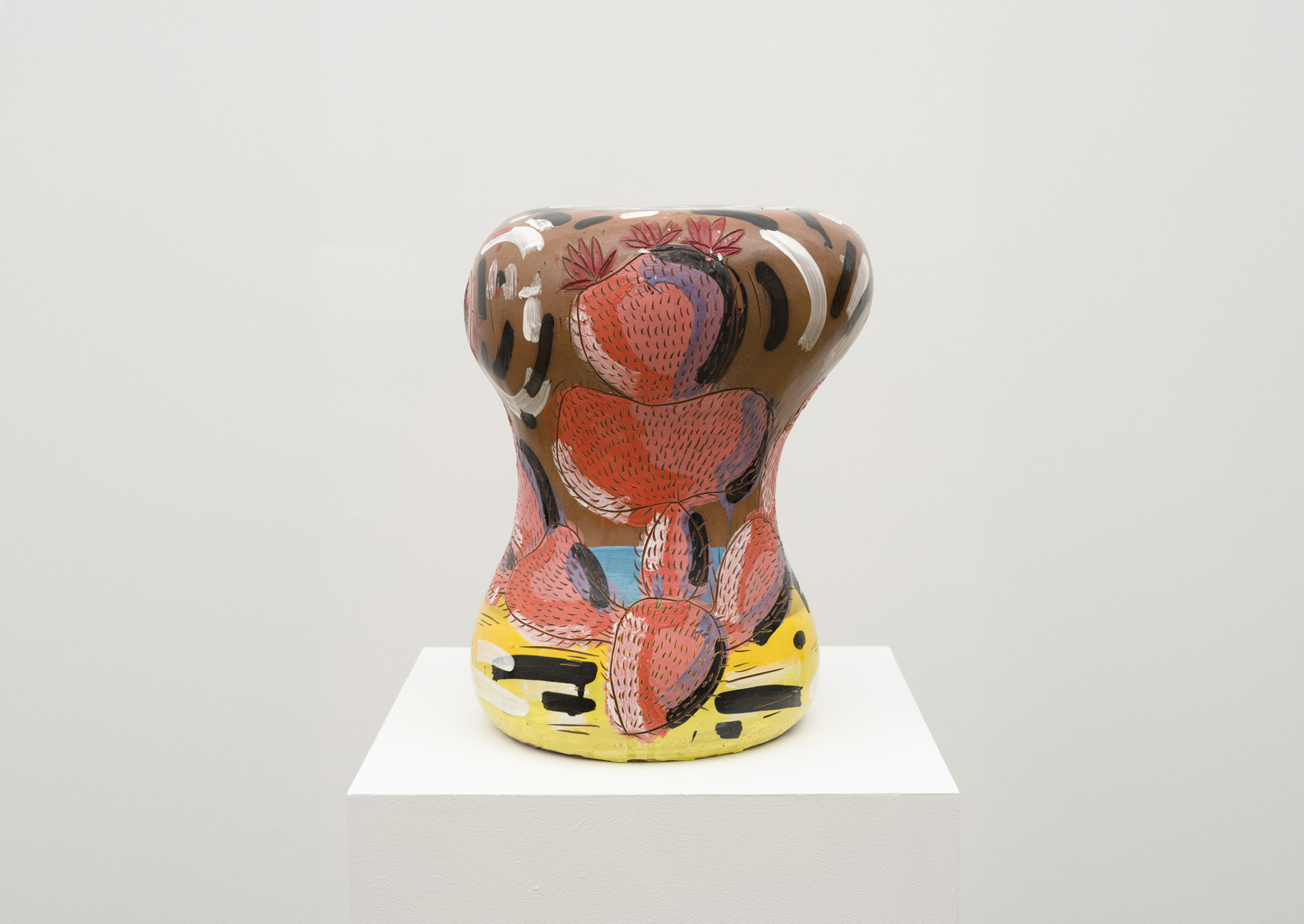 The painterly glaze of Adam Miller’s Cactus Stools provides a spontaneous counterpoint to the physicality of his ceramic forms. Balancing gesture against a materially rich substrate, these works function as living images, using the visibility of Miller’s hand and the inexplicable ceramic contour to suggest an organic sense of movement.