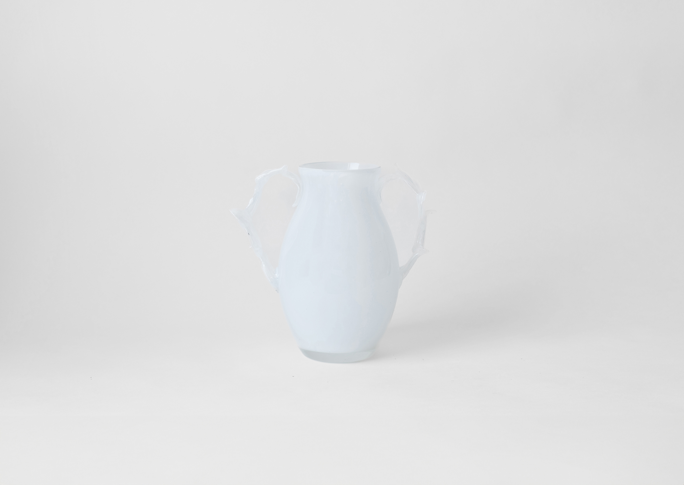 Sophie Lou Jacobsen brings a meticulous focus on detail and color to her glassware creations. Her hand-blown soda lime glass pieces feature intricately sculpted floral embellishments in an elegant alabaster white hue. She turns ordinary objects into artistic masterpieces through her eponymous home goods line. Inspired by the bold forms of the 1980s, her work pays tribute to the era’s aesthetics while maintaining a contemporary appeal.