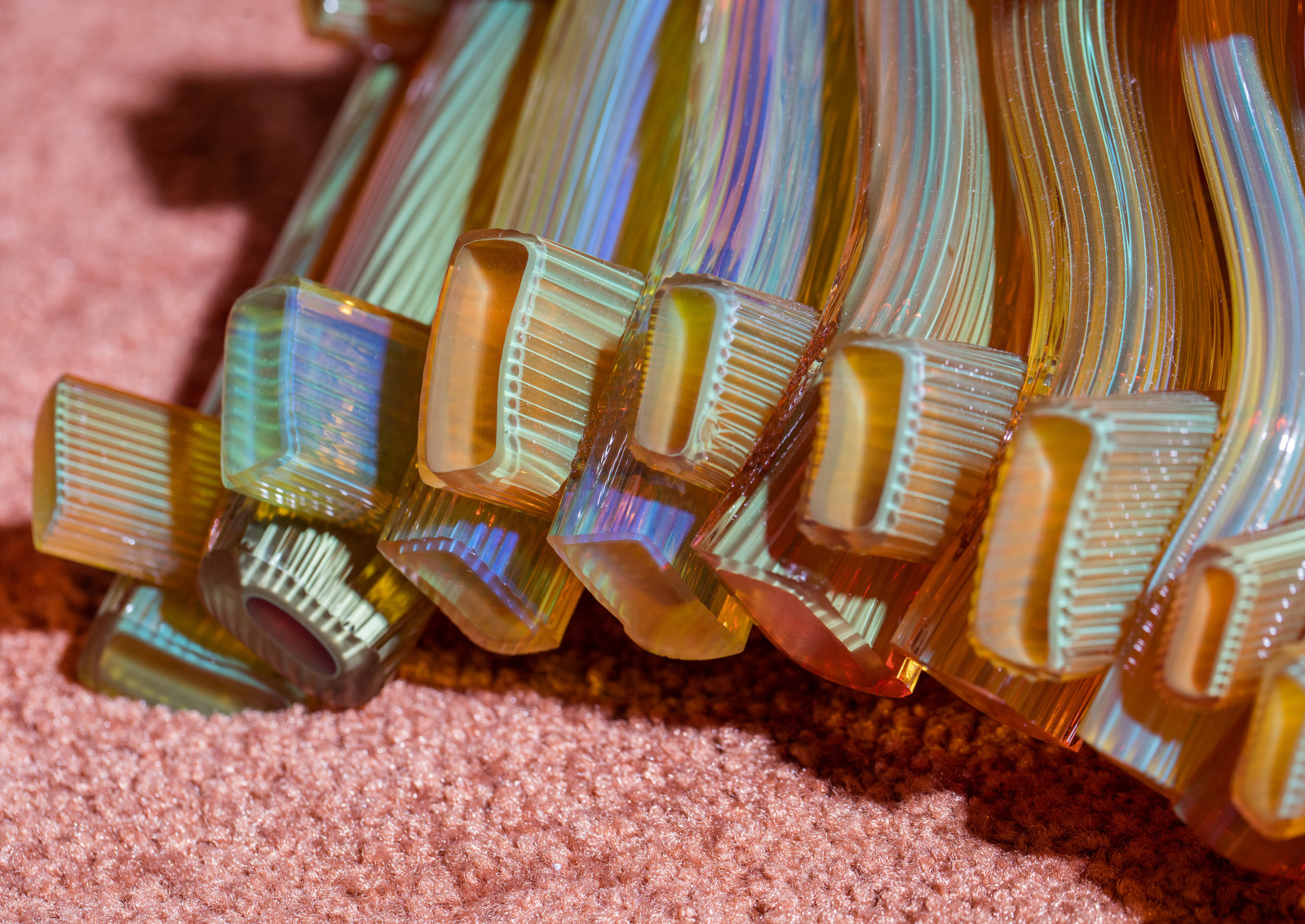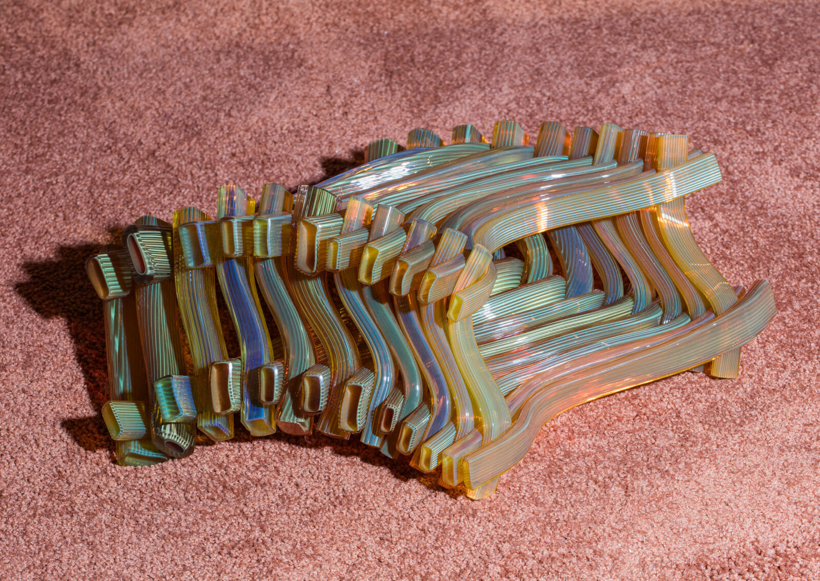 Mane by Seattle-based glass artist John Hogan reflects his celebrated mastery of material and optics. Hand-shaped with precision, this collectible glass artwork refracts and transforms light, creating an evolving visual presence that enhances any interior or design collection.