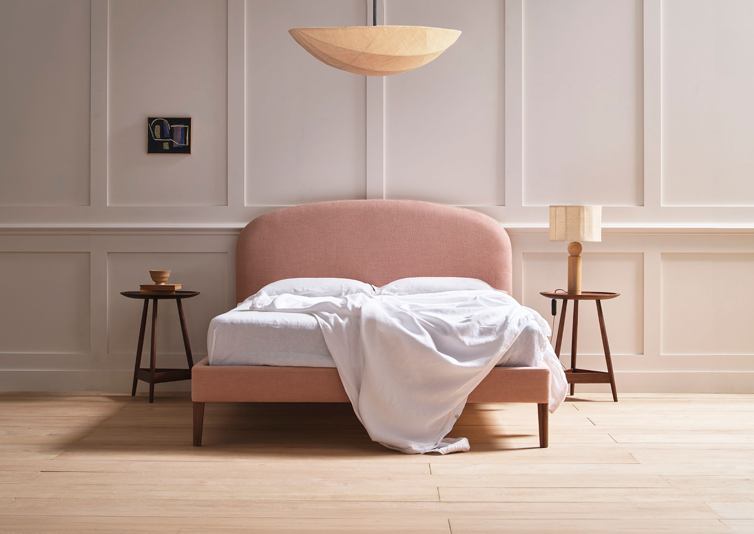 Laure’s curved headboard takes inspiration from the form of a French arch, rendered contemporary and clean. It's fully upholstered, tailored frame sits flat against the wall, maximising floor space and embracing comfort and support.