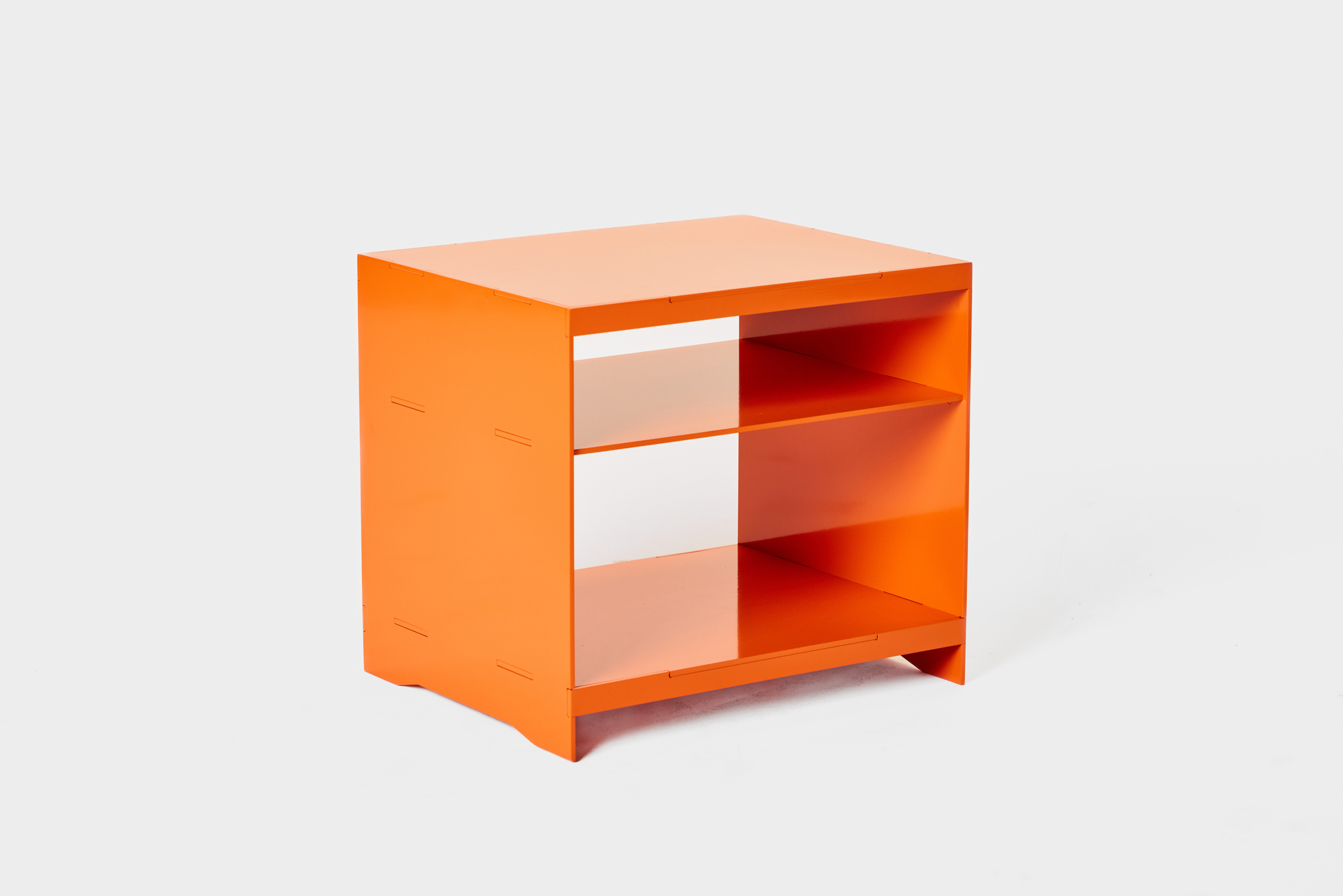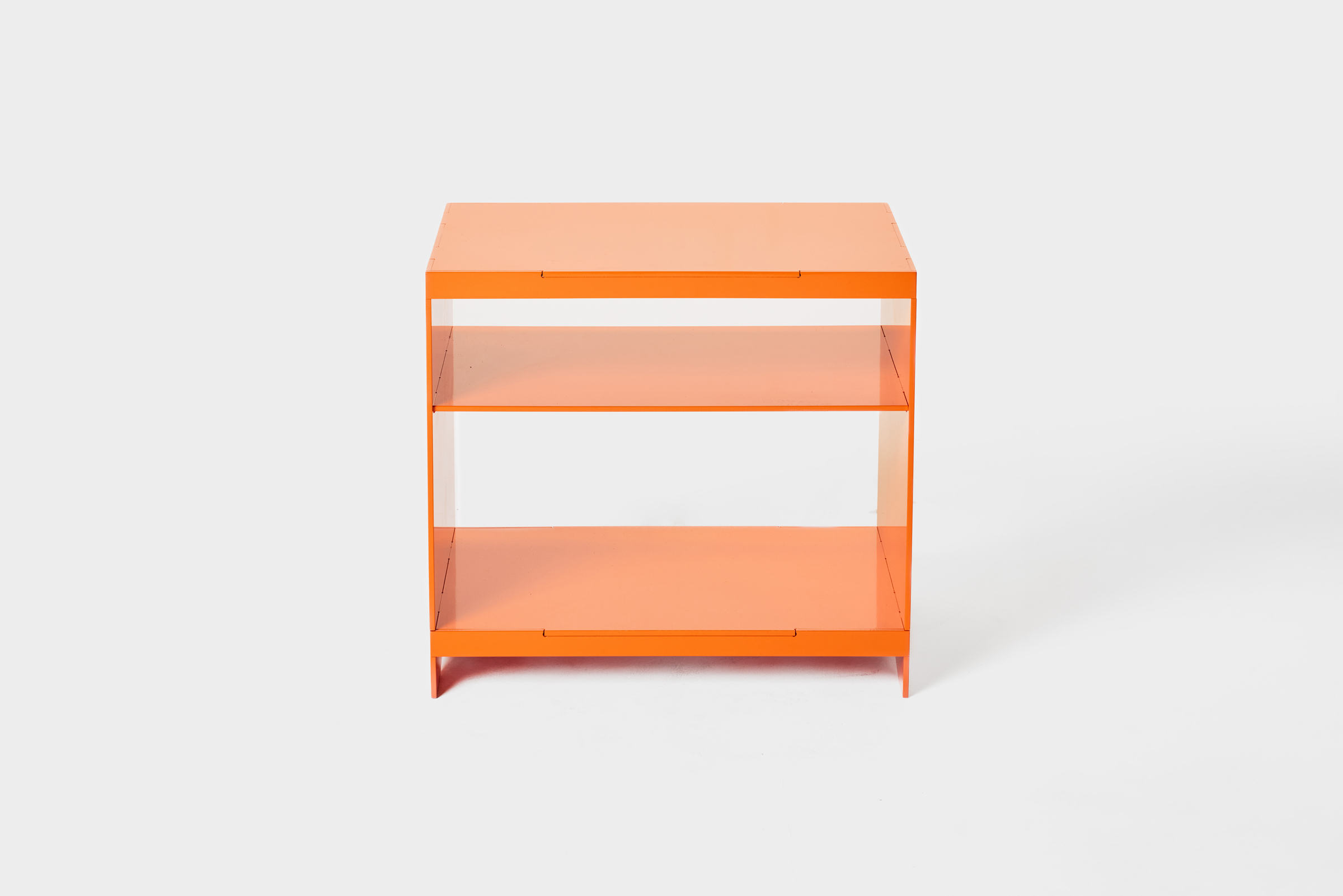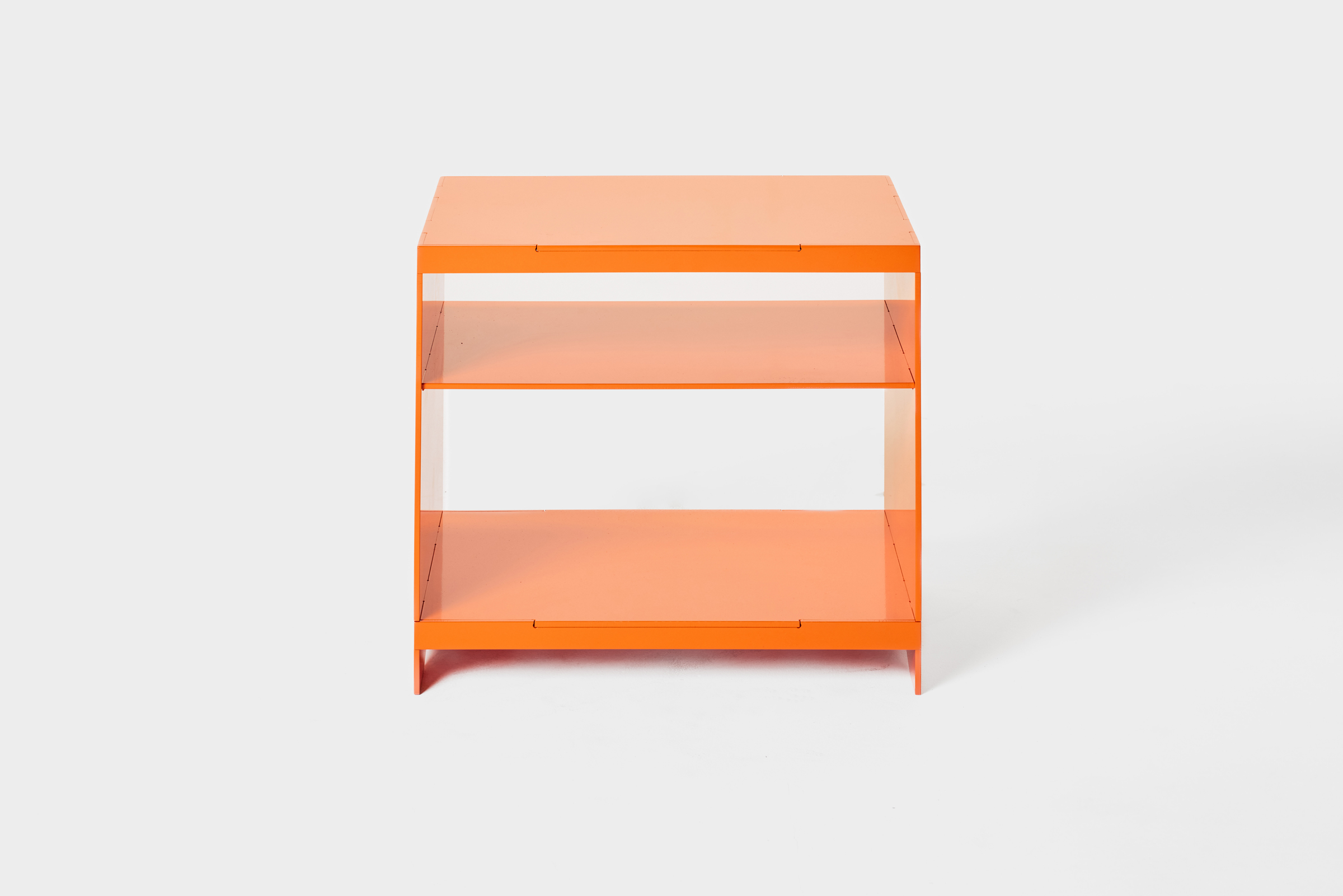 This bedside table is constructed from precision-cut 1/4” aluminum. Powder-coated to produce a durable and weather-resistant finish. The table can be finished in a large array of powder coat finishes.