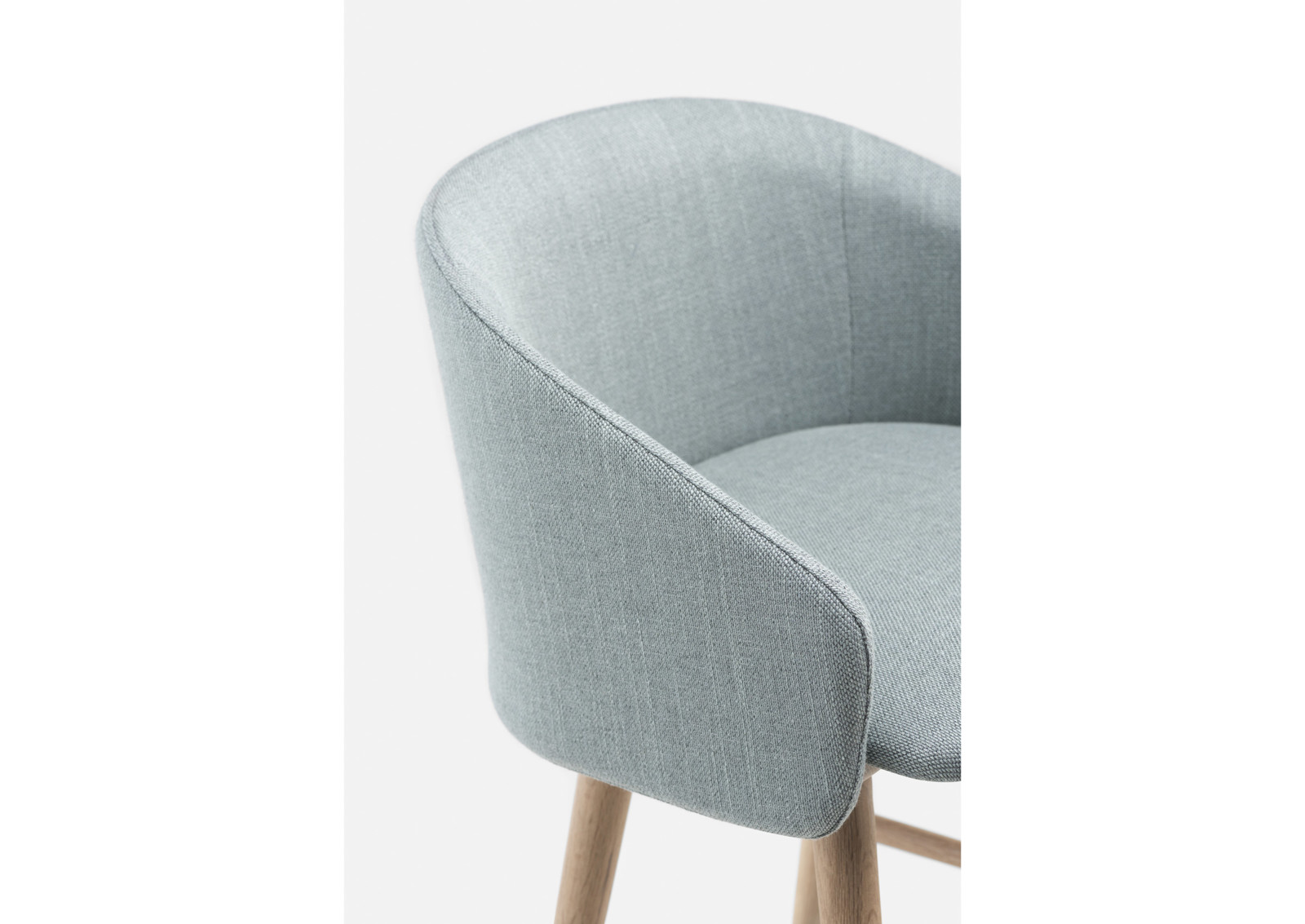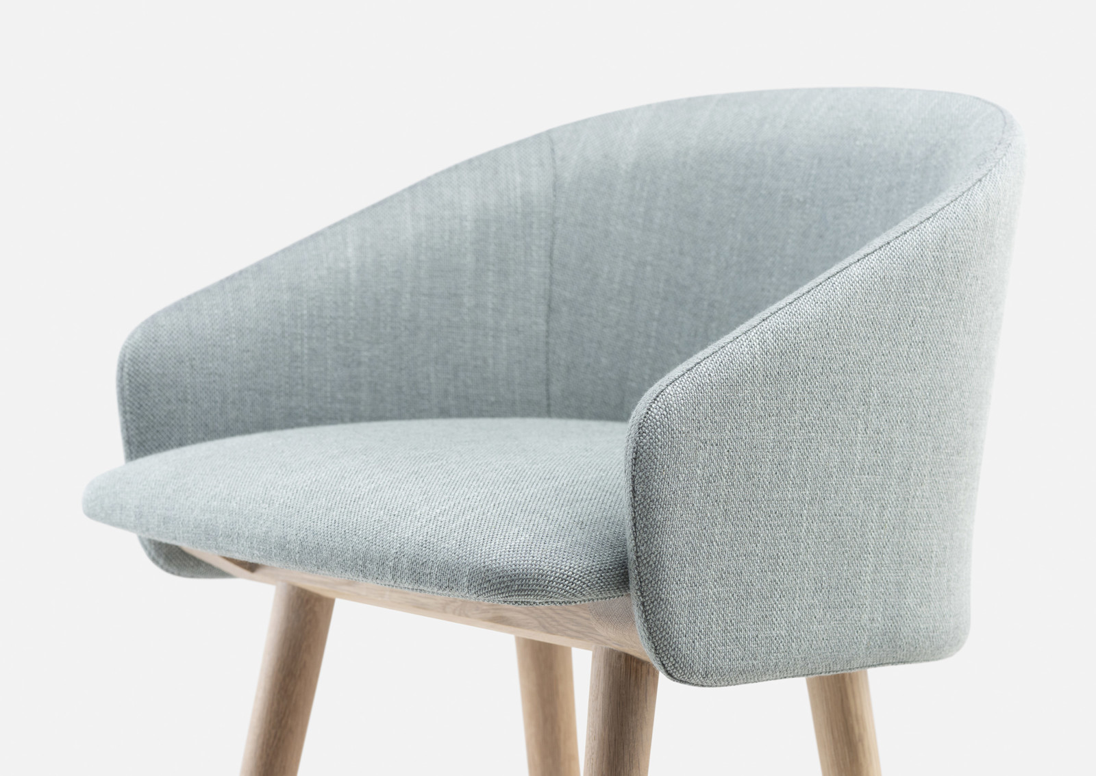 Saia is a family of upholstered shell seating for residential or contract use. The upholstery was designed to be made in two parts to create visual levity and to allow the seating to be upholstered in a single material or a combination of two. The proportions were carefully considered for ergonomics, beauty, and performance in a variety of environments.