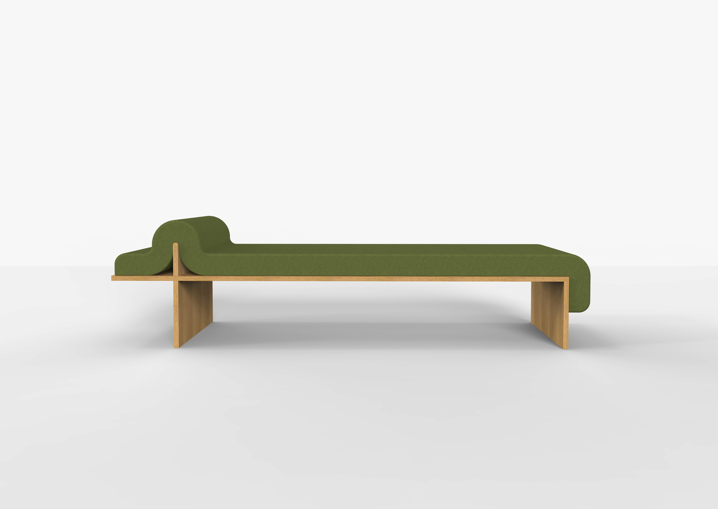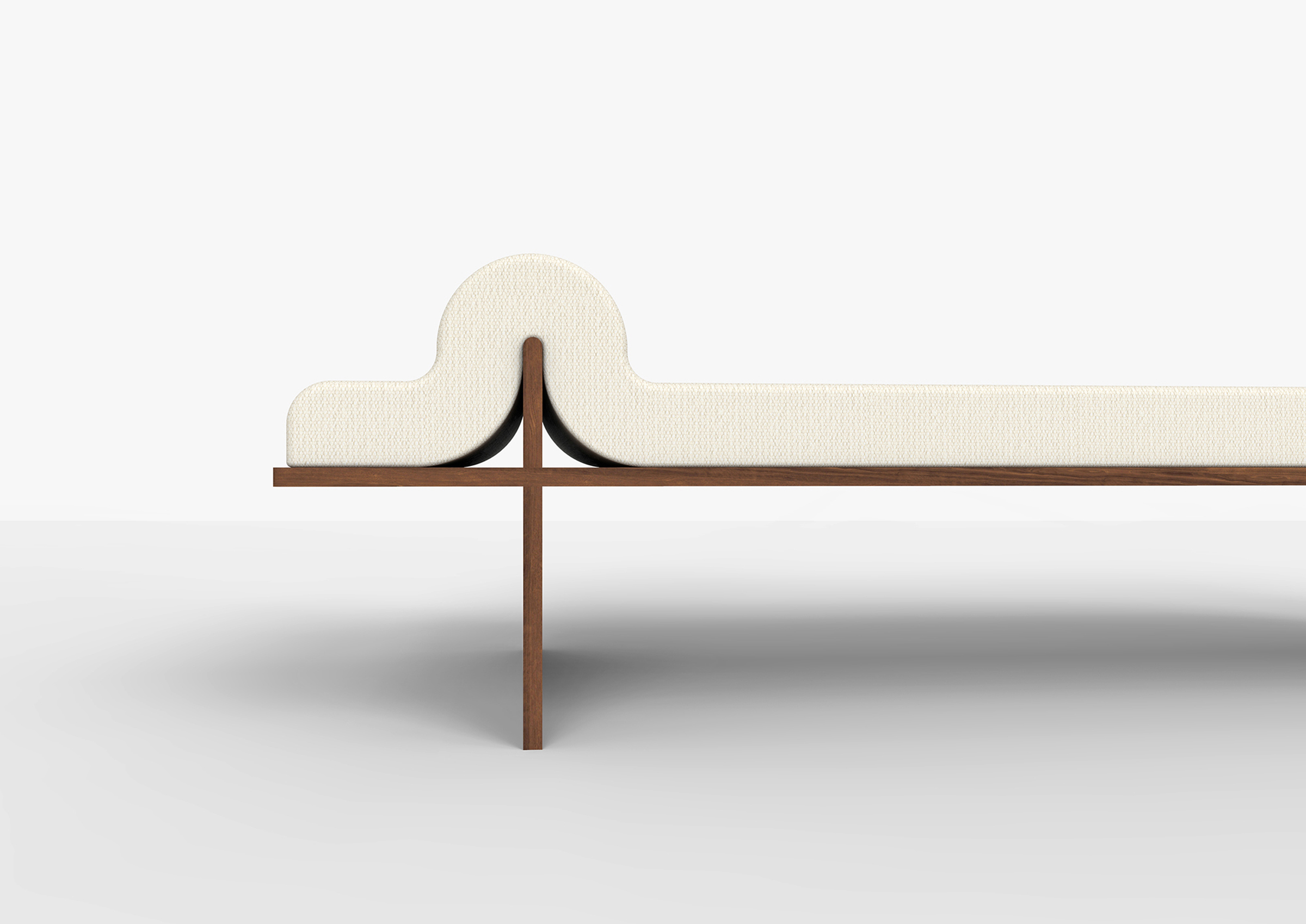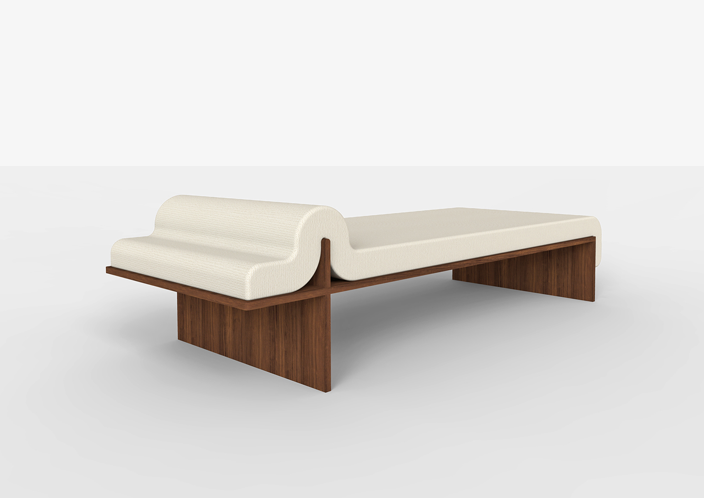 An upholstered cushion softly wraps itself around a solid wood frame, offering a perfect little bump rest for your head or arm. Ideal for melting into a lazy afternoon. Part of the Melt Collection; a continued exploration of reality vs. perception through material and form.