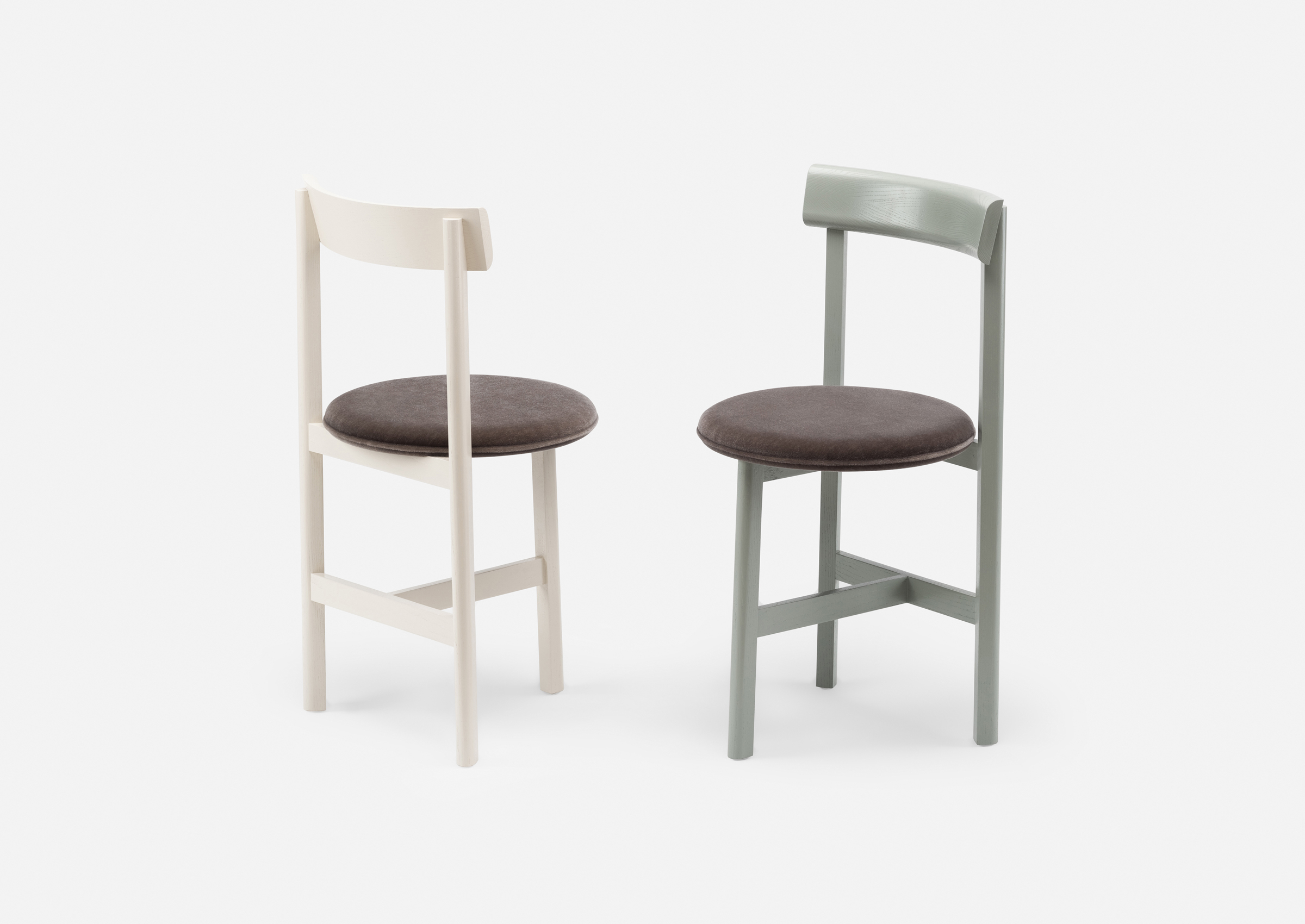 Petit, a compact dining chair in solid wood with an upholstered seat, was specially designed by Neri & Hu as part of their interior design for Papi restaurant, in Paris. The chair, available with 3 or 4 legs, addresses the needs of smaller spaces or makes room for more guests around a table.
