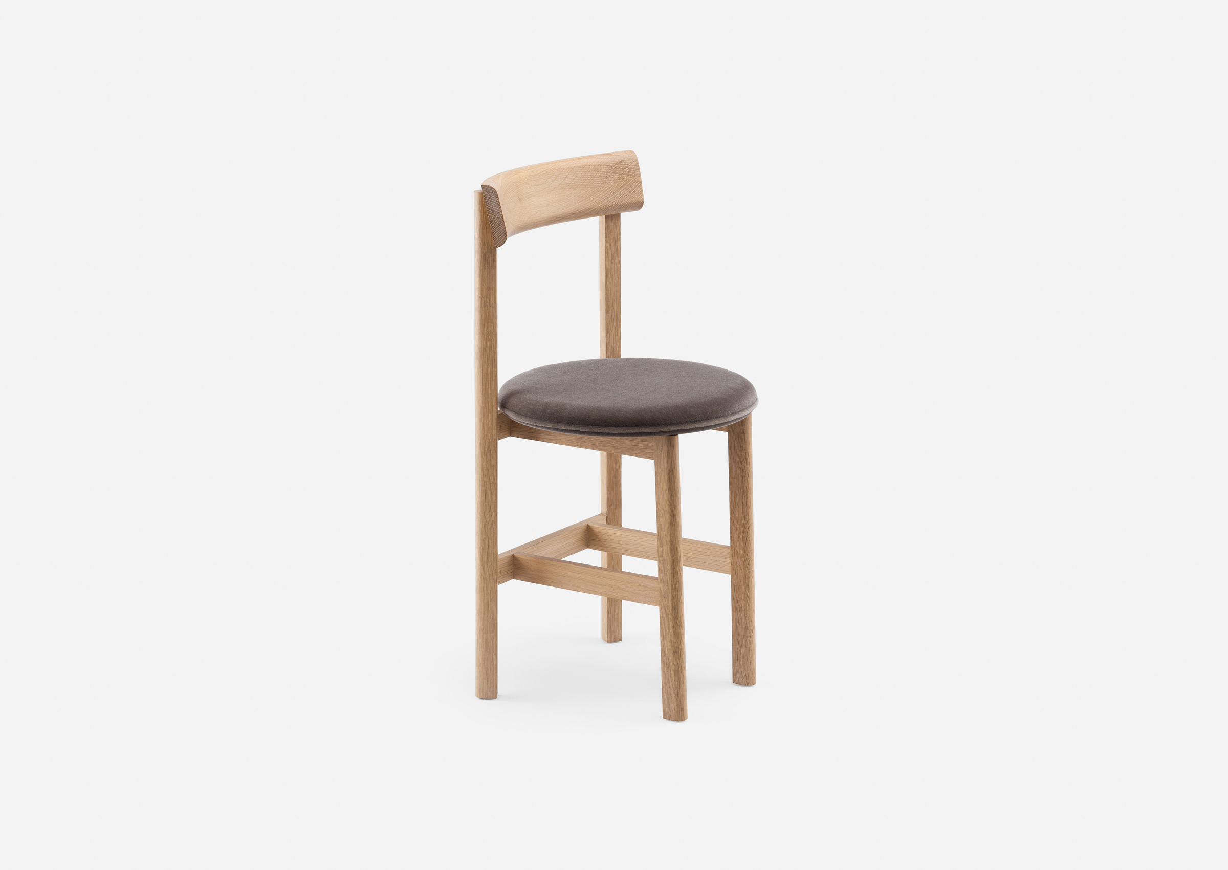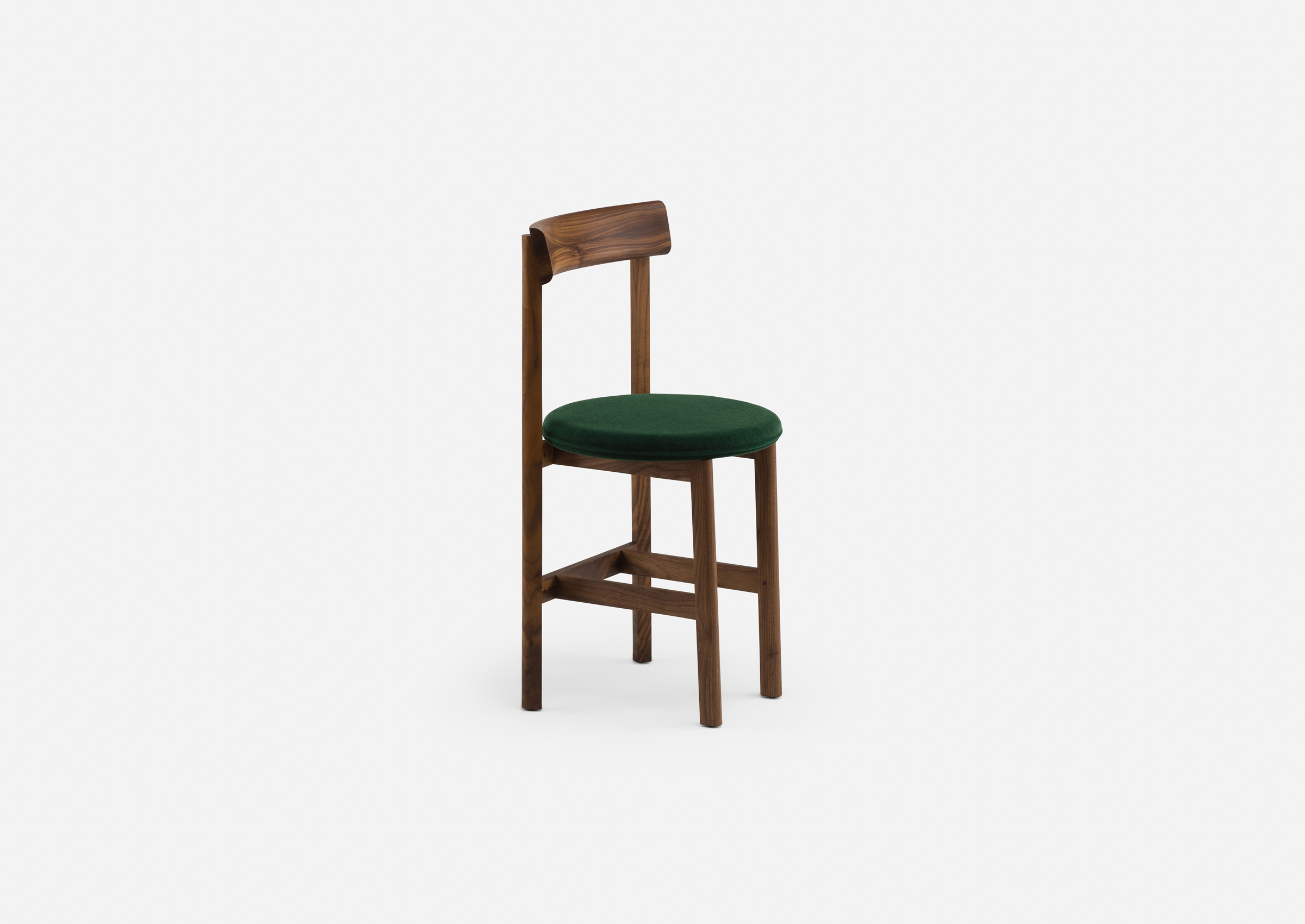 Petit, a compact dining chair in solid wood with an upholstered seat, was specially designed by Neri & Hu as part of their interior design for Papi restaurant, Paris. The chair, available with 3 or 4 legs, addresses the needs of smaller spaces or making room for more guests around a table.