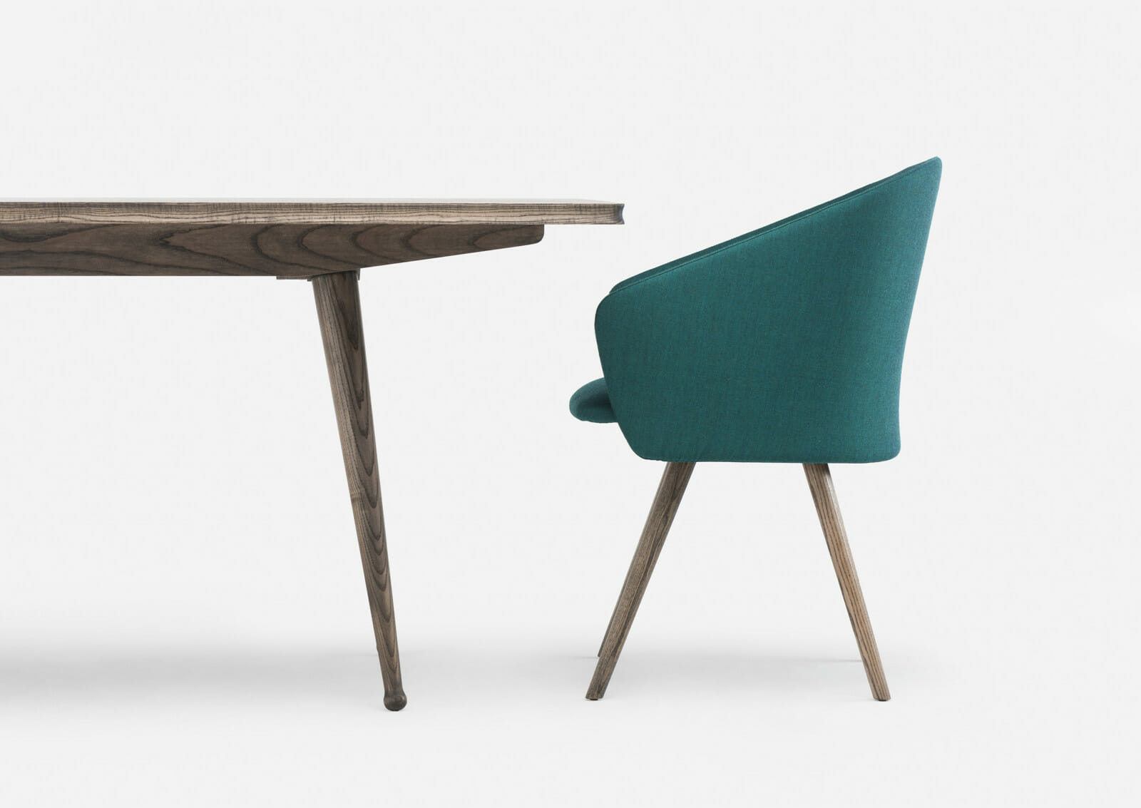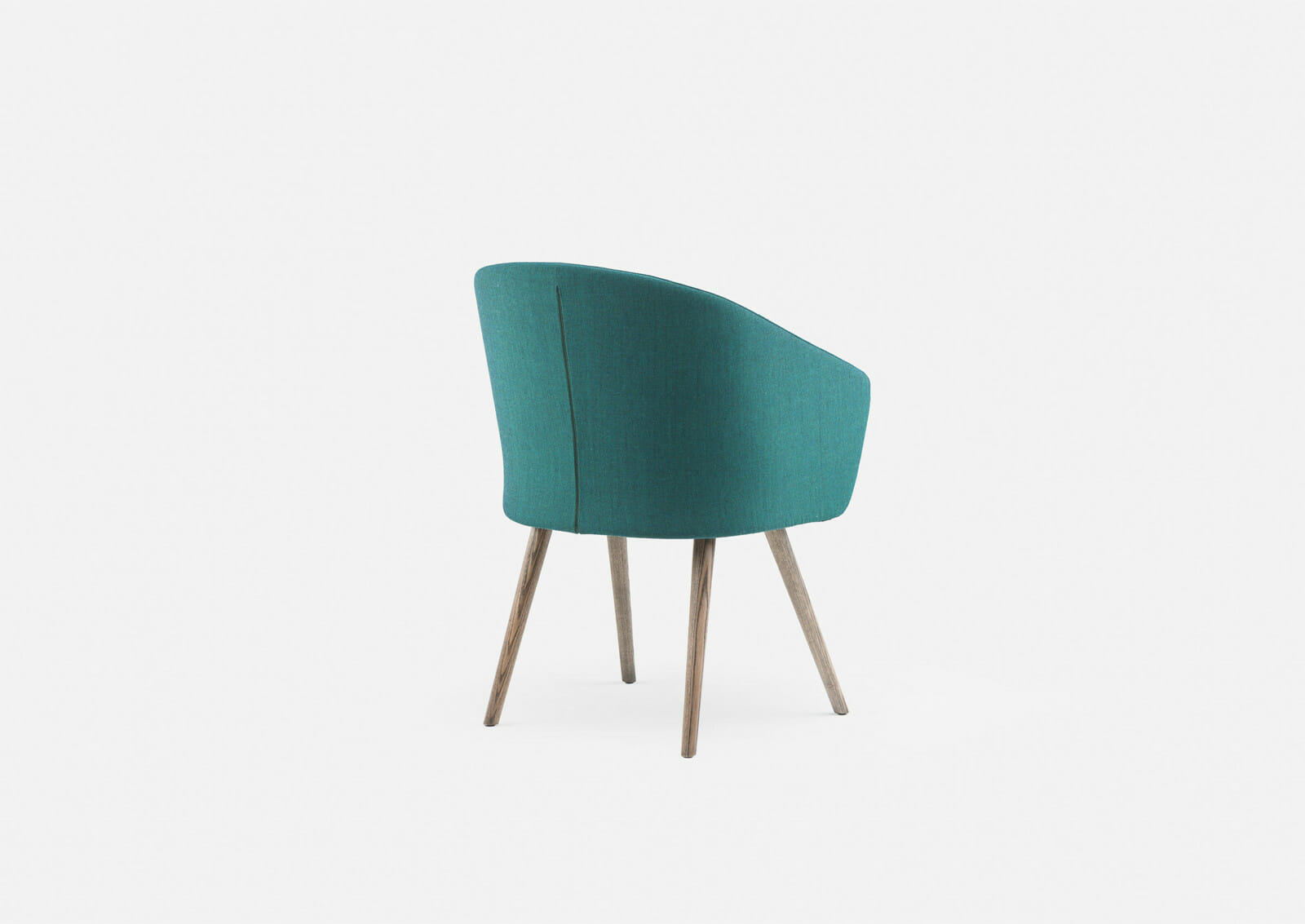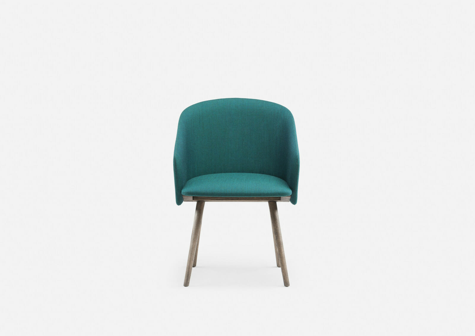 Matthew Hilton designs furniture to last a lifetime, choosing robust materials, and applying meticulous attention to detail for beauty from every angle. Saia is an upholstered shell chair with a wooden leg. Designed for contract use, the pared-down design is made of few components, while maximizing comfort and durability. The proportions were carefully considered for ergonomics, beauty, and performance in a variety of environments.