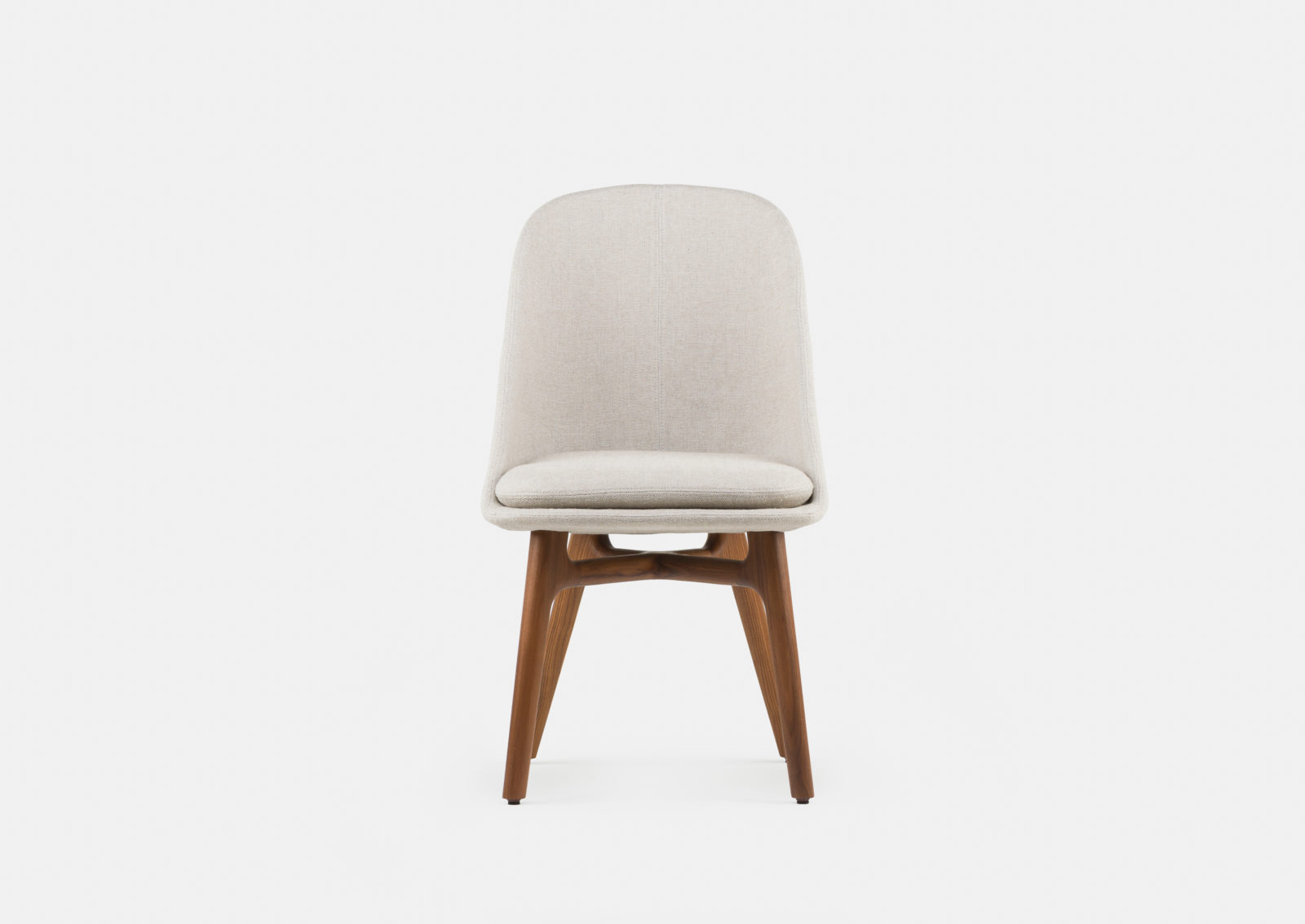 Inspired by the Eames Shell Chair, the Solo Chair is an updated version that transforms the early industrial look of the Eames iconic chair into a sophisticated, comfortable chair that is suitable both in domestic and commercial settings. Solo chair has an upholstered shell that hugs the sitting body to create a microcosmic universe for the person, becoming an object of shelter and refuge, where the person can be “solo” and undisturbed while being hugged in this position. Designed by Neri&Hu and manufactured by De La Espada for the Neri&Hu brand.