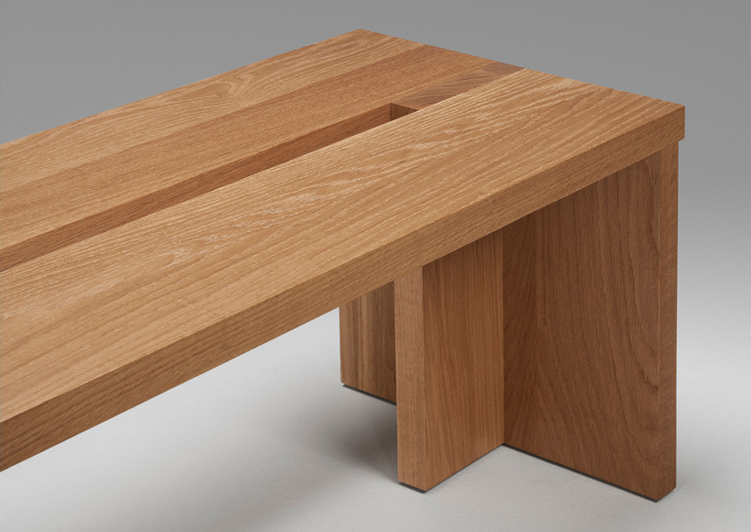The Grange bench is one of a series of pieces originally designed by Post Company for Inness, a Hudson Valley country resort by tastemaker Taavo Somer that takes all of its cues from the surrounding landscape. The orthogonal passing planes and oversized members of Grange are an ode to a simple method of building, humble and grounded.
