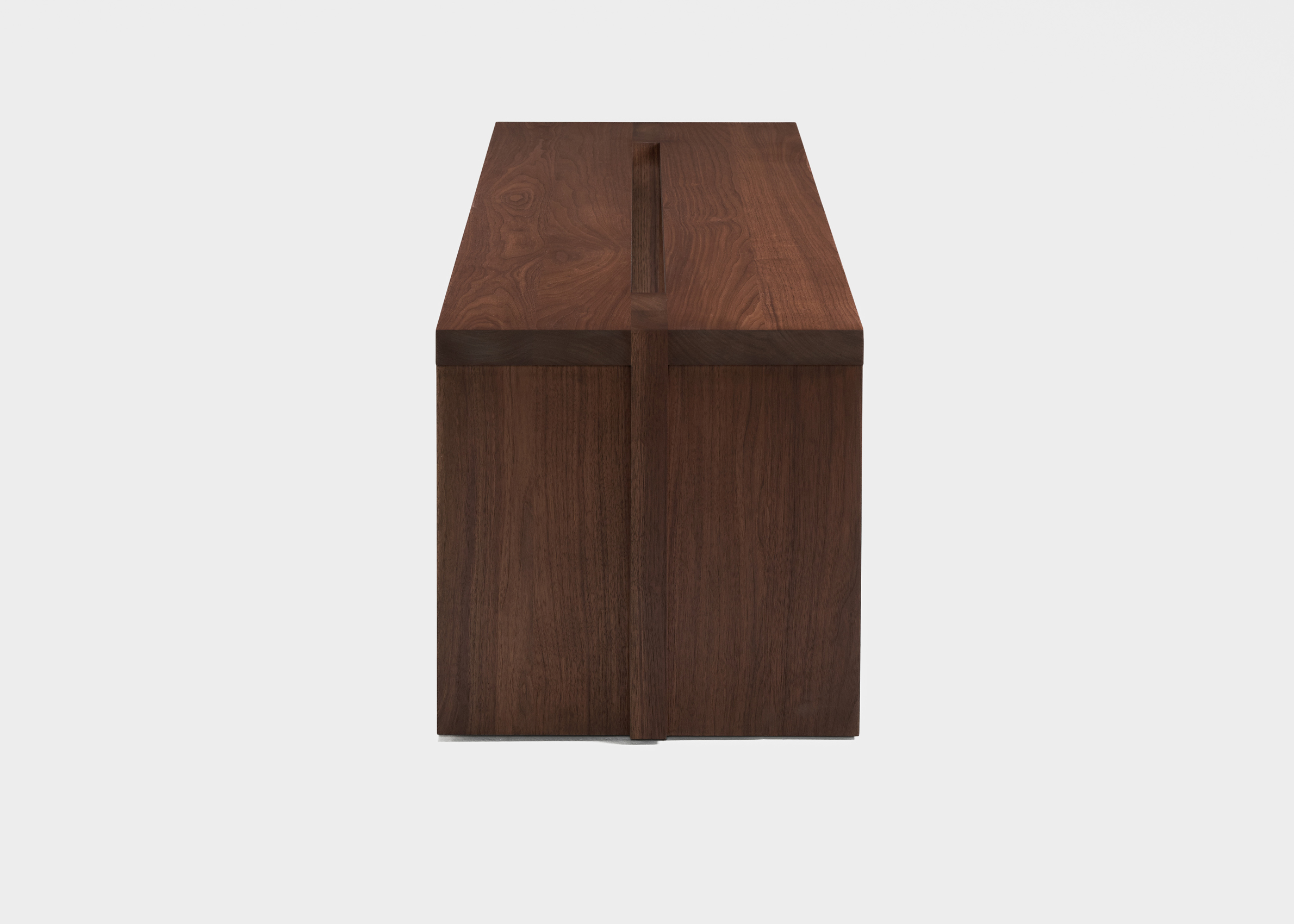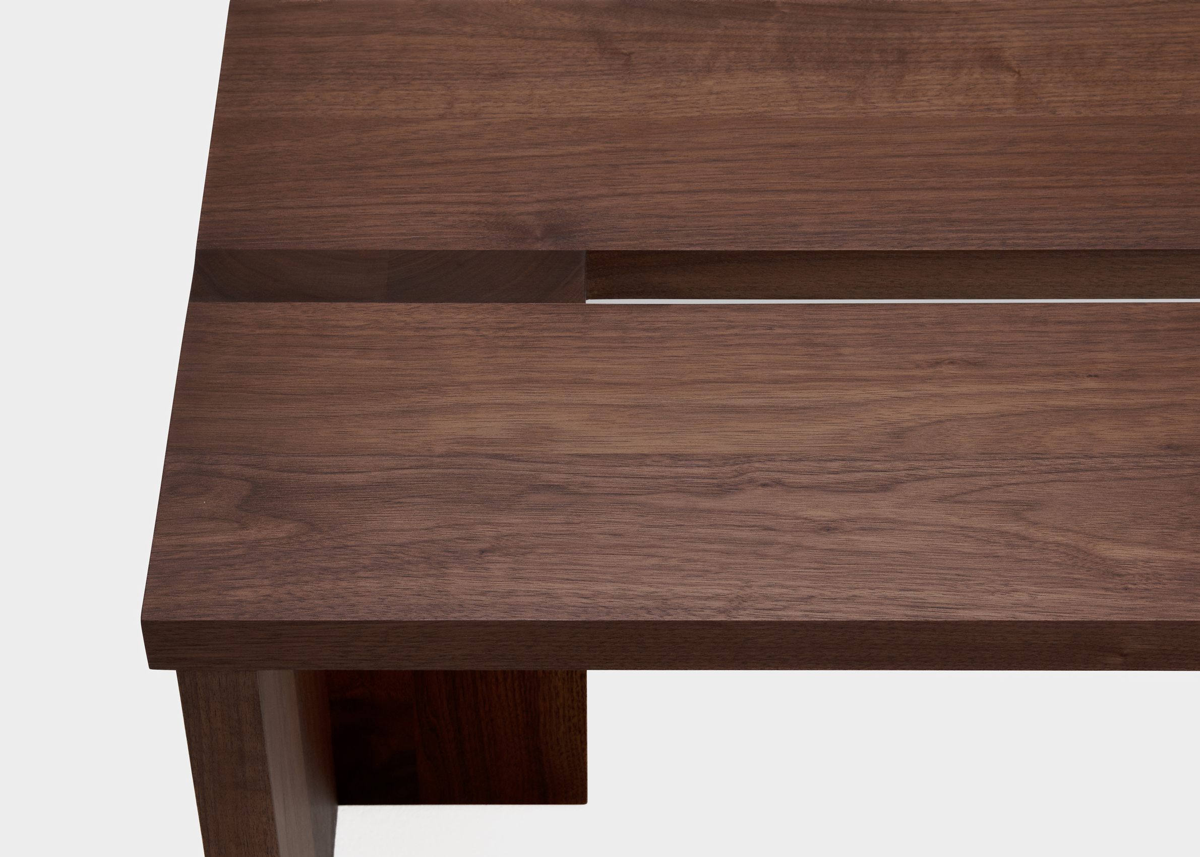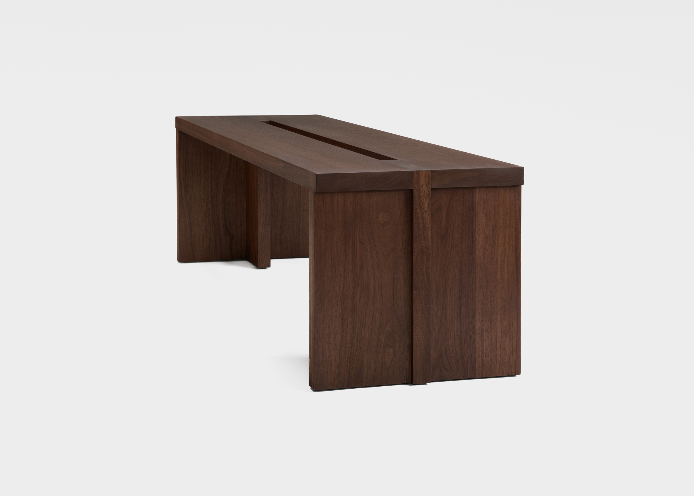 The Grange bench is one of a series of pieces originally designed by Post Company for Inness, a Hudson Valley country resort by tastemaker Taavo Somer that takes all of its cues from the surrounding landscape. The orthogonal passing planes and oversized members of Grange are an ode to a simple method of building, humble and grounded.