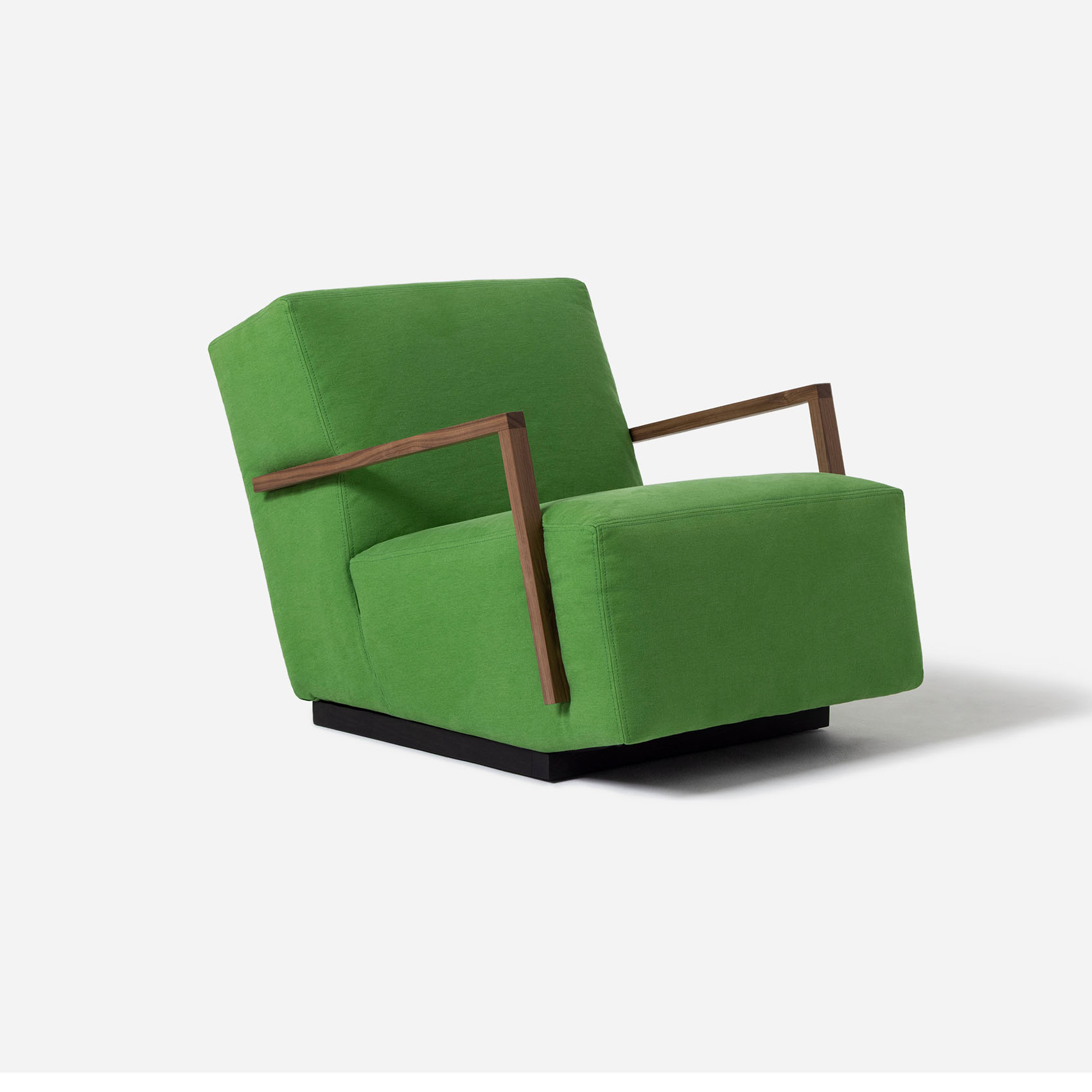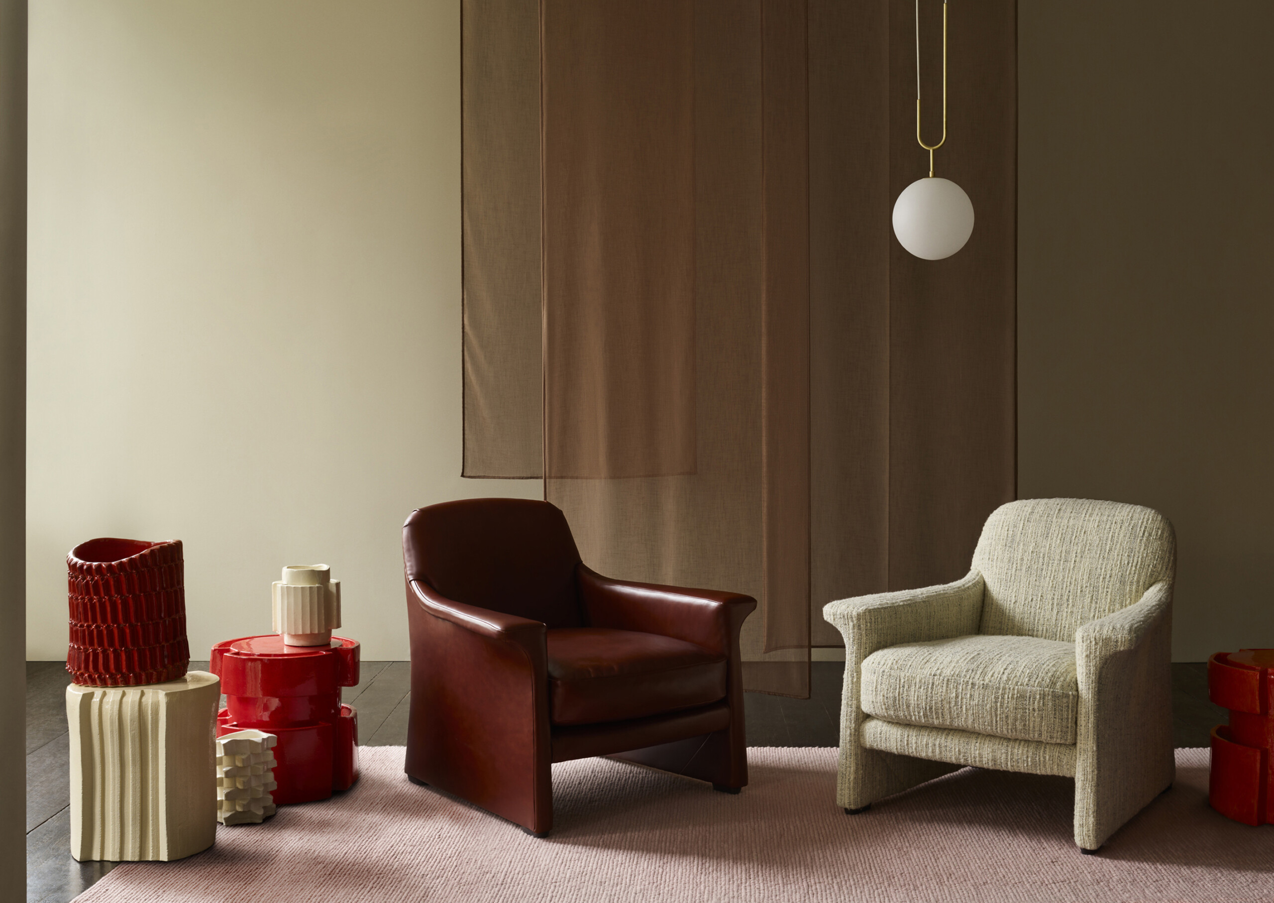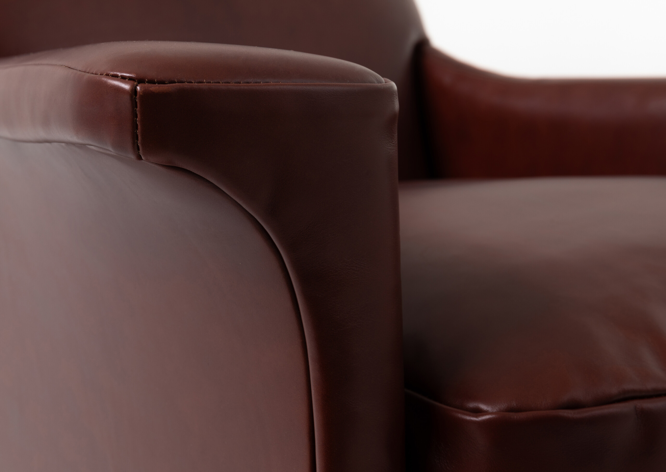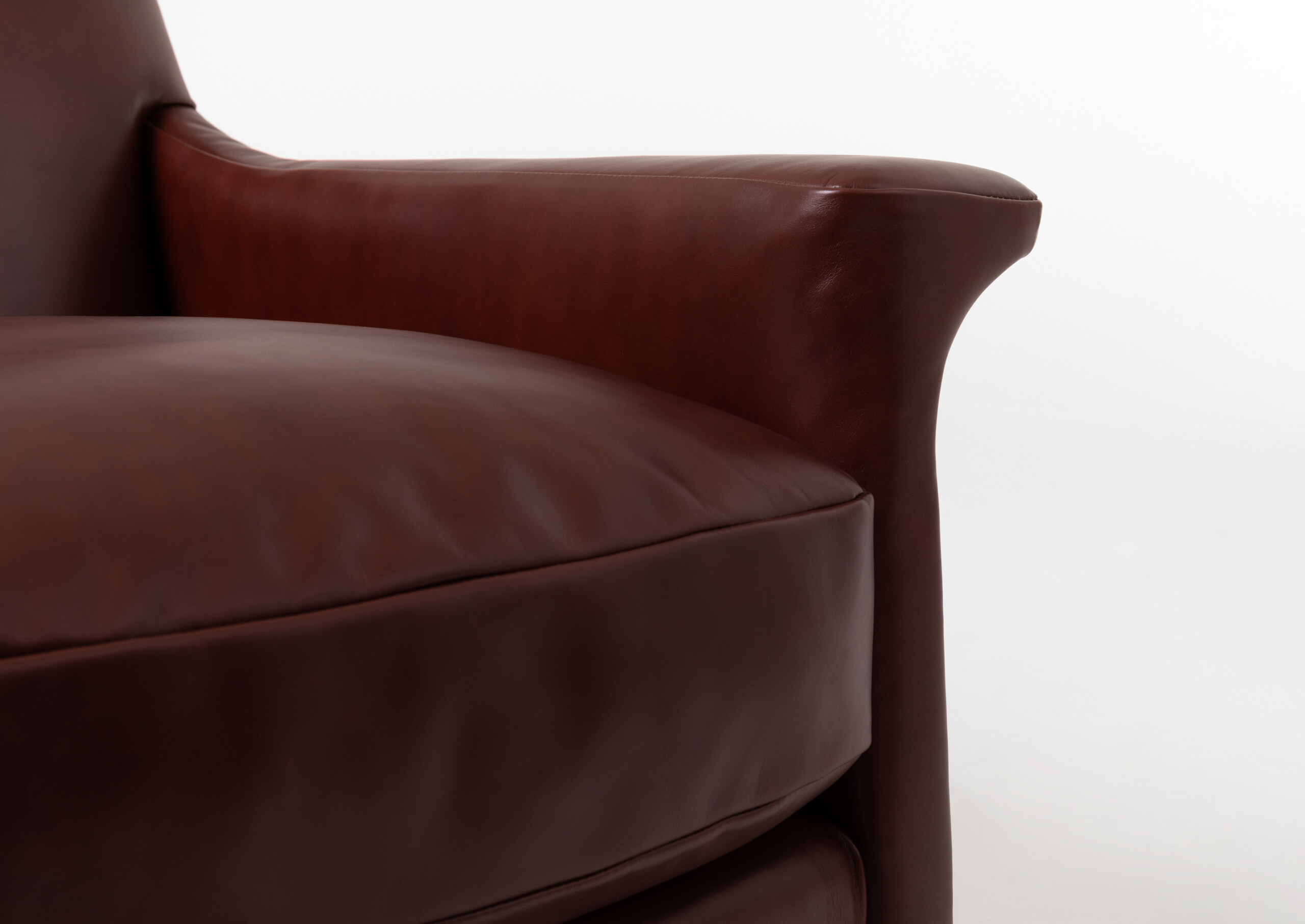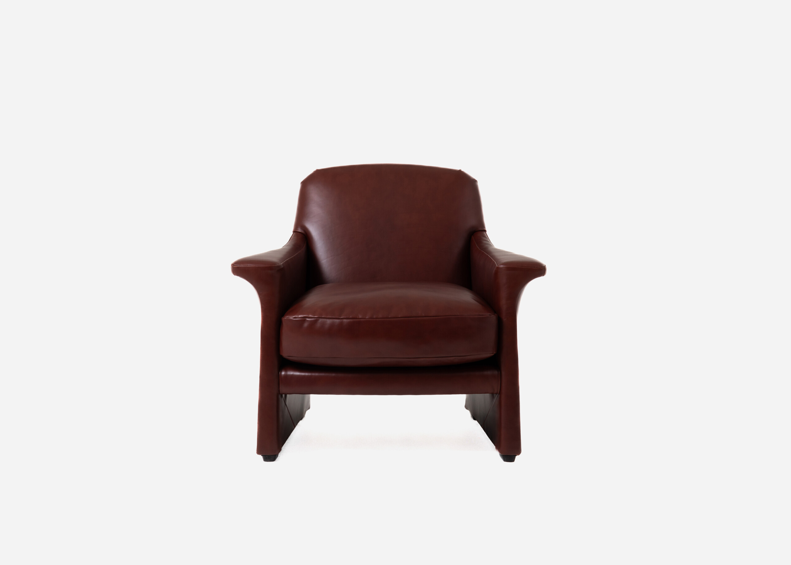 An authoritative armchair design that balances comfort with a delicate hand-drawn aesthetic. With good proportions to cradle the human frame, generous in width. This is a cultivated chair, assured in its form, with curves and elongated lines that display purposeful self-control.