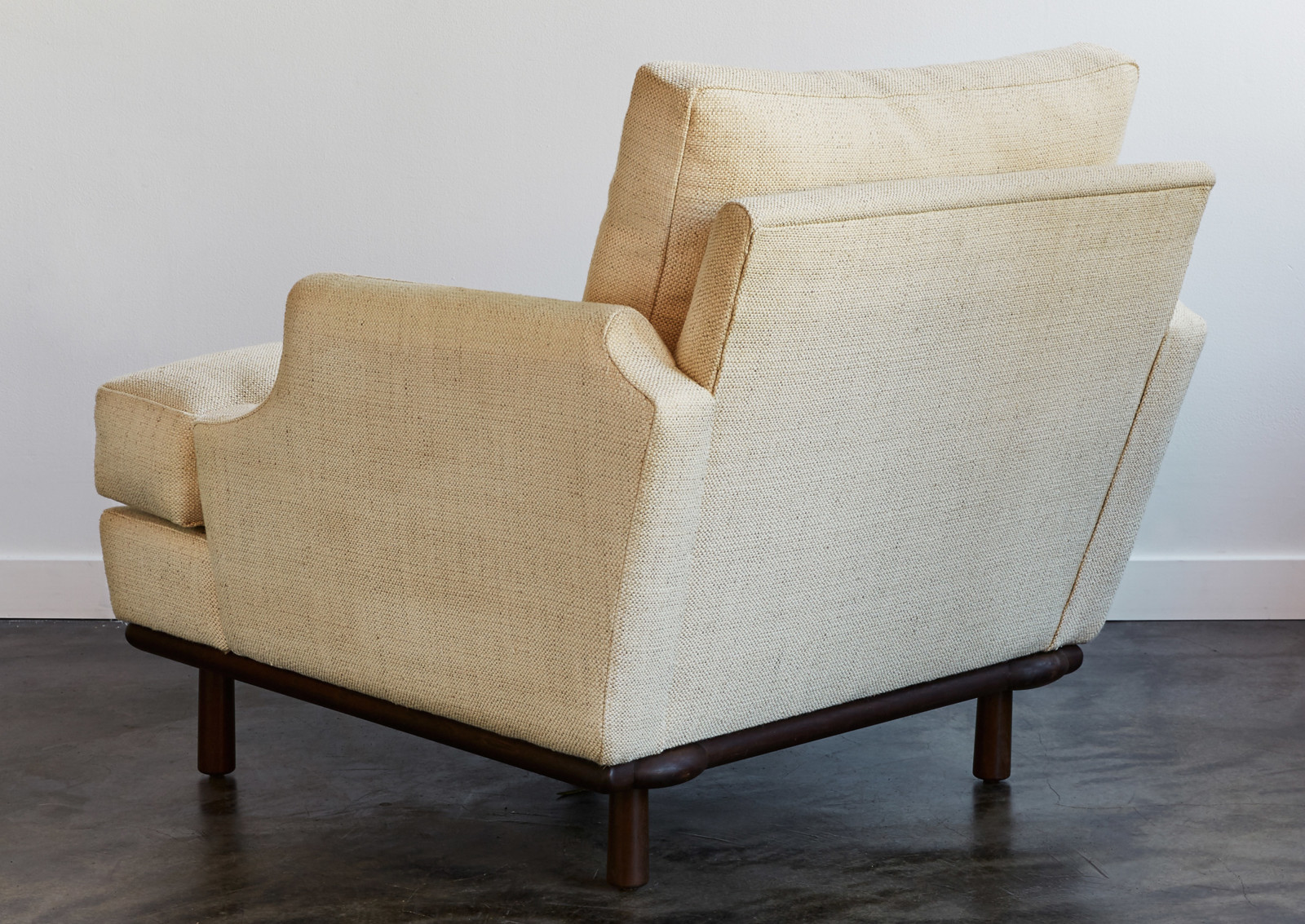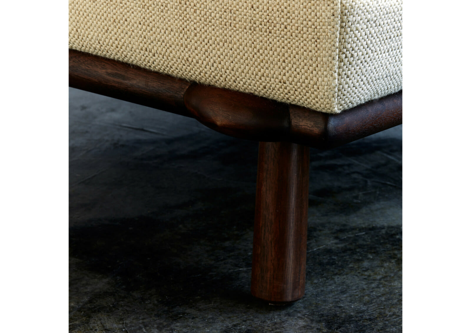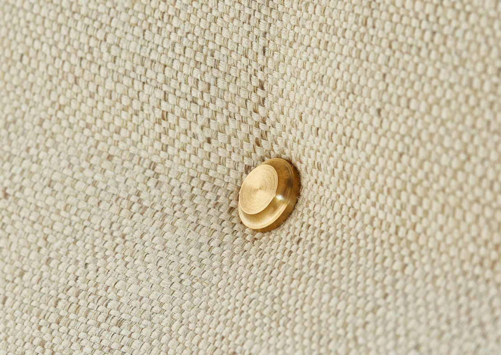 Jason Miller combines the proportions of mid-century sofas with Shaker woodwork and traditional upholstery detailing for The Future Perfect's Kent collection. These disparate influences come together to make a contemporary sofa that feels simple and elegant without being minimalist. The Kent armchair cushion has brass buttons on one side and upholstered buttons on the other side. Please inquire directly for more information on fabric material options.