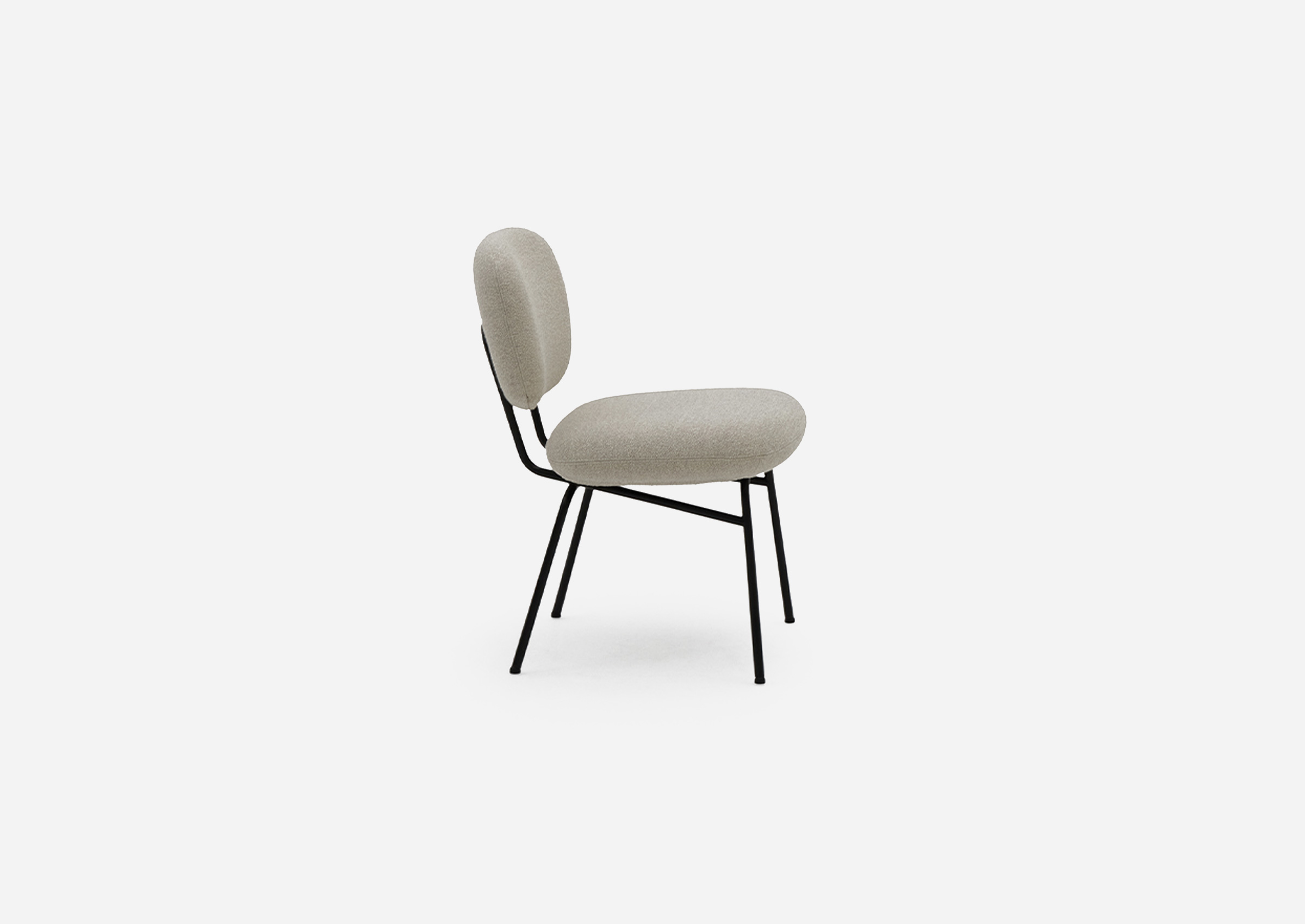 Metal structure. Upholstery structure in molded Polyurethane Foam with a Polyester slipcover. Feet in Black Lacquered Metal and PVC, with changeable supplied felt pads. Fully removable cover, in a range of fabric options