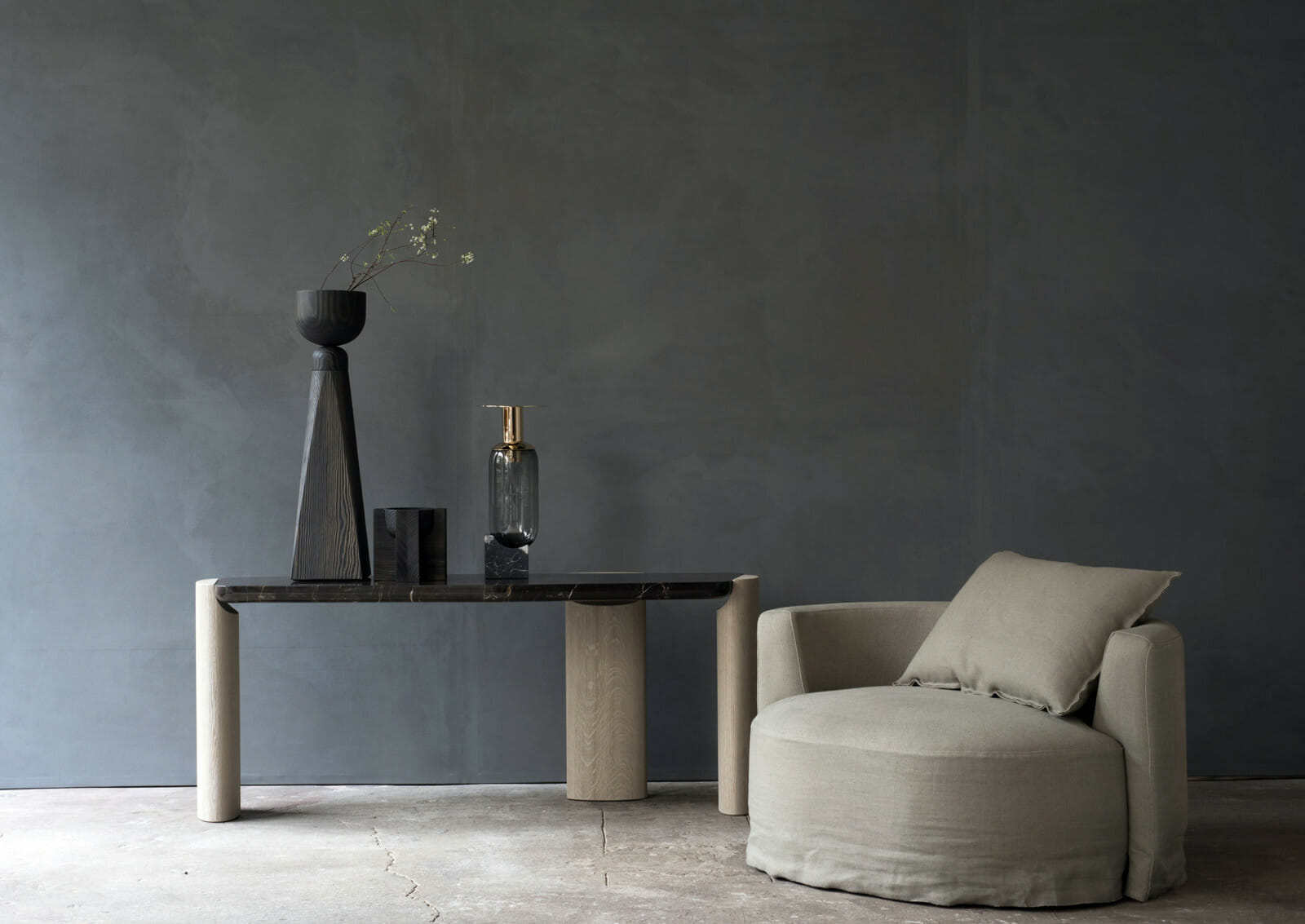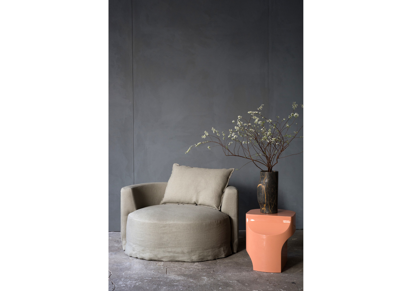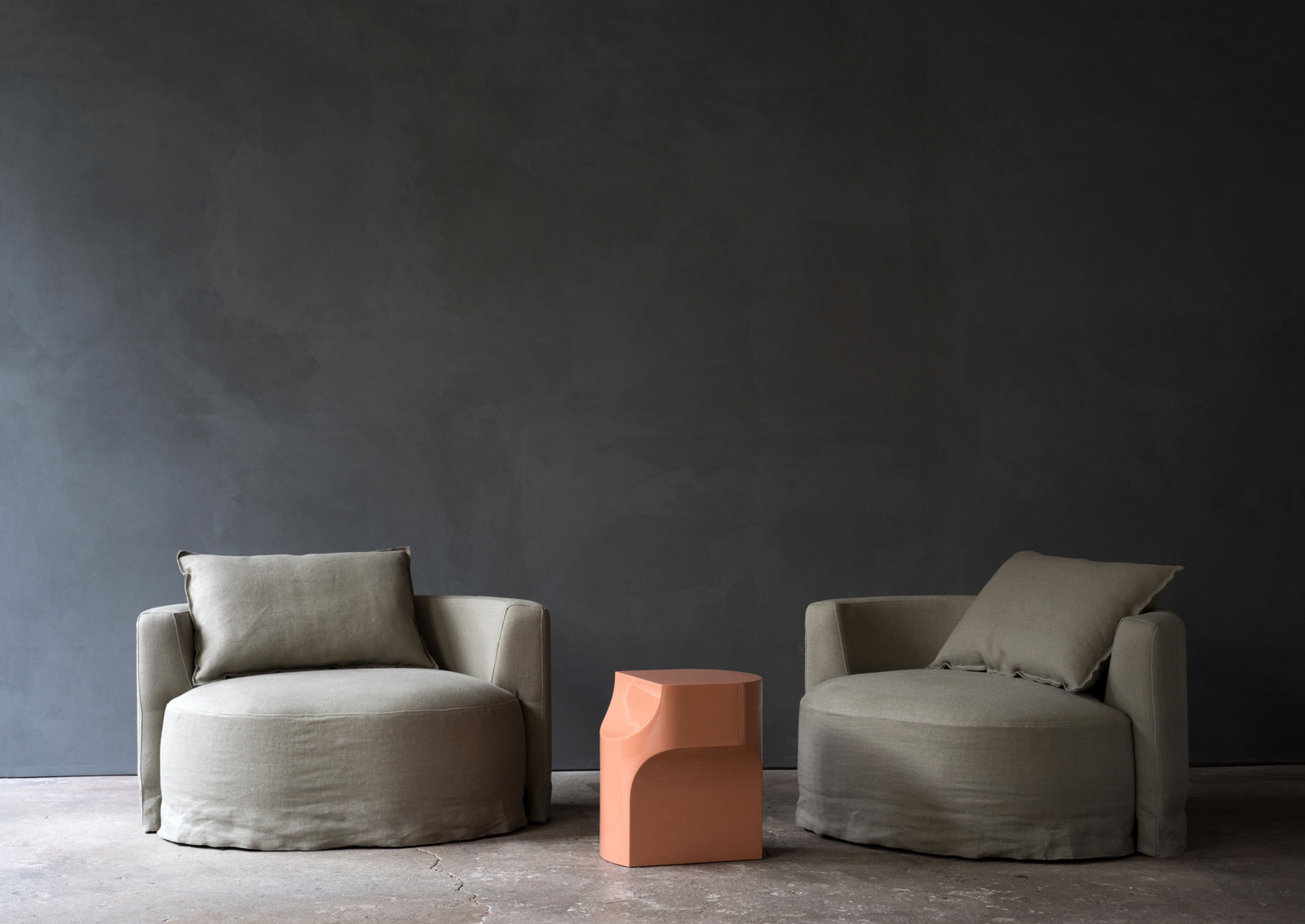 The subtly sculpted lines of the Nos armchair hit the core of Christophe Delcourt's virtual vocabulary. Two plain forms intersect with the simplest of joints, creating separation and a sense of floating. The Nos is offered as a standard armchair, or with a swivel. The armchair also has a partnering sofa.