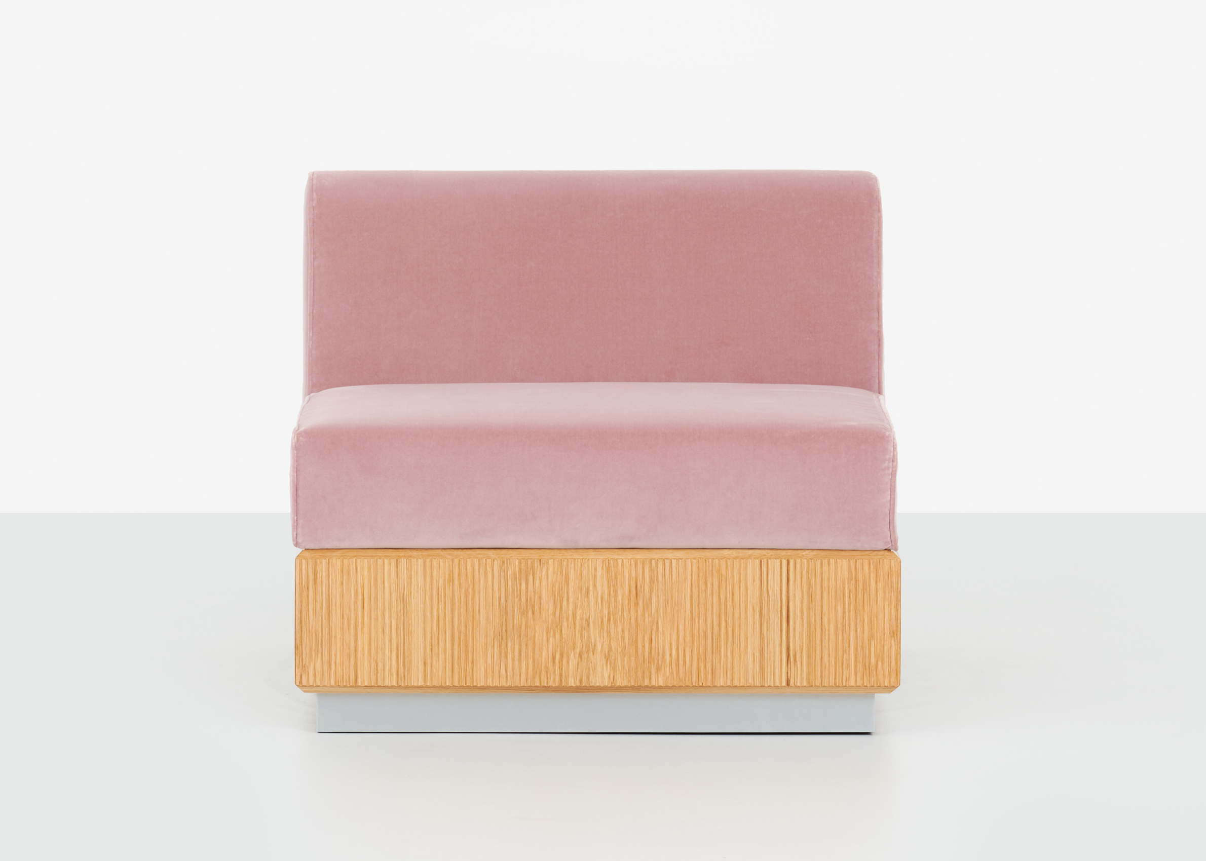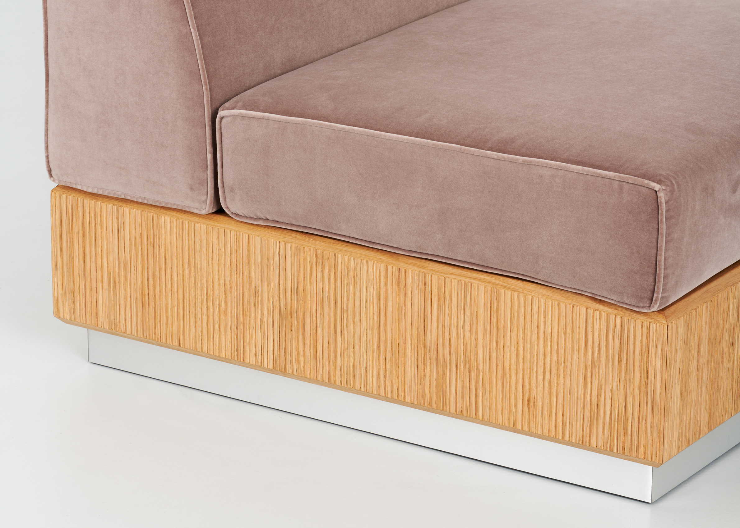 Ribbed Solid Oak base with a Natural or Dark Walnut stain. Upholstered in a range of fabric or leather options