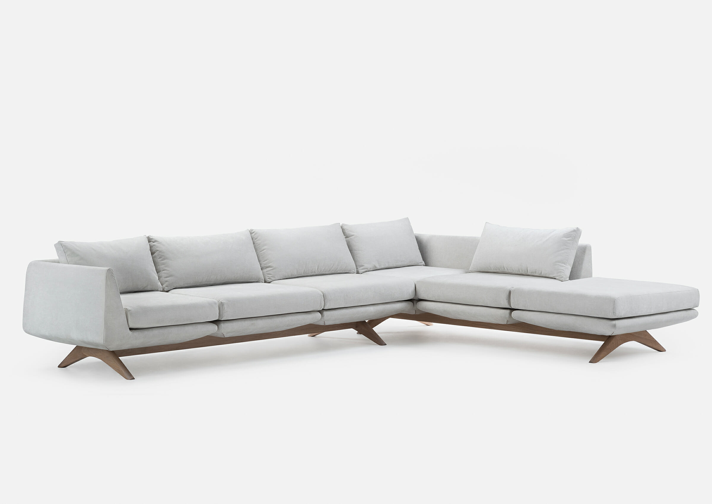 Hepburn is glamorous and light, lifted from the floor on elegant solid wood legs. An almost limitless variety of configurations can be produced making Hepburn suitable for use in domestic or contract applications.