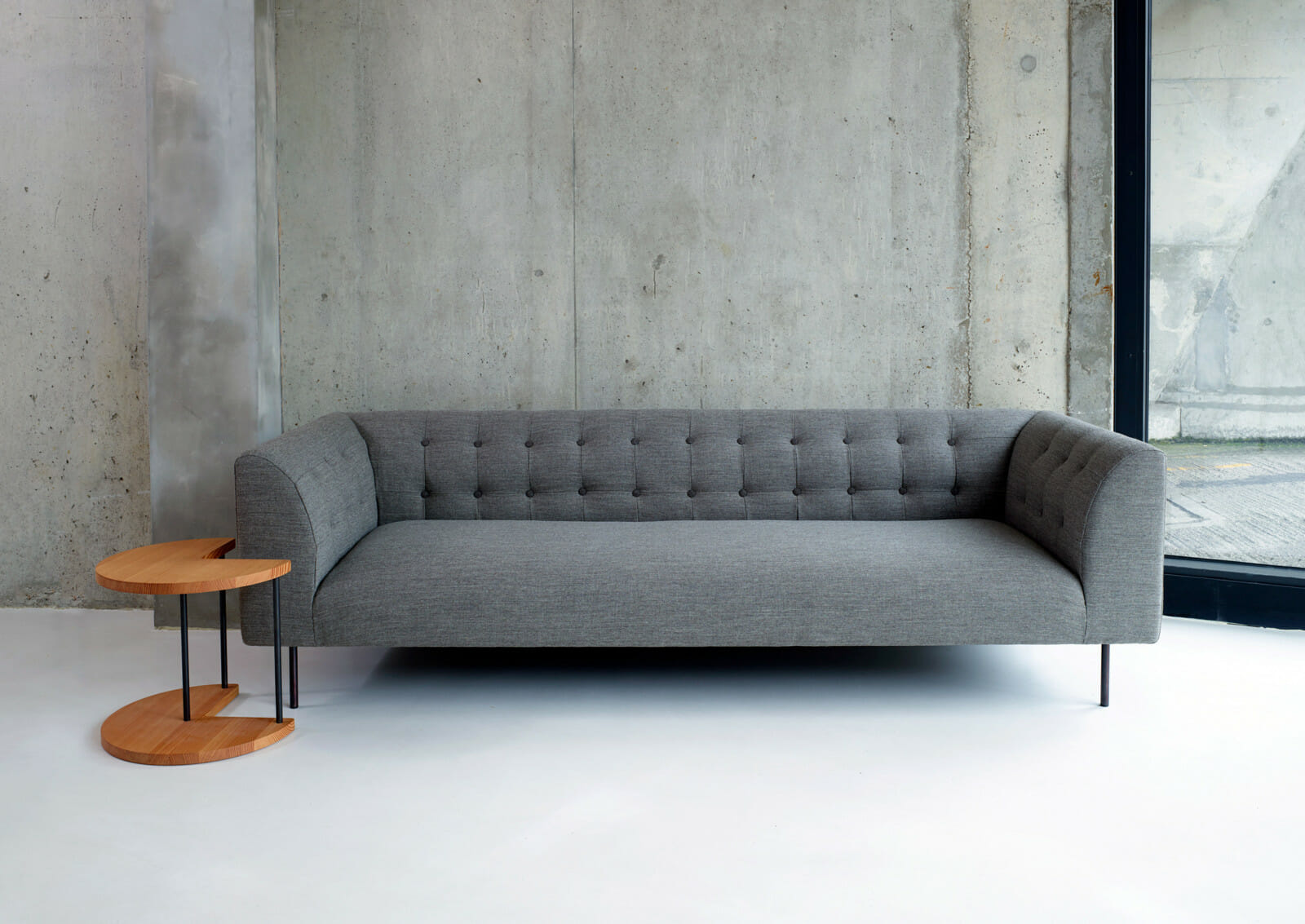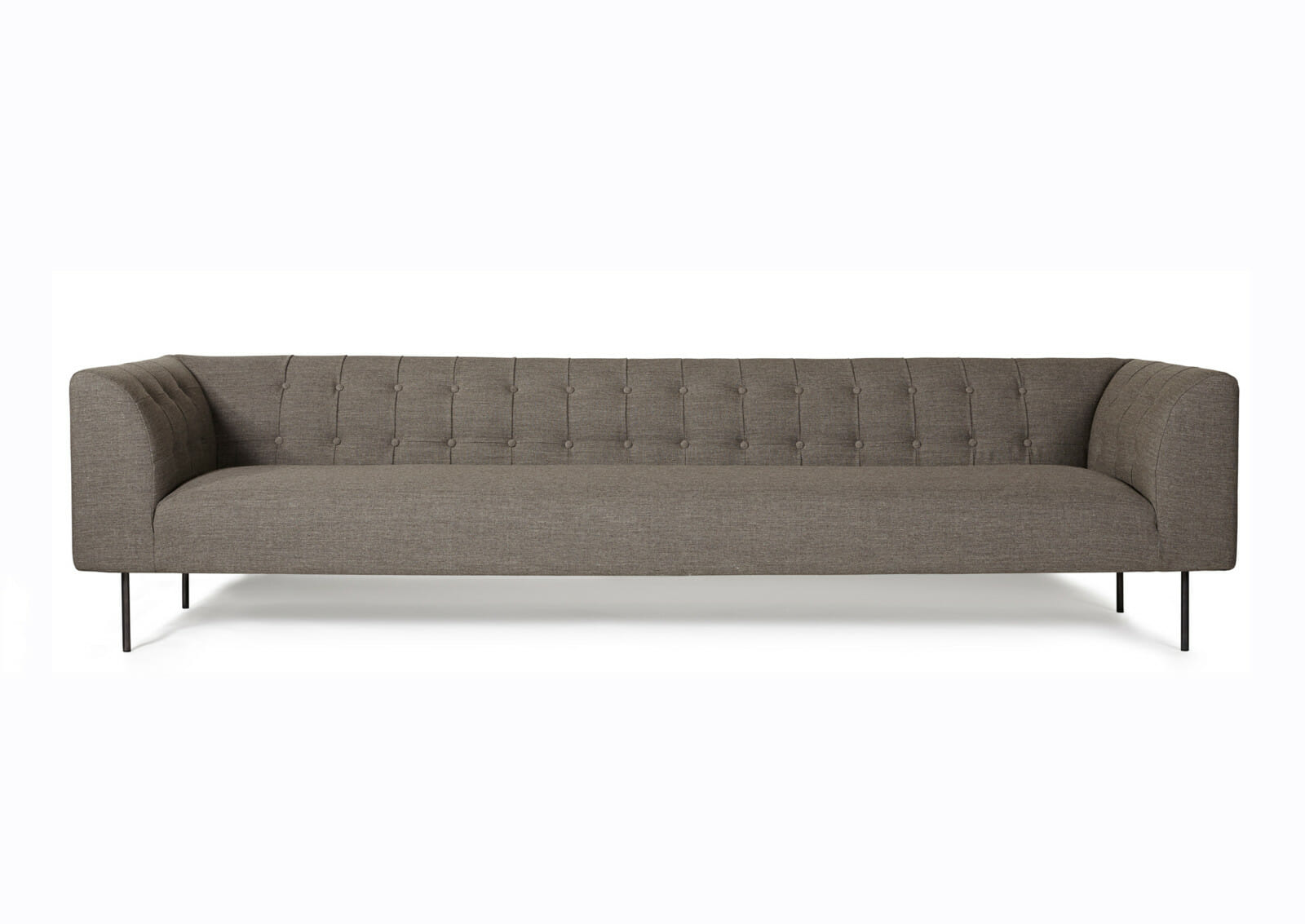 The Lansdowne is a modern interpretation of the classic English Chesterfield. It is a low lying piece that is equally as comfortable in both domestic and contract environments. Lansdowne has a solid beech frame with elasticated webbing covered in multi-density foam and stainless steel legs. This sofa is available in a wide range of graded fabrics of your choosing, or you may provide your own material - please inquire directly for more information.