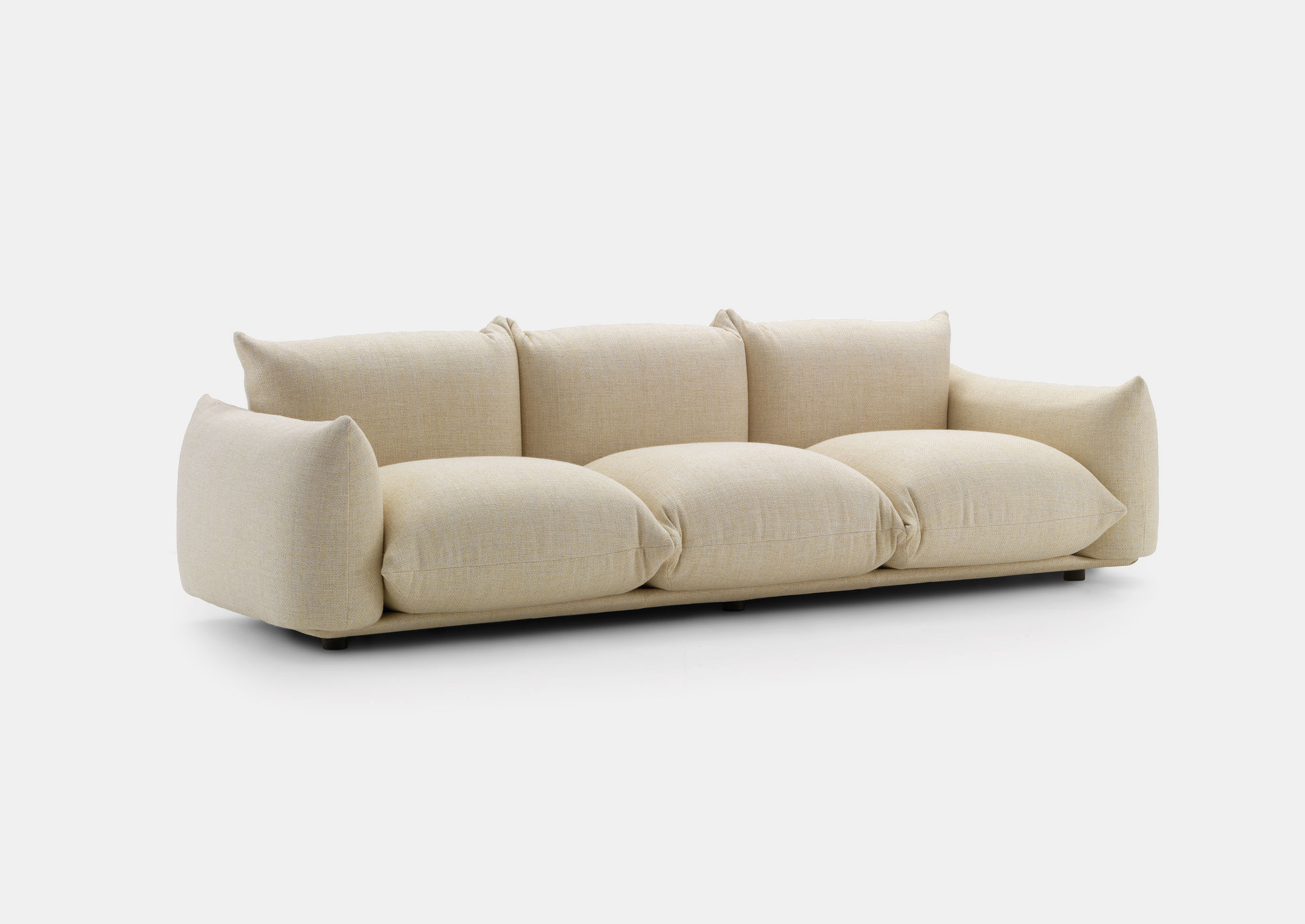 The Marenco Sofa features a revolutionary system to assemble seat and armrest cushions to the base. The cushions are simply put into a metal tubular frame which grants rigidity and resistance to the use of the sofa. The Marenco Sofa is available in additional sizes and configurations, please inquire directly for more information. This sofa is available in a wide range of graded fabrics of your choosing, or you may provide your own material - please inquire directly for more information.