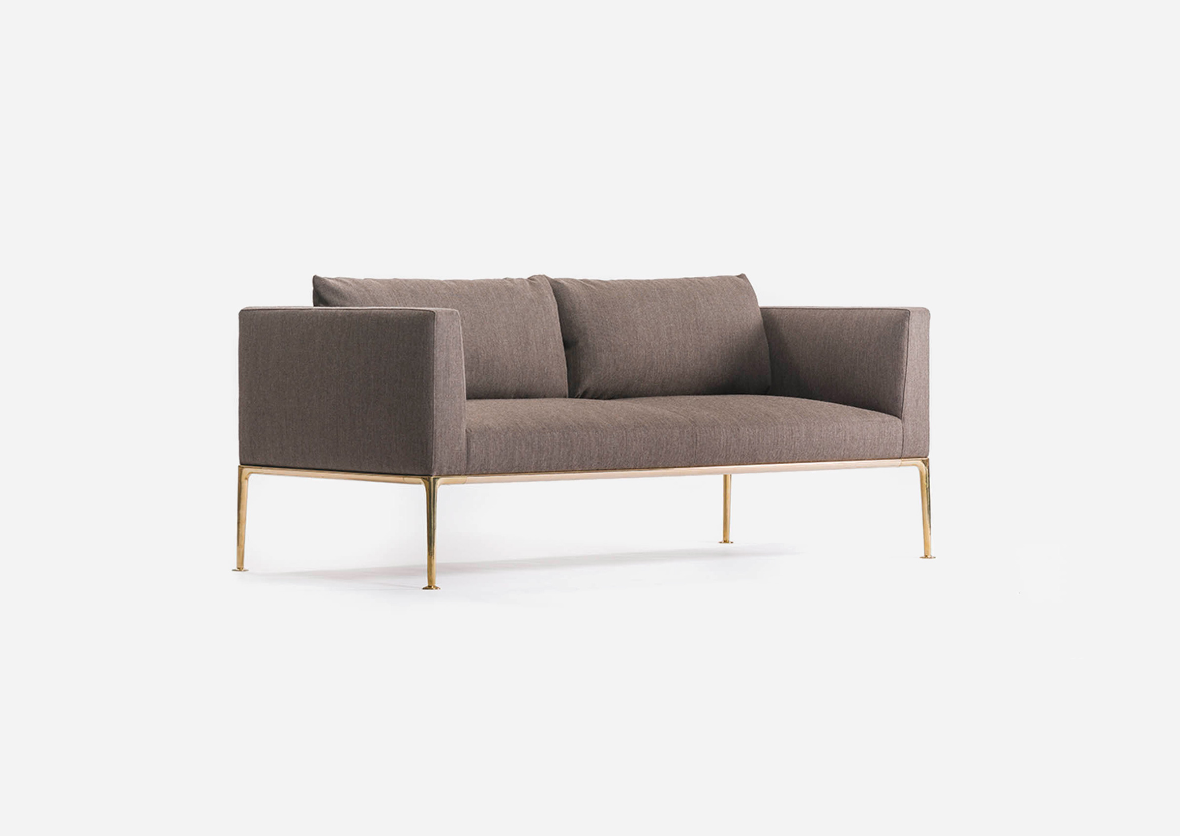 Transit sofa brass was developed with the aim of creating the simplest sofa that are minimalist, compact and comforta- ble to sit. We made the sofas to achieve a simple balance between minimalist design and functionality, rather than pur- suing a unique design. For keeping compact design, we adjusted the thickness of the arms, backrest, and seat. Furthermore, it adopts a pocket coils inside the seat, offering moderates resilience for a thin seat.