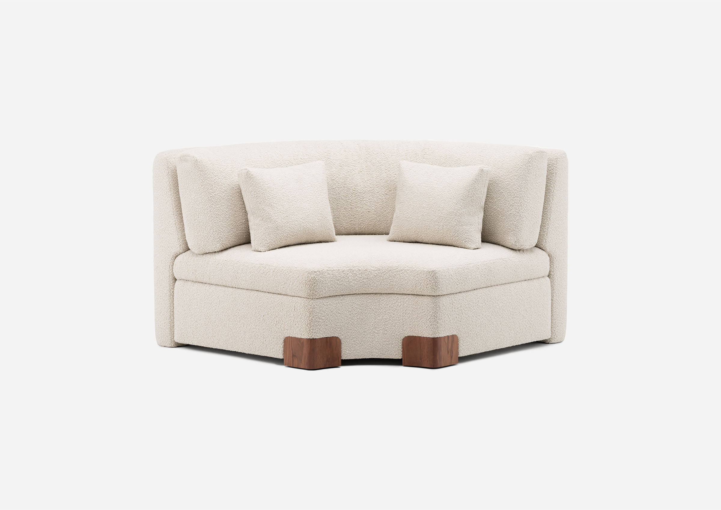 Vega chairs are named after the North Star of the Past and the Futures. Sculptural and totemic in shape, the three-legged chairs designed by Guerrée are crafted in solid timber and feature an upholstered seat. The imposing appearance contrasts with the delicate curve of the crescent moon backrest. In a playful game of opposites, Vega A and Vega B can be differentiated by the orientation of their backrests.
