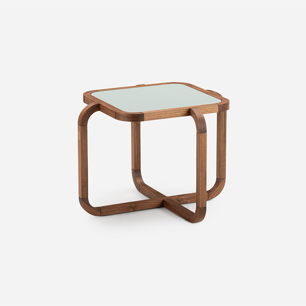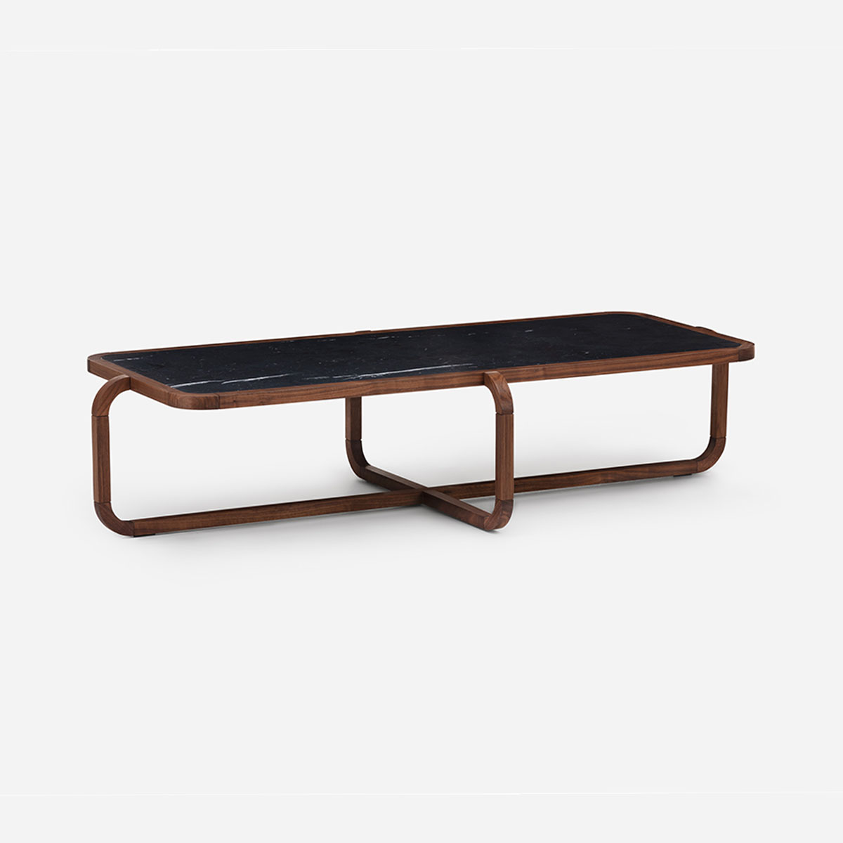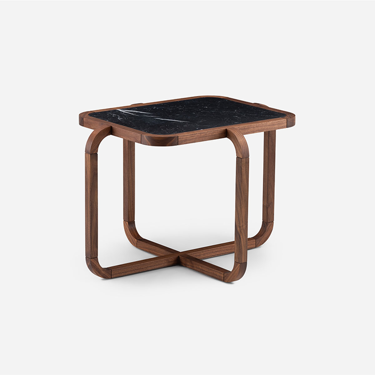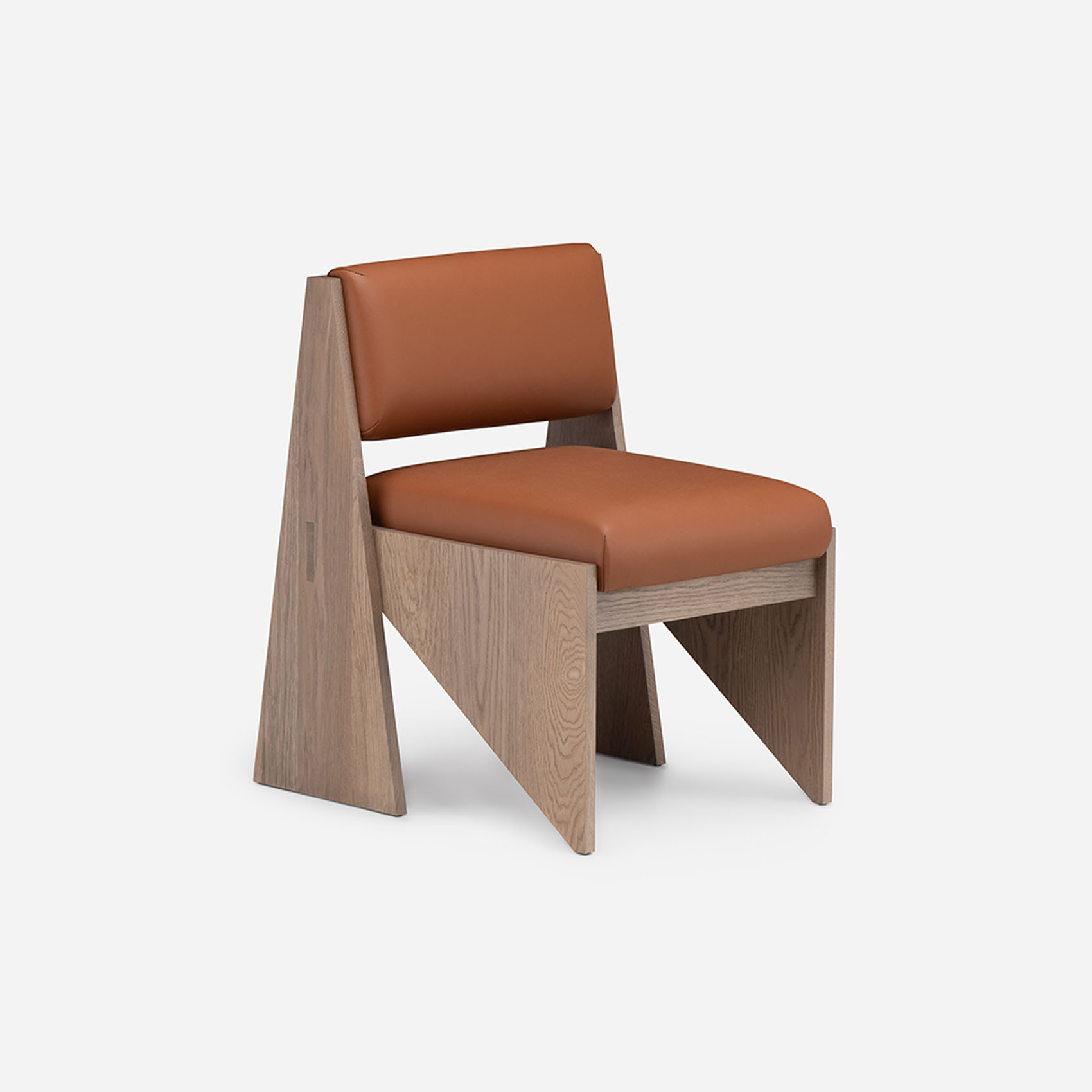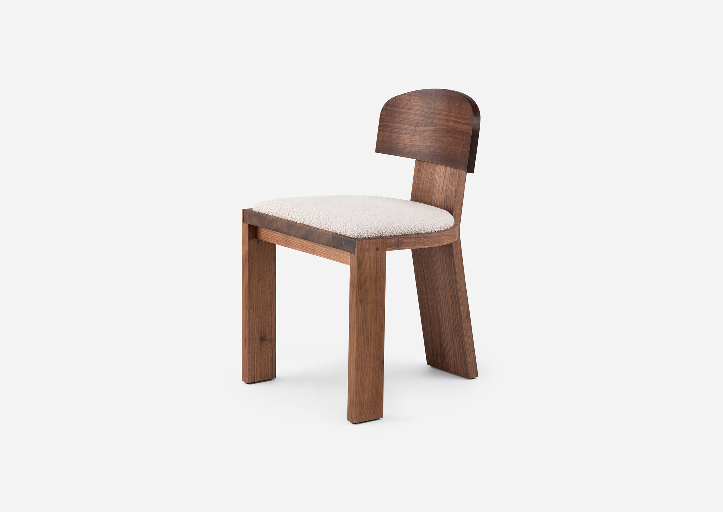Vega chairs are named after the North Star of the Past and the Futures. Sculptural and totemic in shape, the three-legged chairs designed by Guerrée are crafted in solid timber and feature an upholstered seat. The imposing appearance contrasts with the delicate curve of the crescent moon backrest. In a playful game of opposites, Vega A and Vega B can be differentiated by the orientation of their backrests.