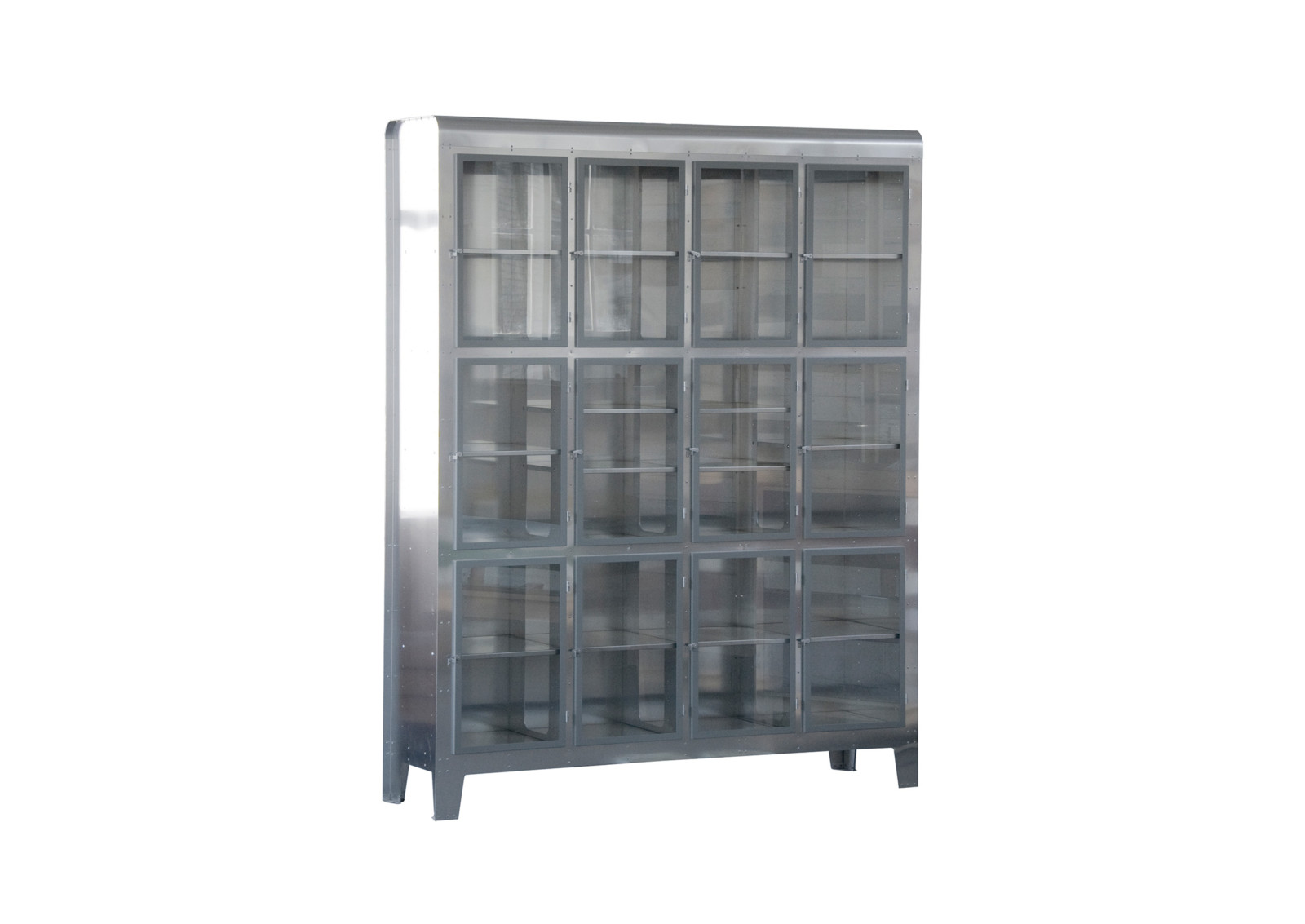 The Philips Cabinet was created when Piet Hein Eek found a number of metal-framed doors in a junk pile in Eindhoven, the material having been discarded by the Philips electronics company when it moved its headquarters to Amsterdam. The cabinets became very popular, and the Eek studio eventually began producing a line based on the original pieces, including the handmade hinges and latches. The Philips Cabinet is available in 1, 2, 3, 4 and 5 columns.