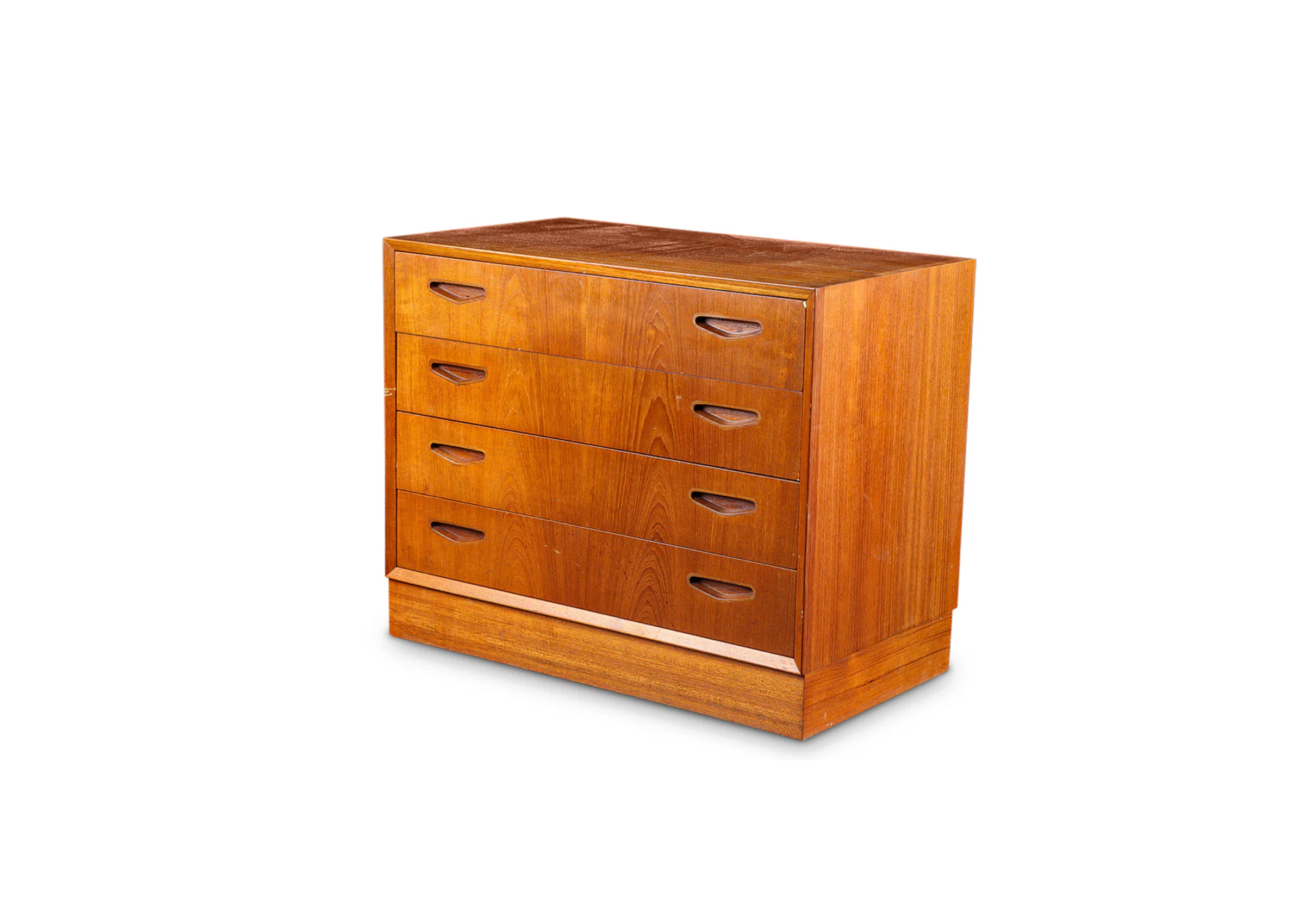 This Danish Modern Teak Gentlemans Chest By Ølholm in teak is distinguished by its materials and period detailing. Designed for everyday use, it offers practical storage or surface space with a refined, collected presence.
