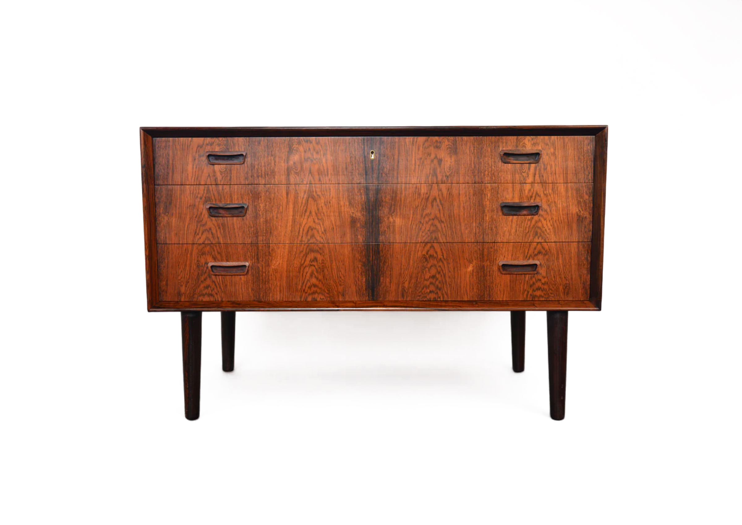 This Johannes Sorth Three Drawer Rosewood Gentleman's Chest is distinguished by its materials and period detailing. Designed for everyday use, it offers practical storage or surface space with a refined, collected presence.
