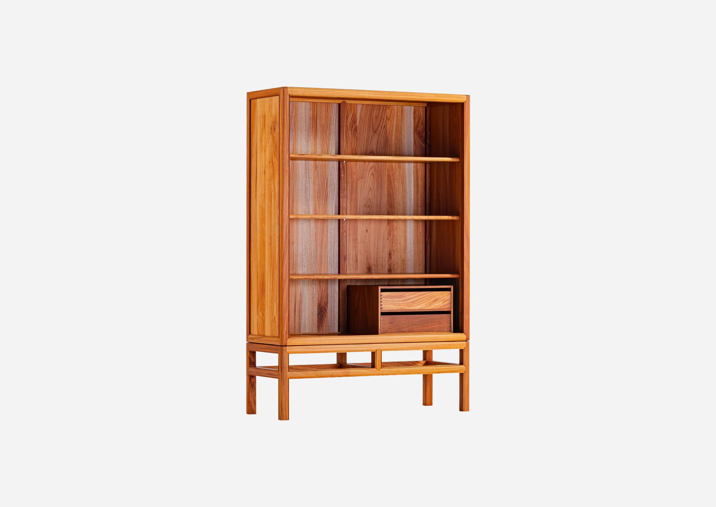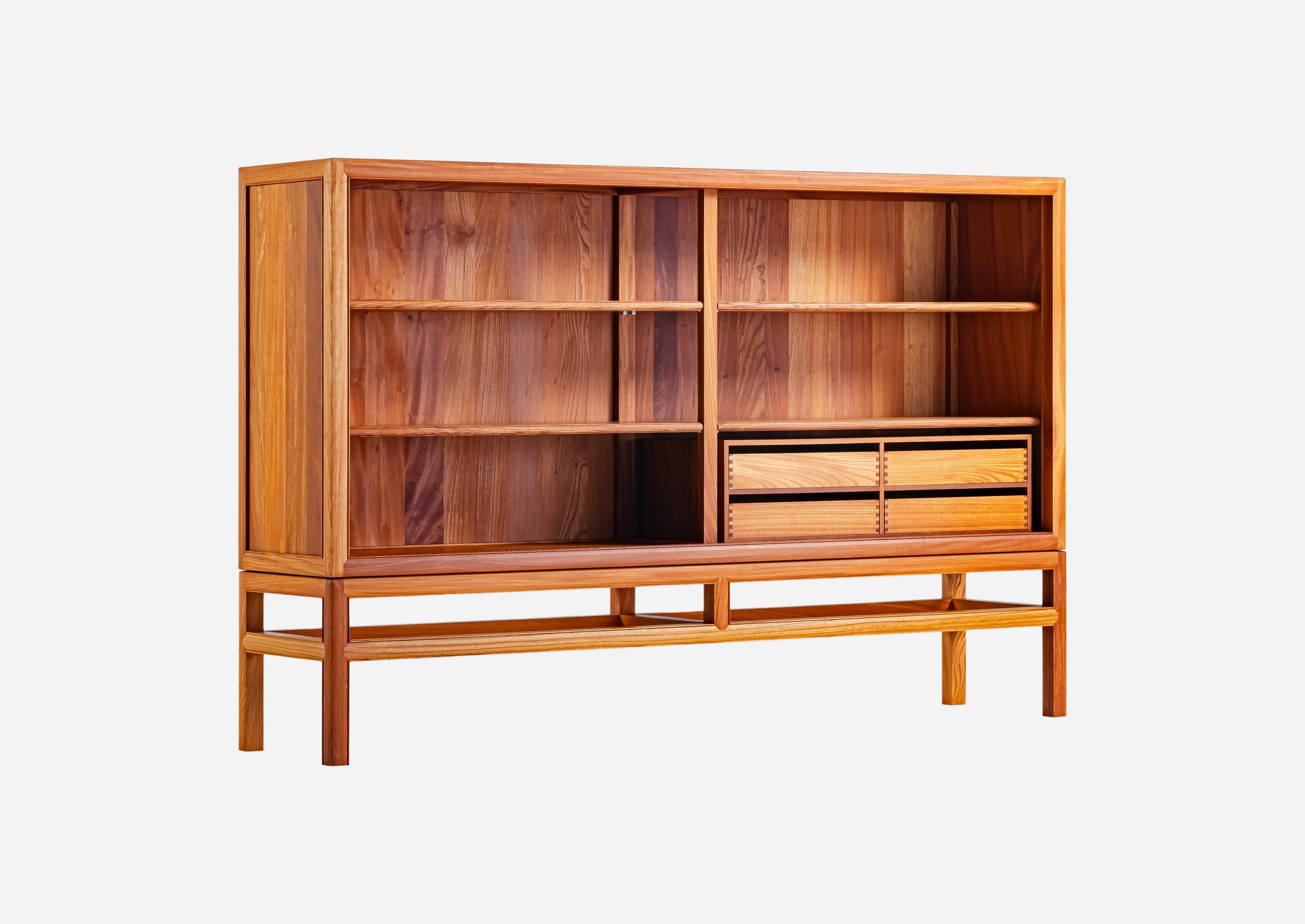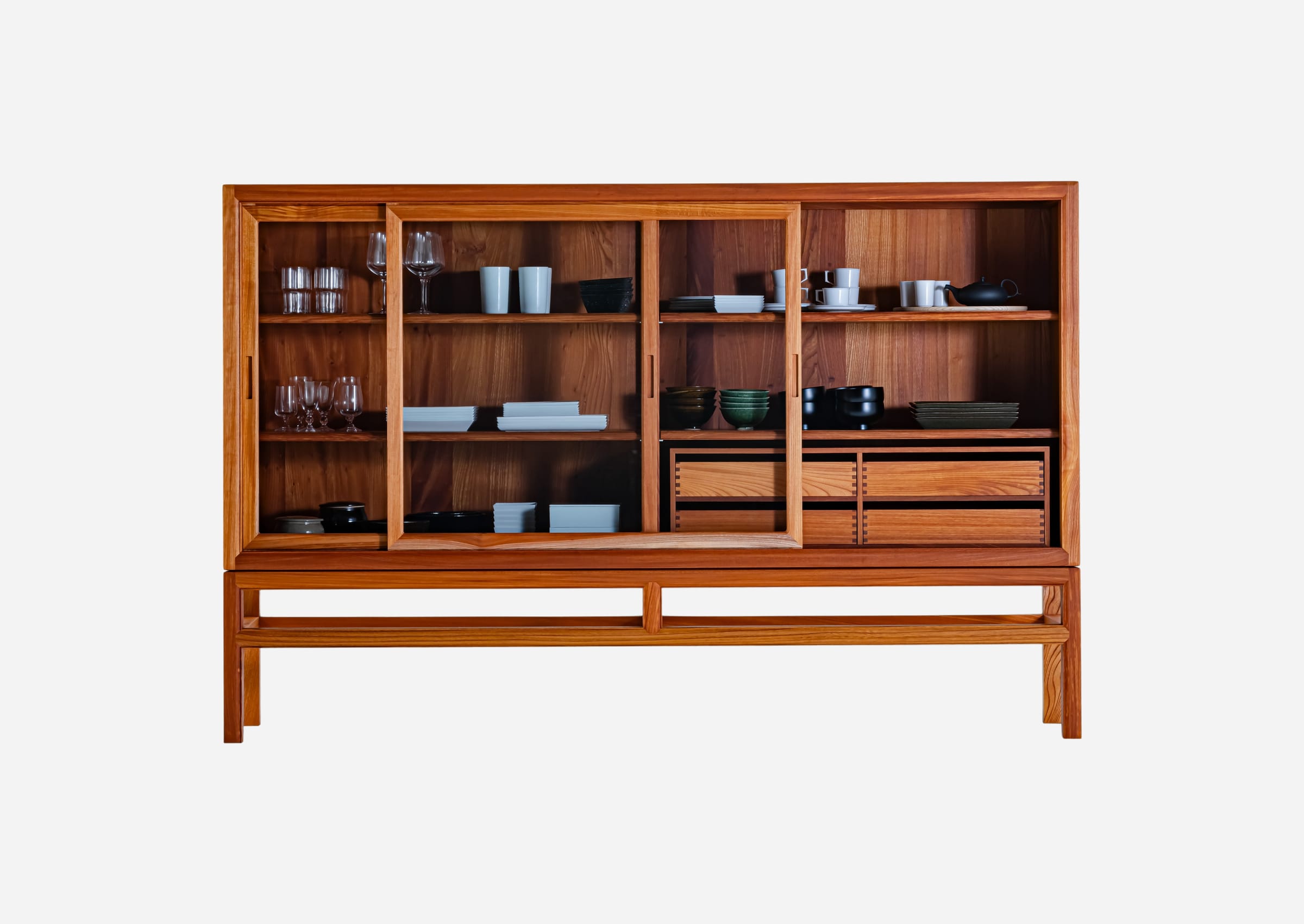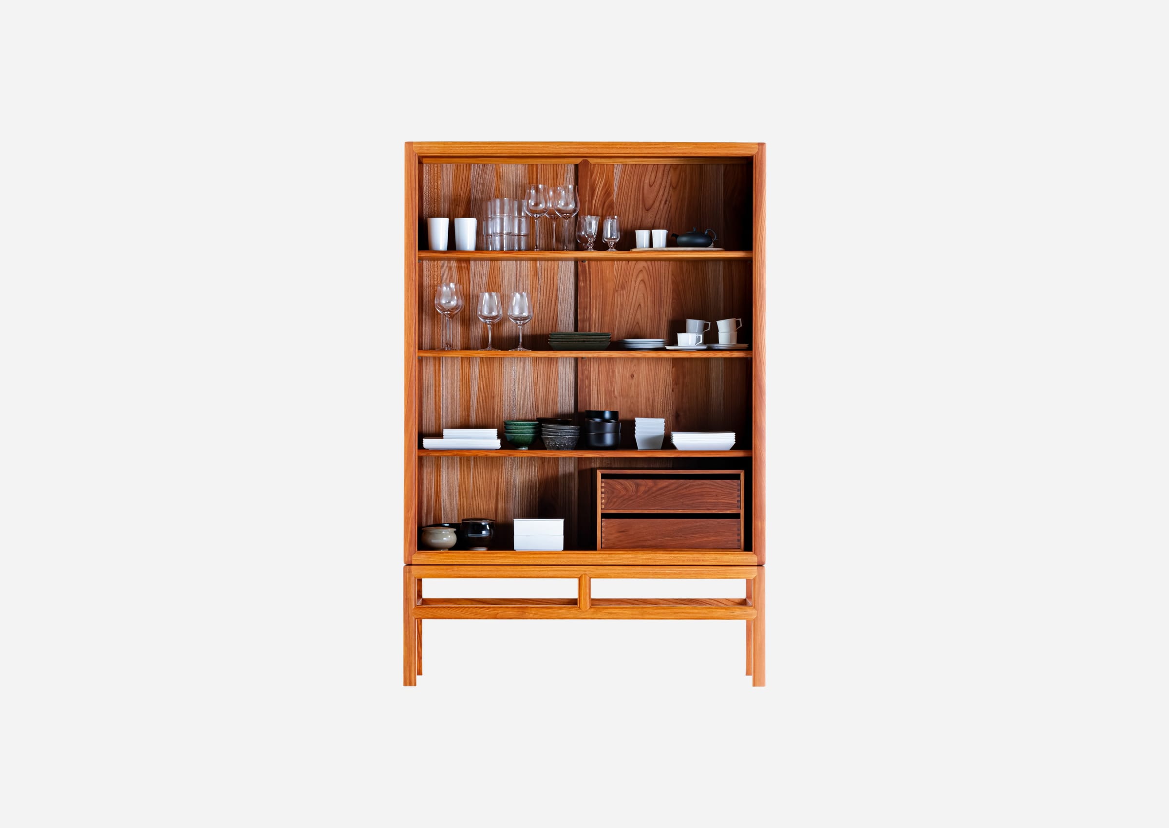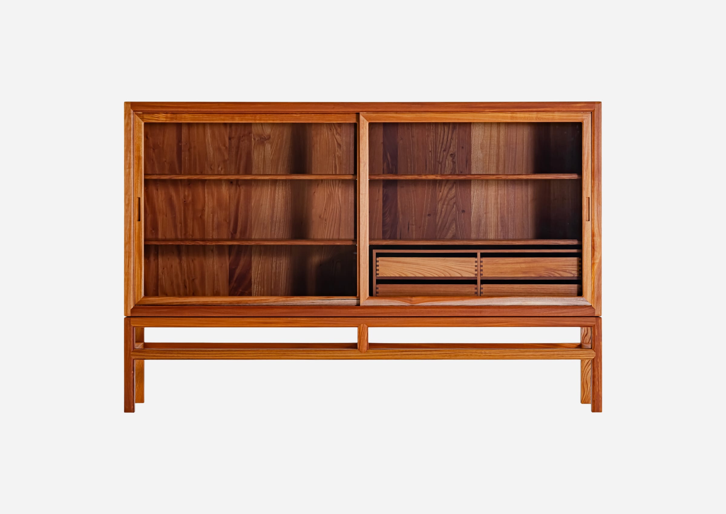 Zelkova has been used in Japanese architecture and furniture for centuries. However, working with this wood is challenging due to its tendency to warp and resistance to processing. The cabinet is assembled with intricate joinery techniques by highly skilled artisans who masterfully handle this challenging material.